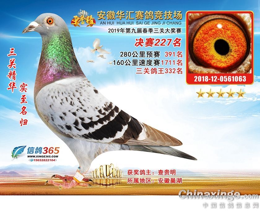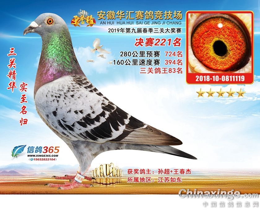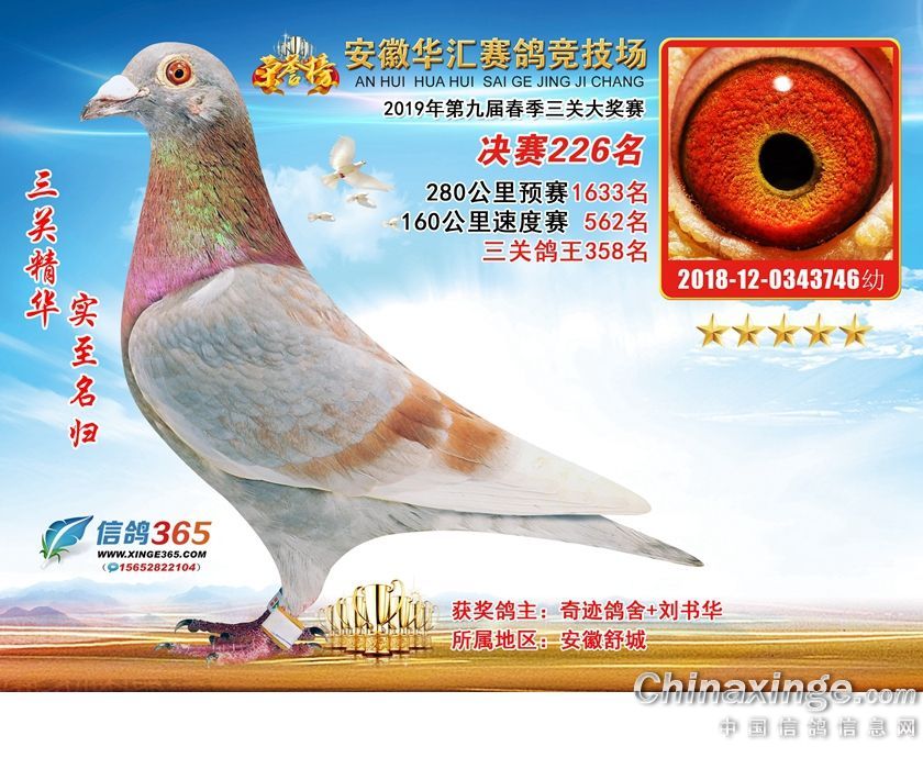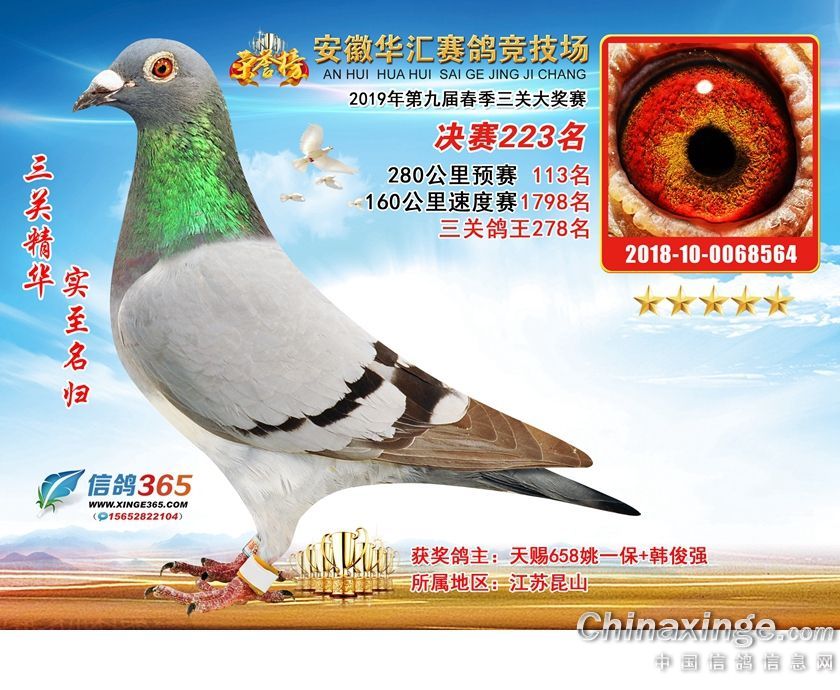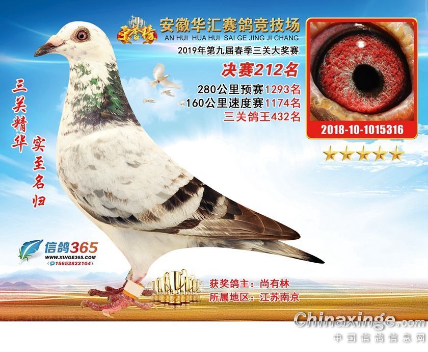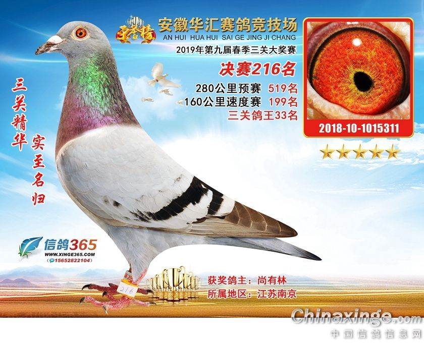 作品说明: 2019年安徽华汇赛鸽竞技场获奖鸽211-240名