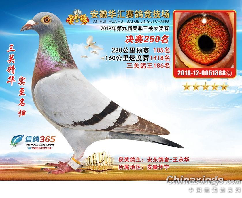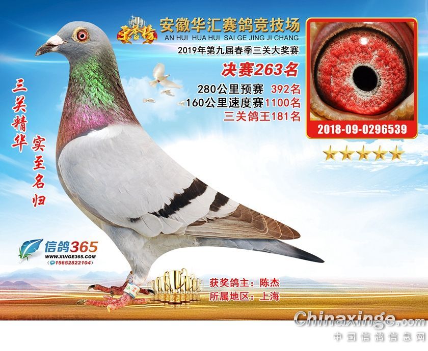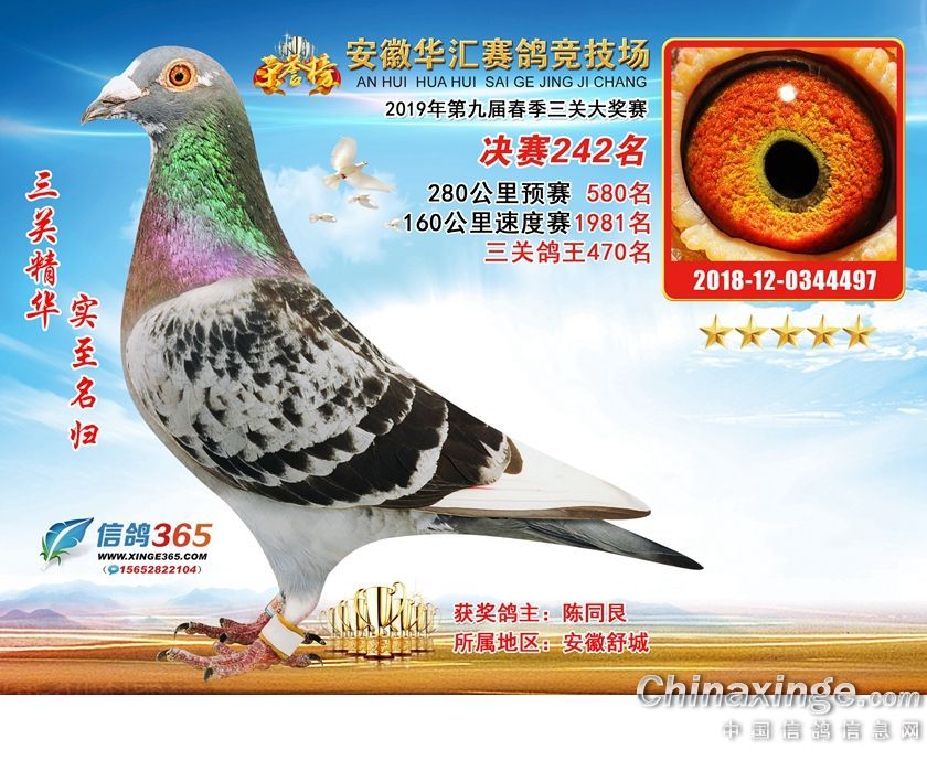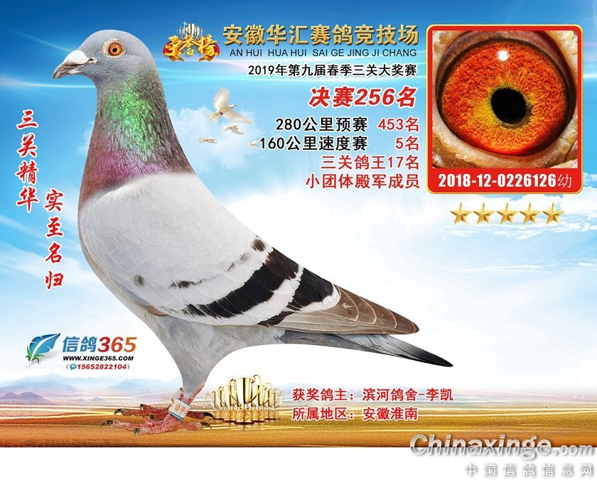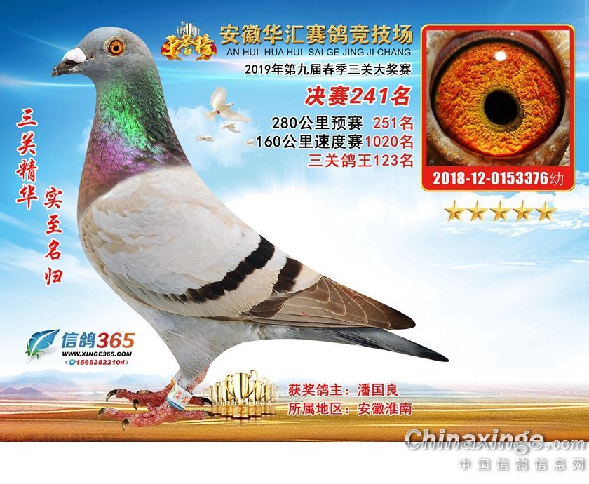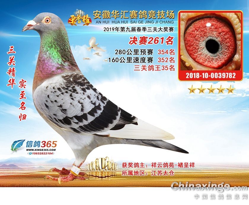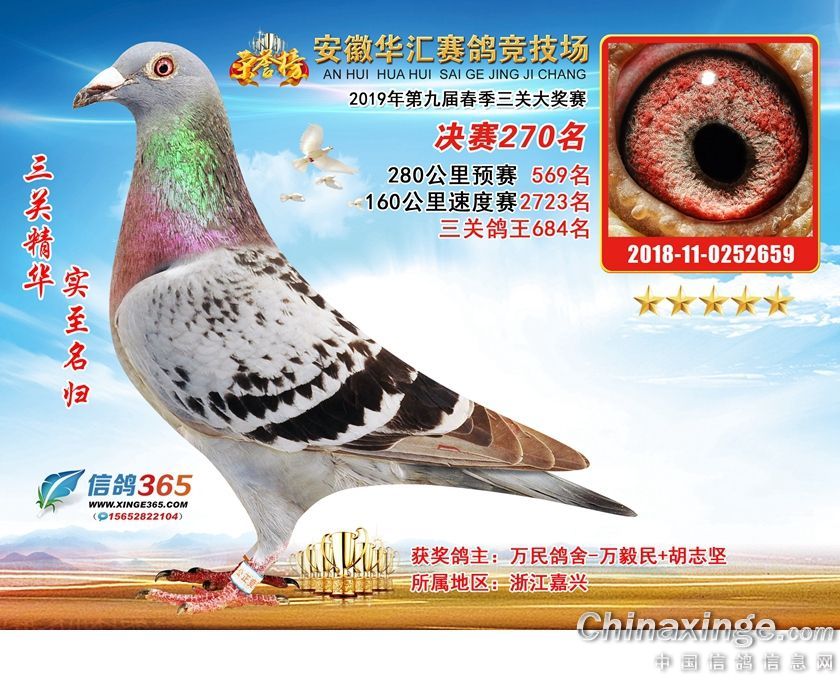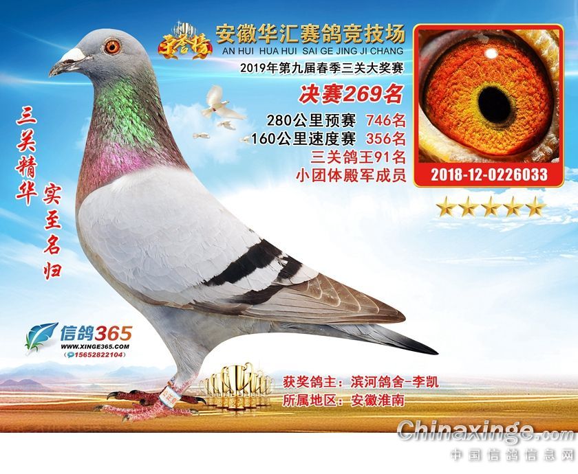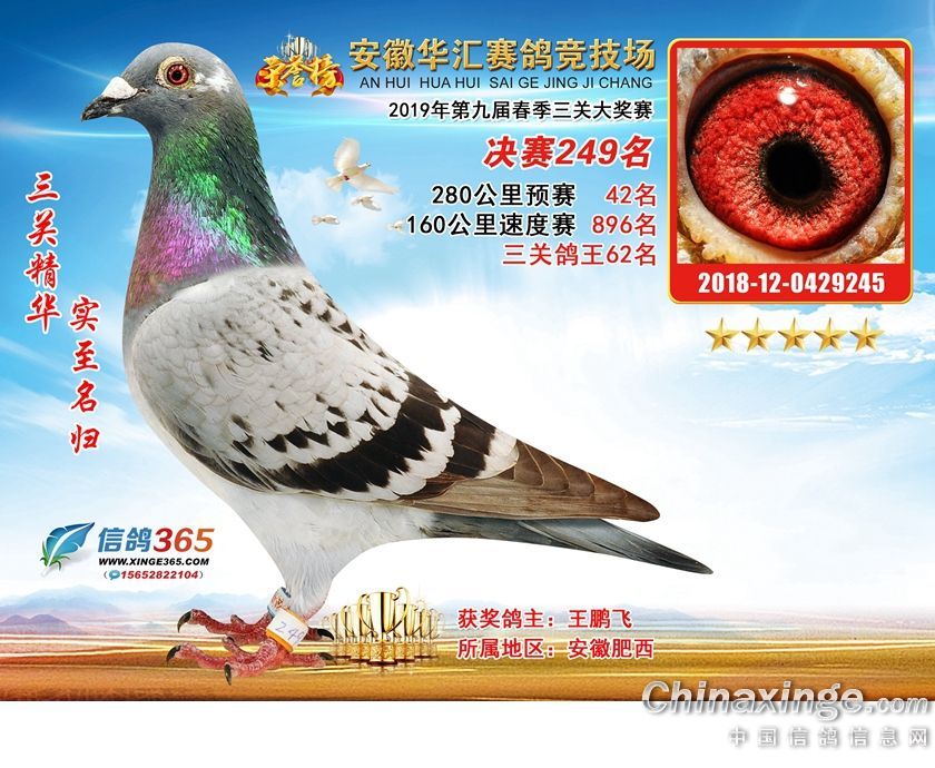 作品说明: 2019年安徽华汇赛鸽竞技场获奖鸽241-270名