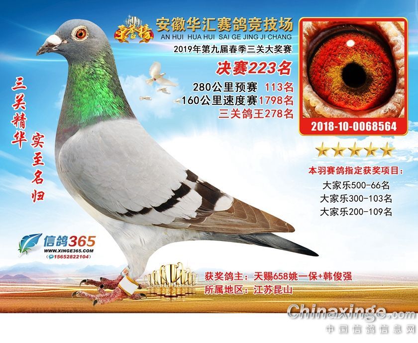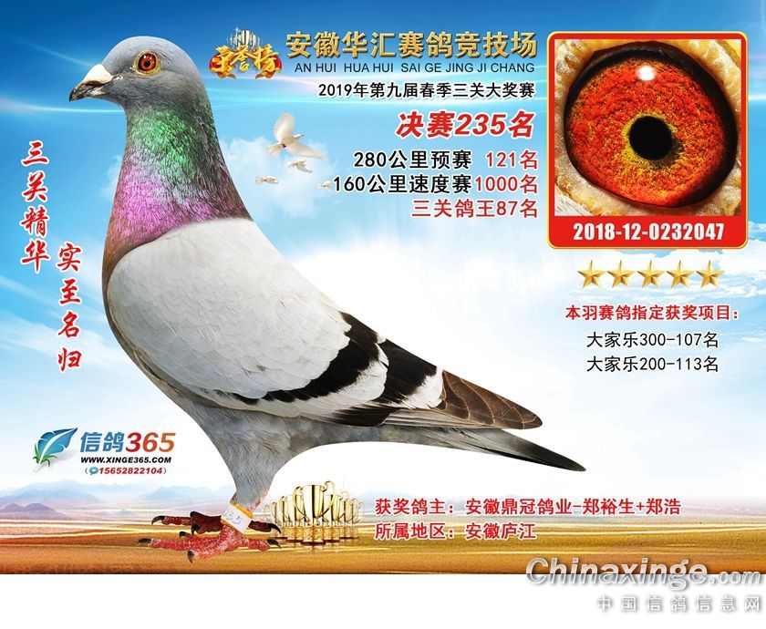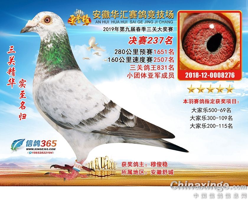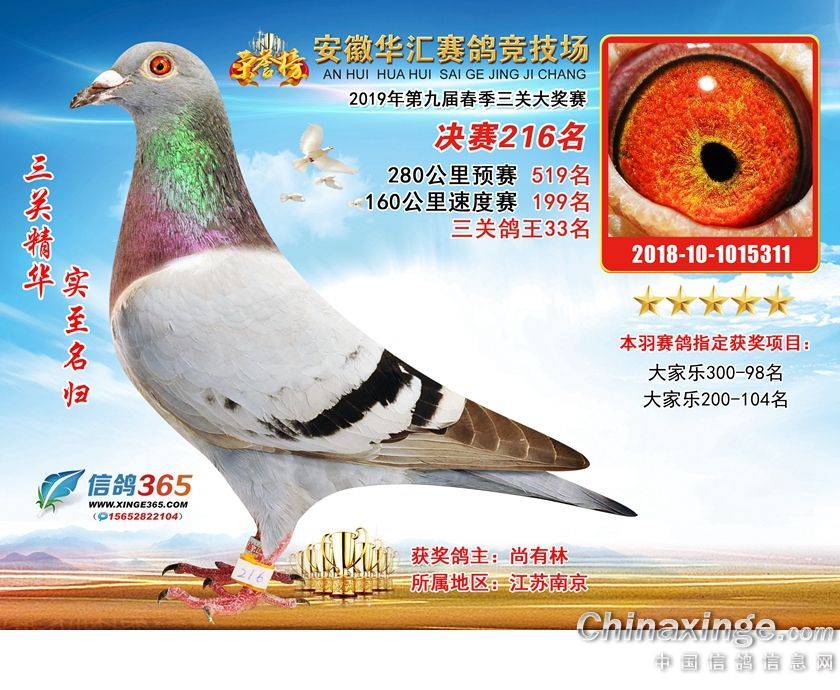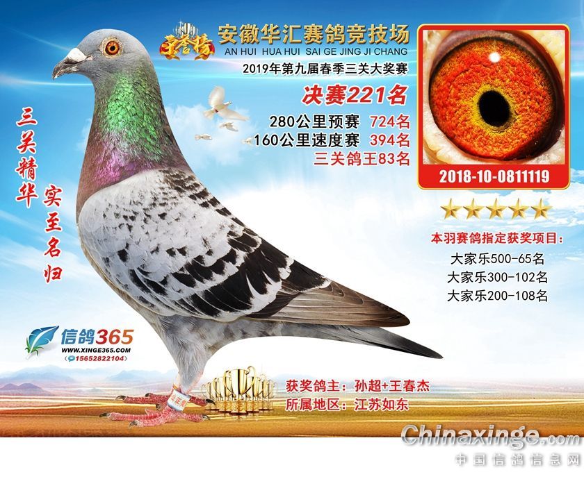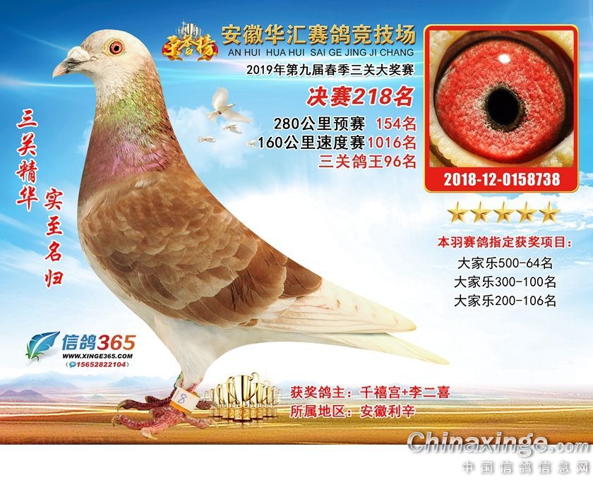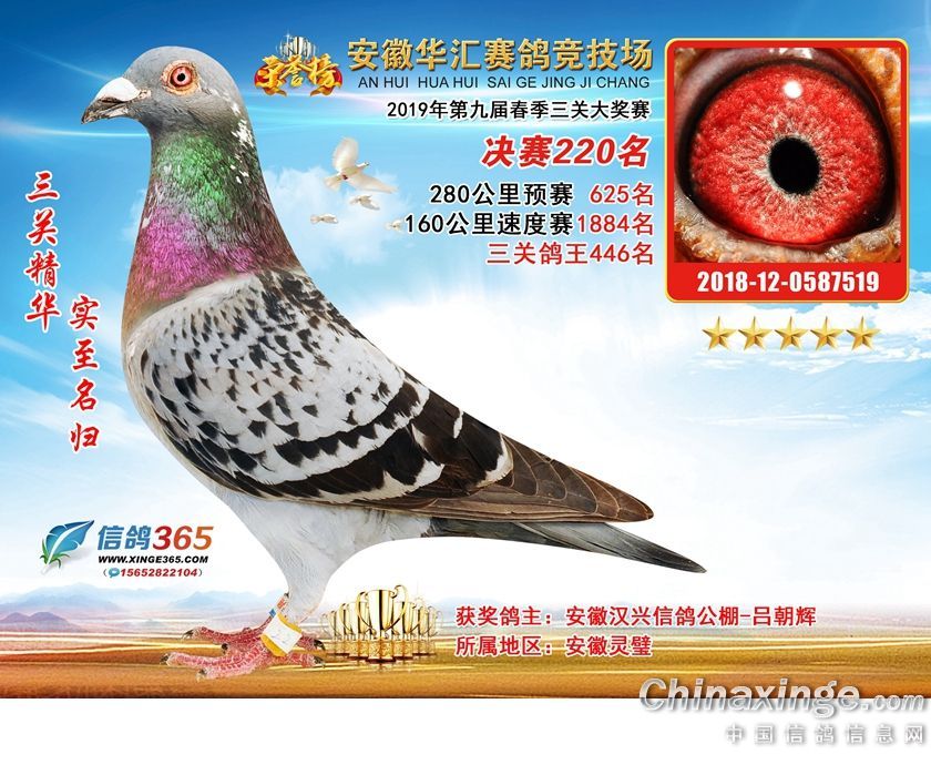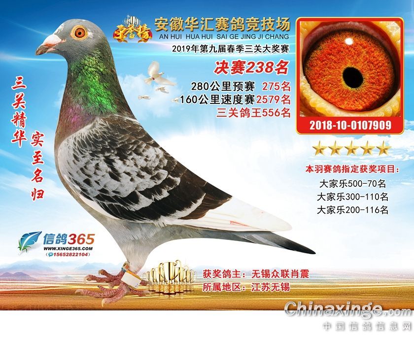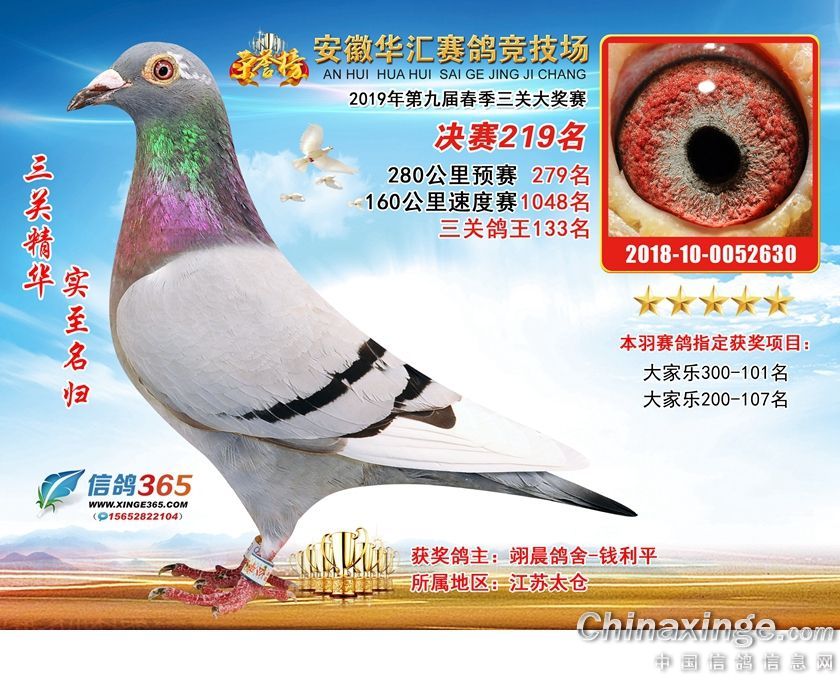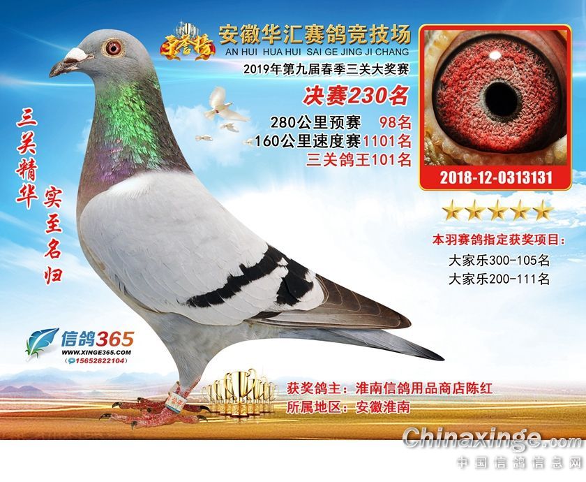 作品说明: 2019年安徽华汇赛鸽竞技场获奖鸽211-240名