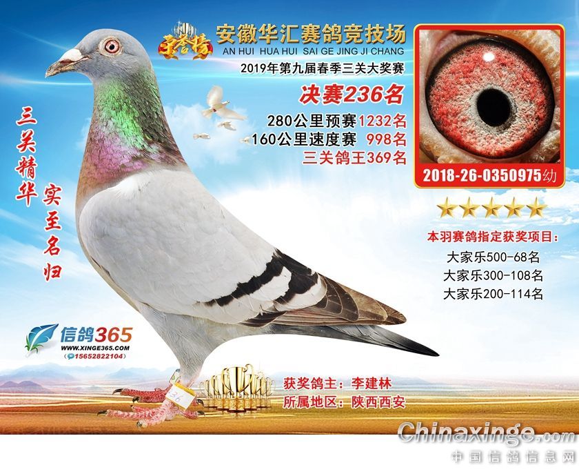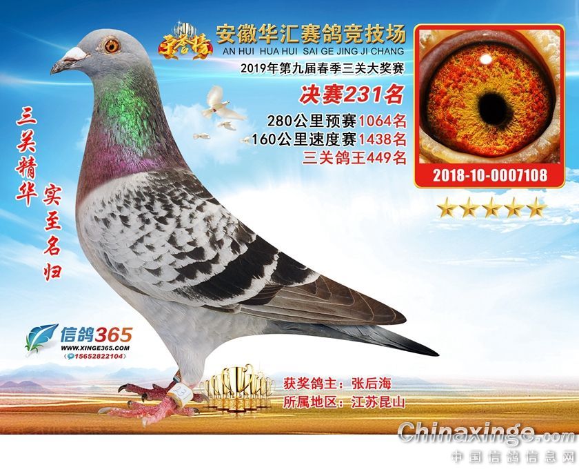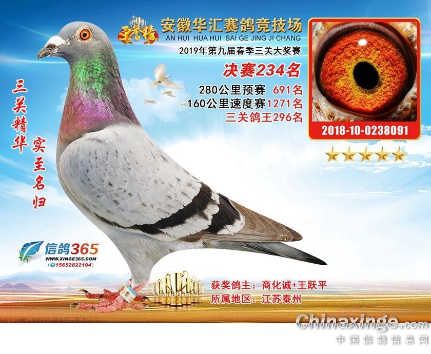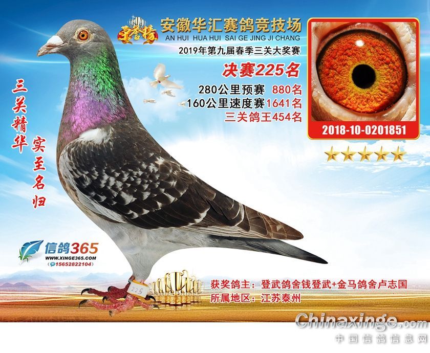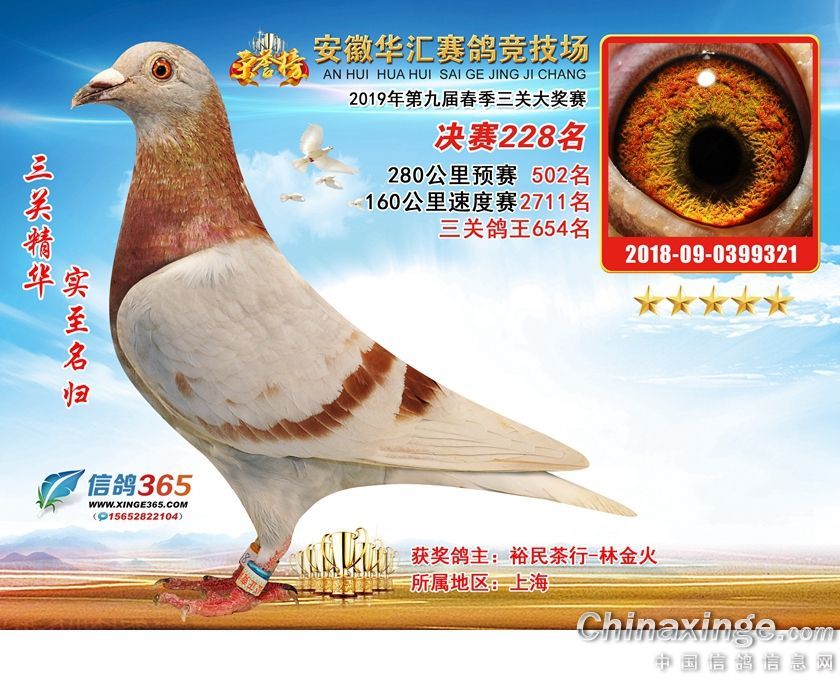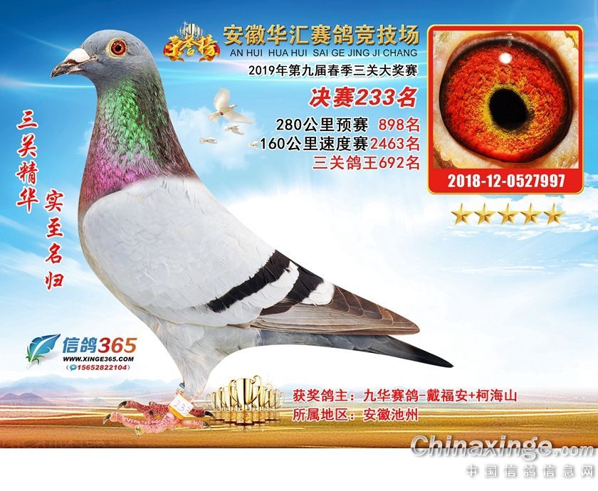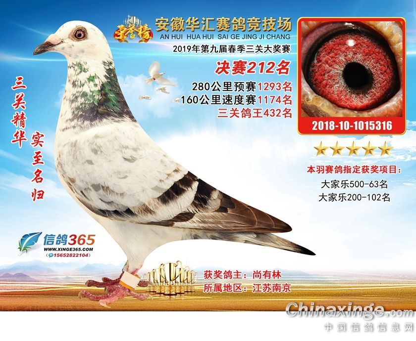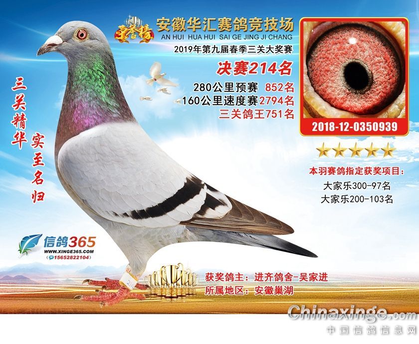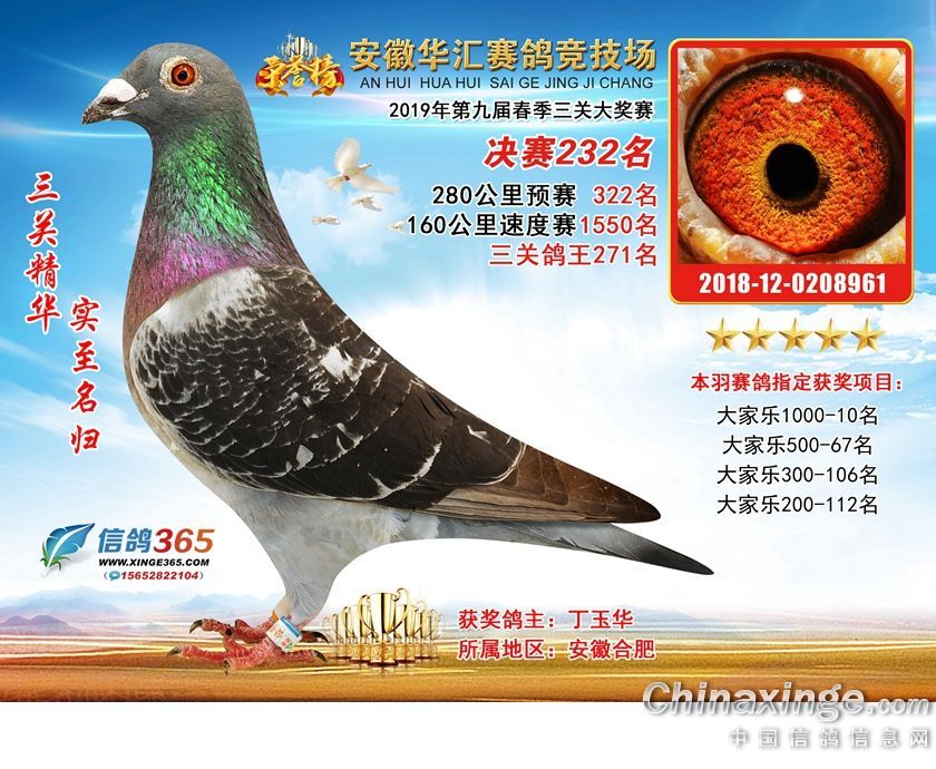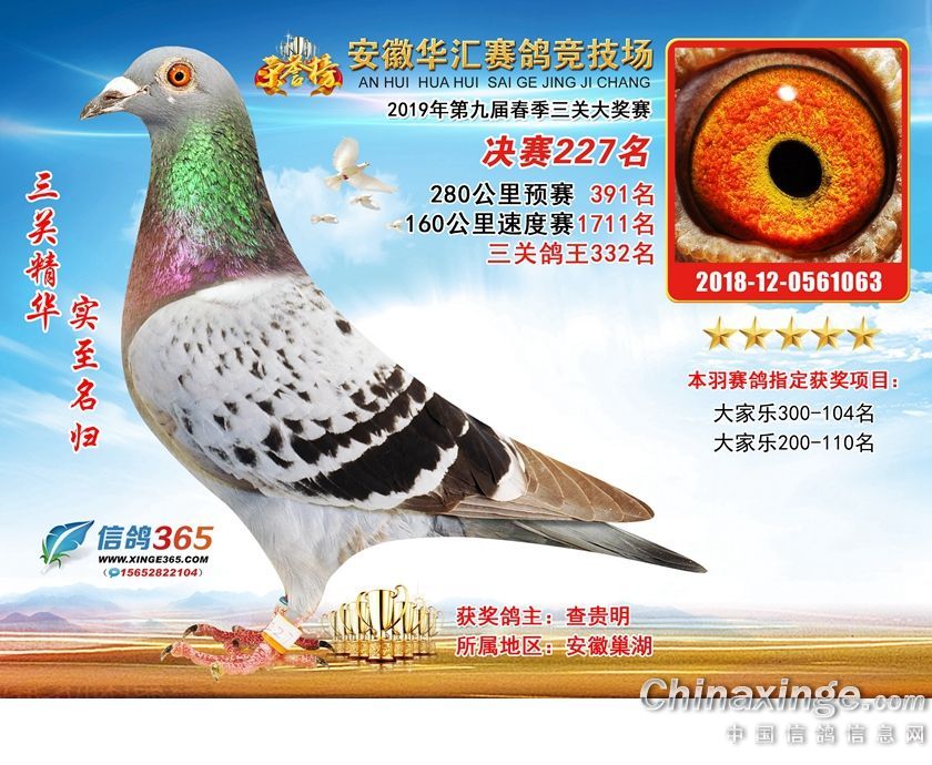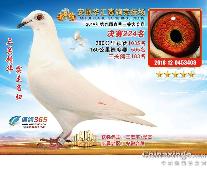 作品说明: 2019年安徽华汇赛鸽竞技场获奖鸽211-240名