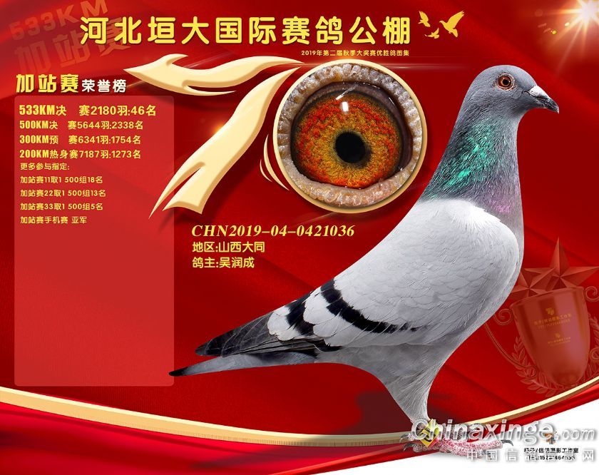 2019年河北垣大国际赛鸽公棚加站赛获奖鸽31-60名