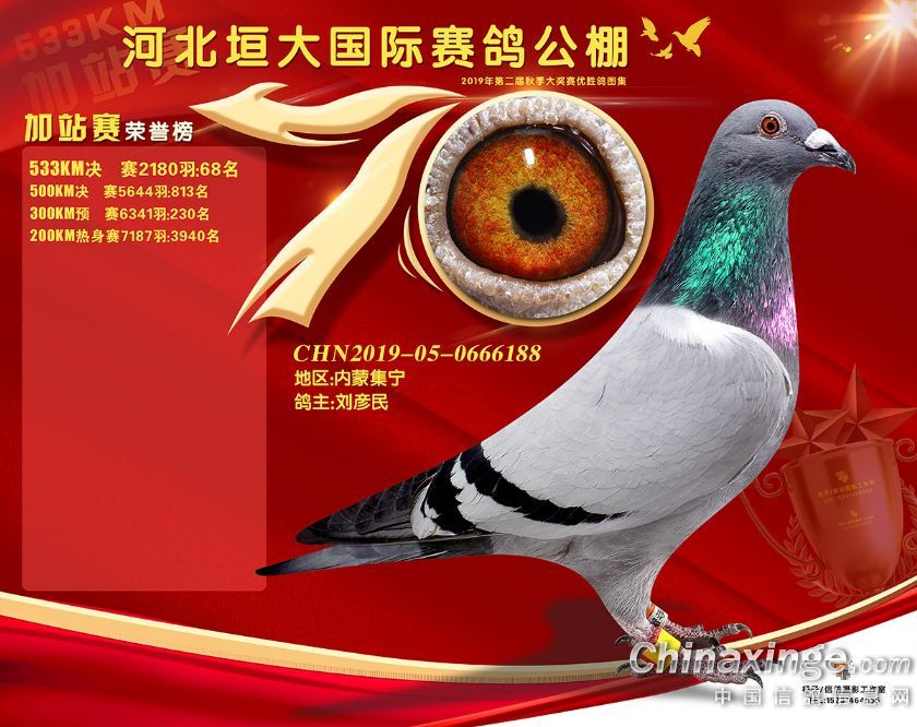 2019年河北垣大国际赛鸽公棚加站赛获奖鸽61-90名
