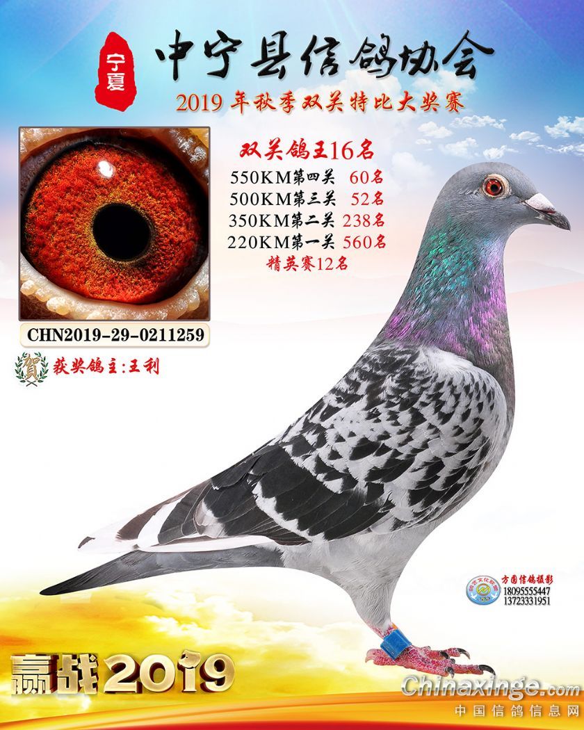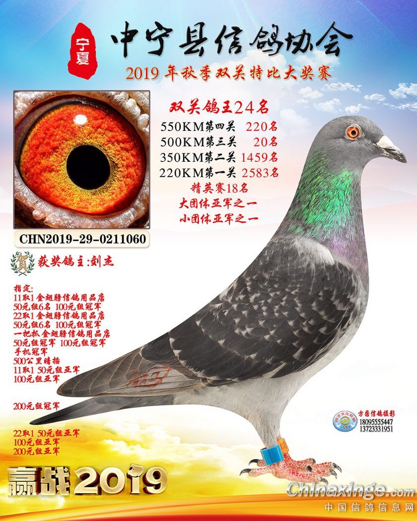 作品说明: 2019年宁夏中宁信鸽协会秋季比赛获奖鸽照片1-60