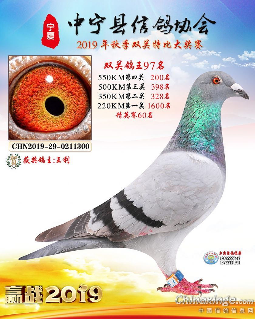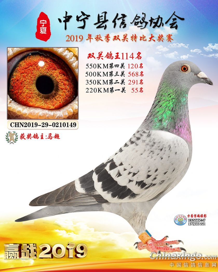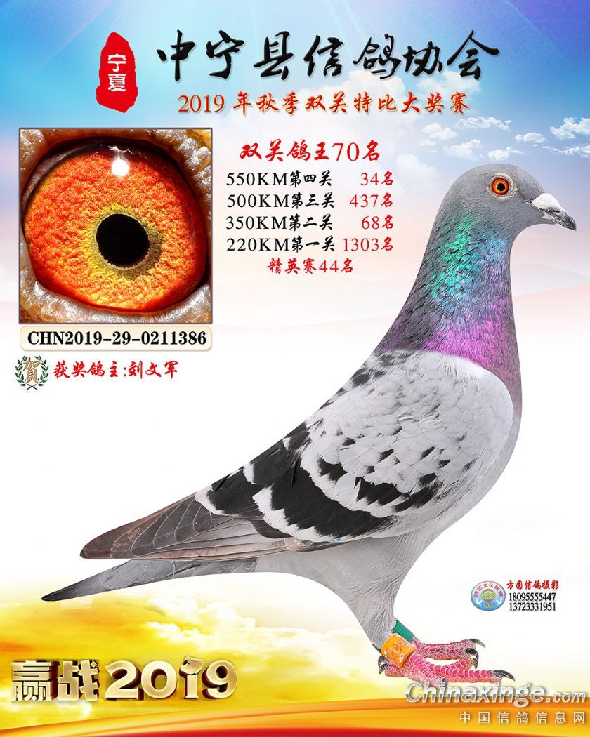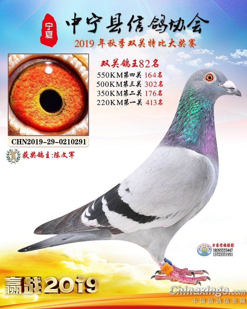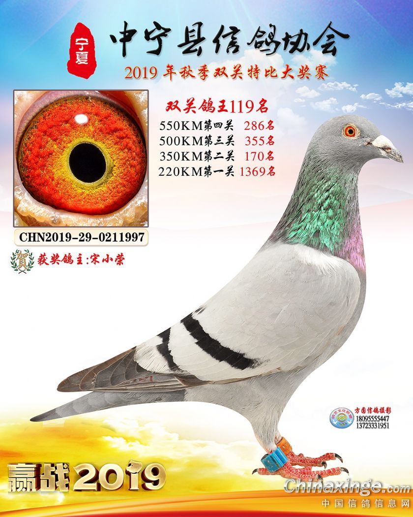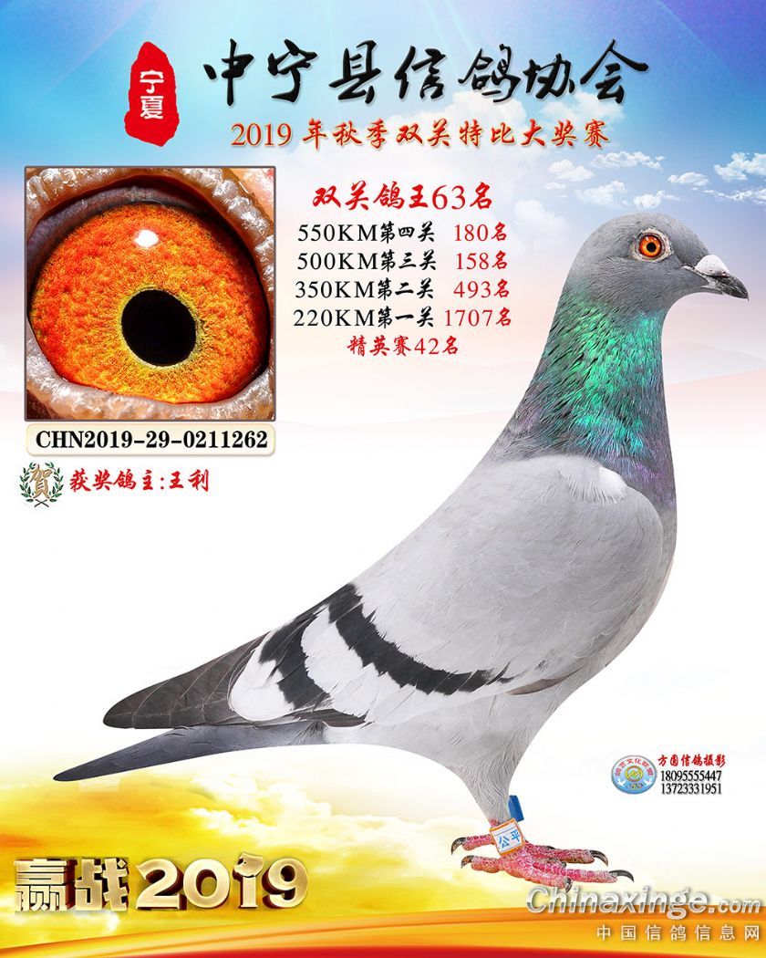 作品说明: 2019年宁夏中宁信鸽协会秋季比赛获奖鸽照片60-120