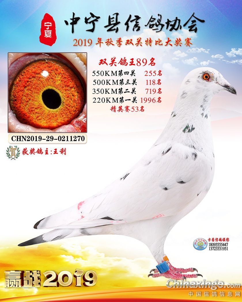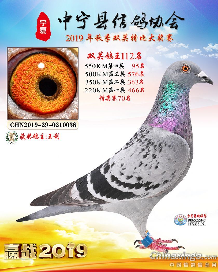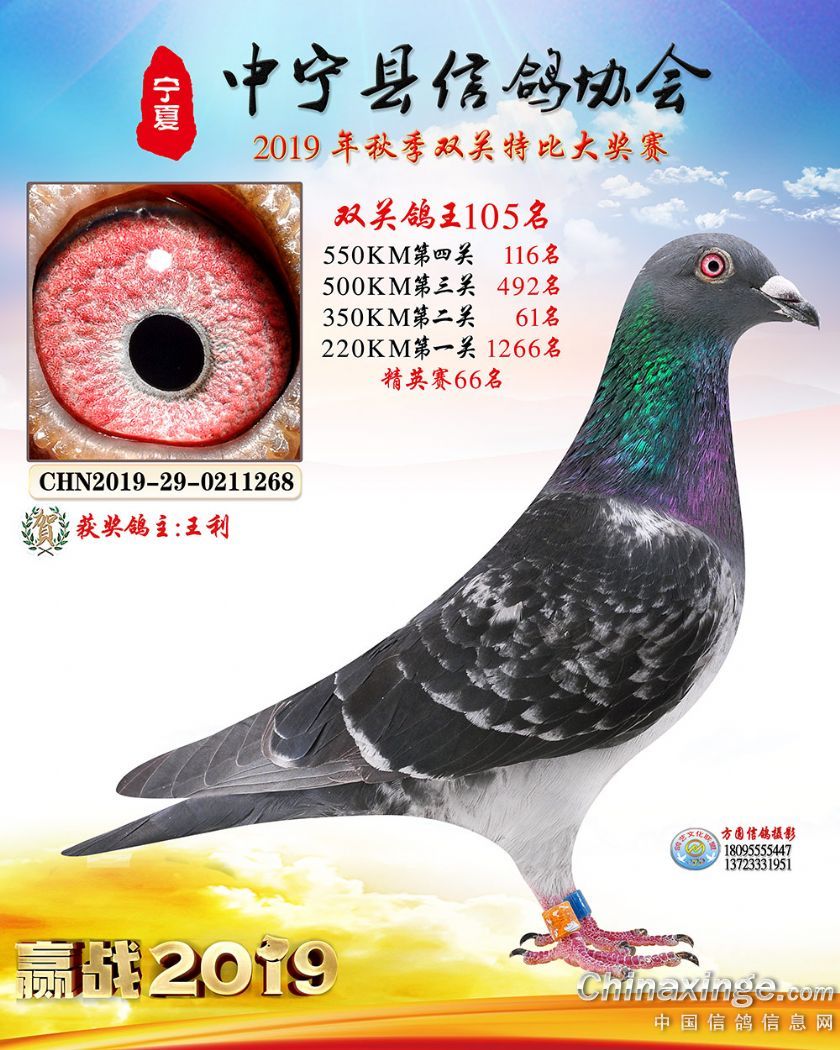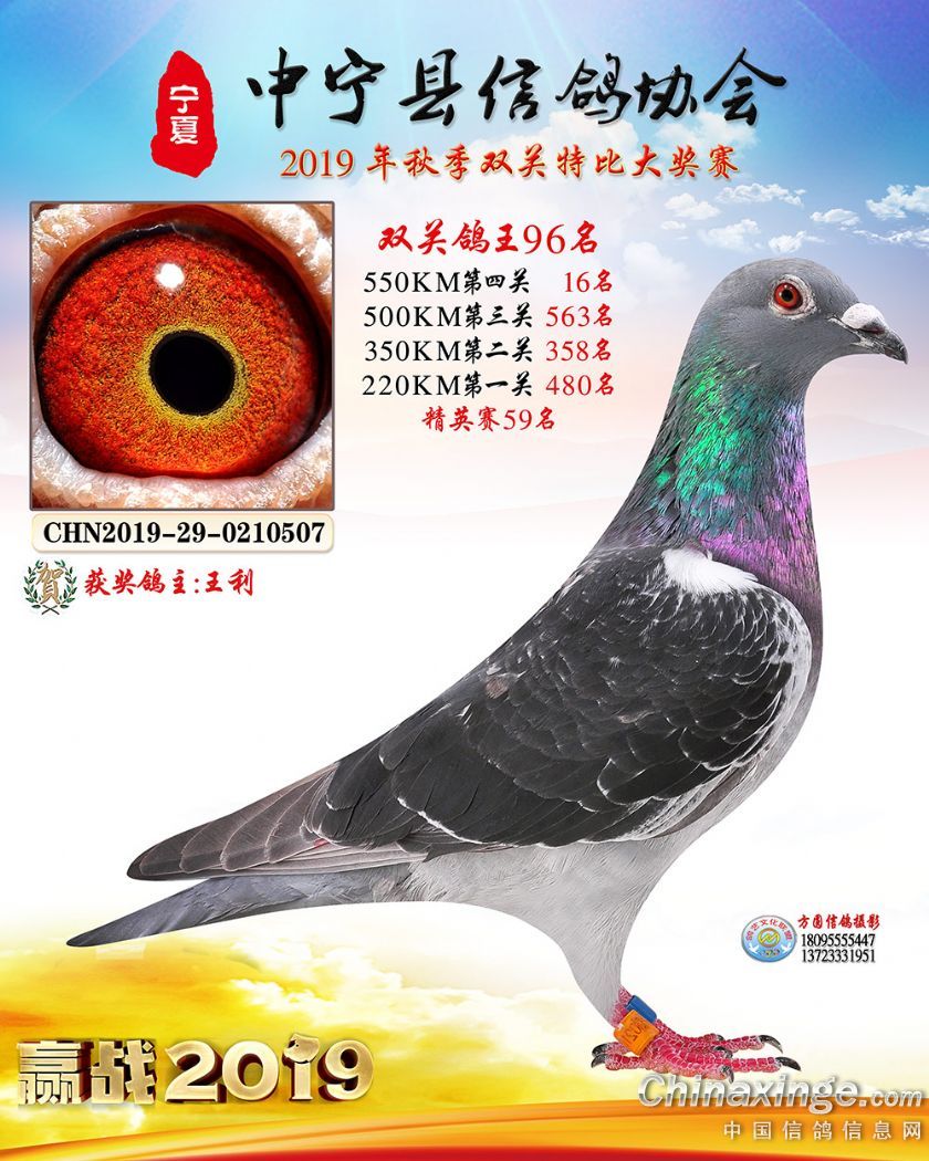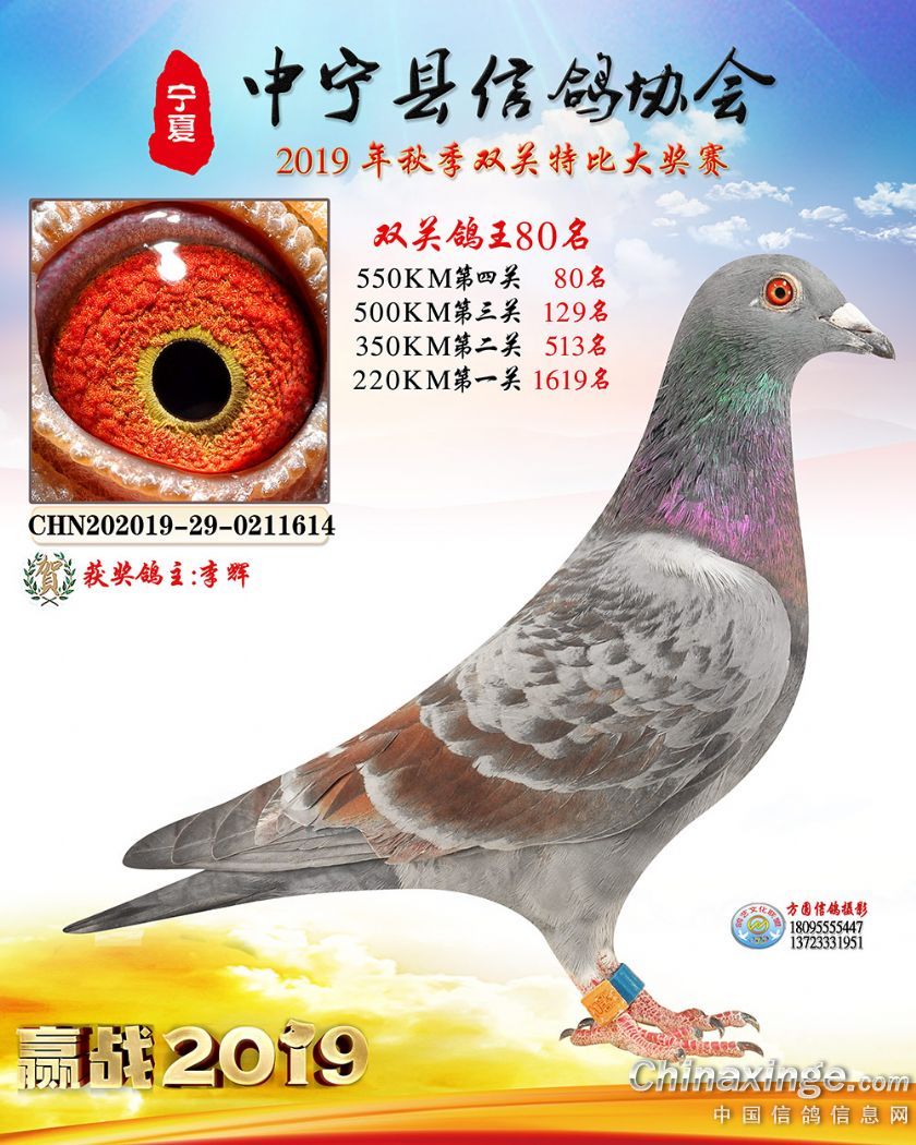 作品说明: 2019年宁夏中宁信鸽协会秋季比赛获奖鸽照片60-120
