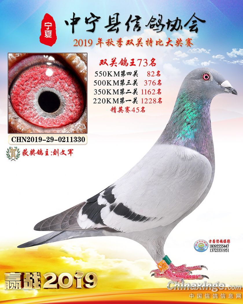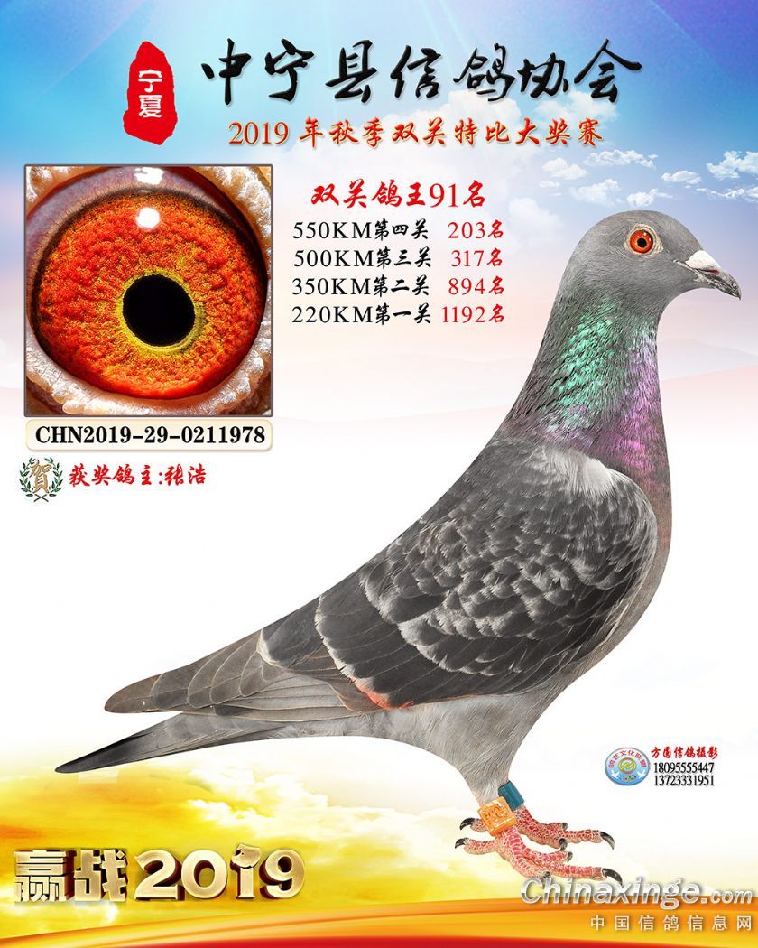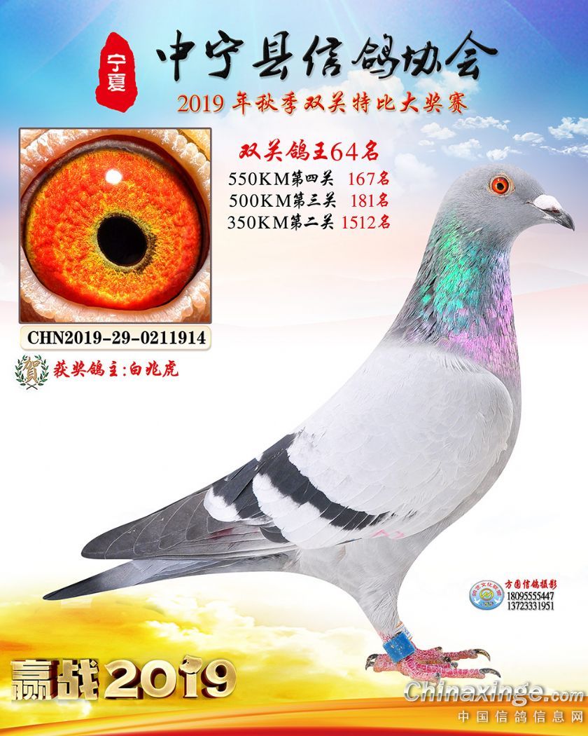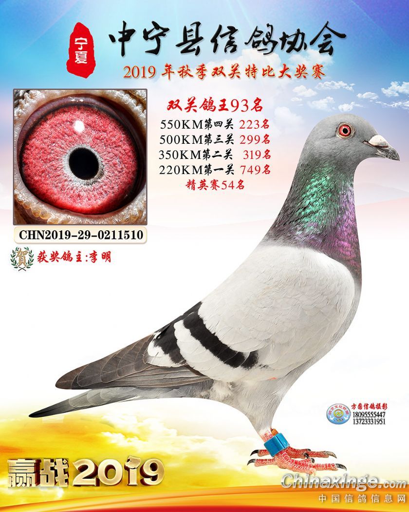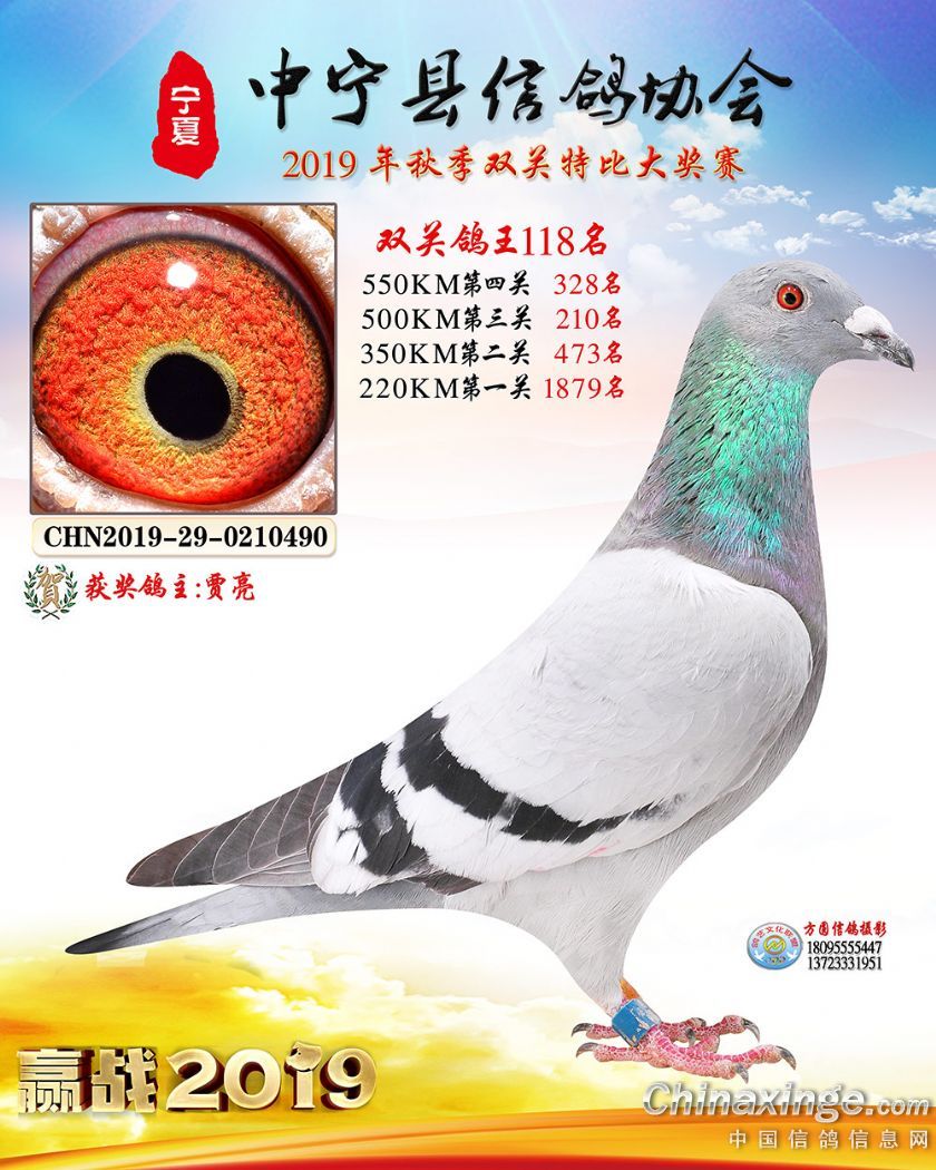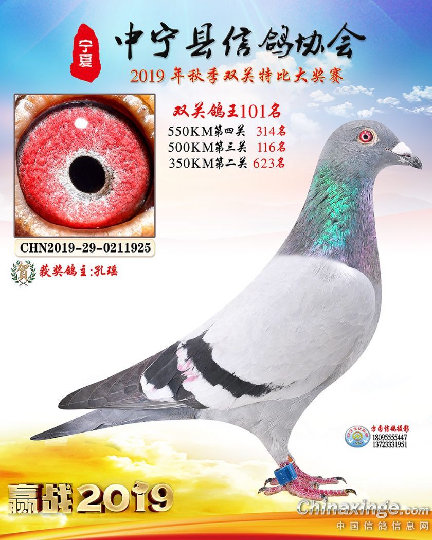 作品说明: 2019年宁夏中宁信鸽协会秋季比赛获奖鸽照片60-120