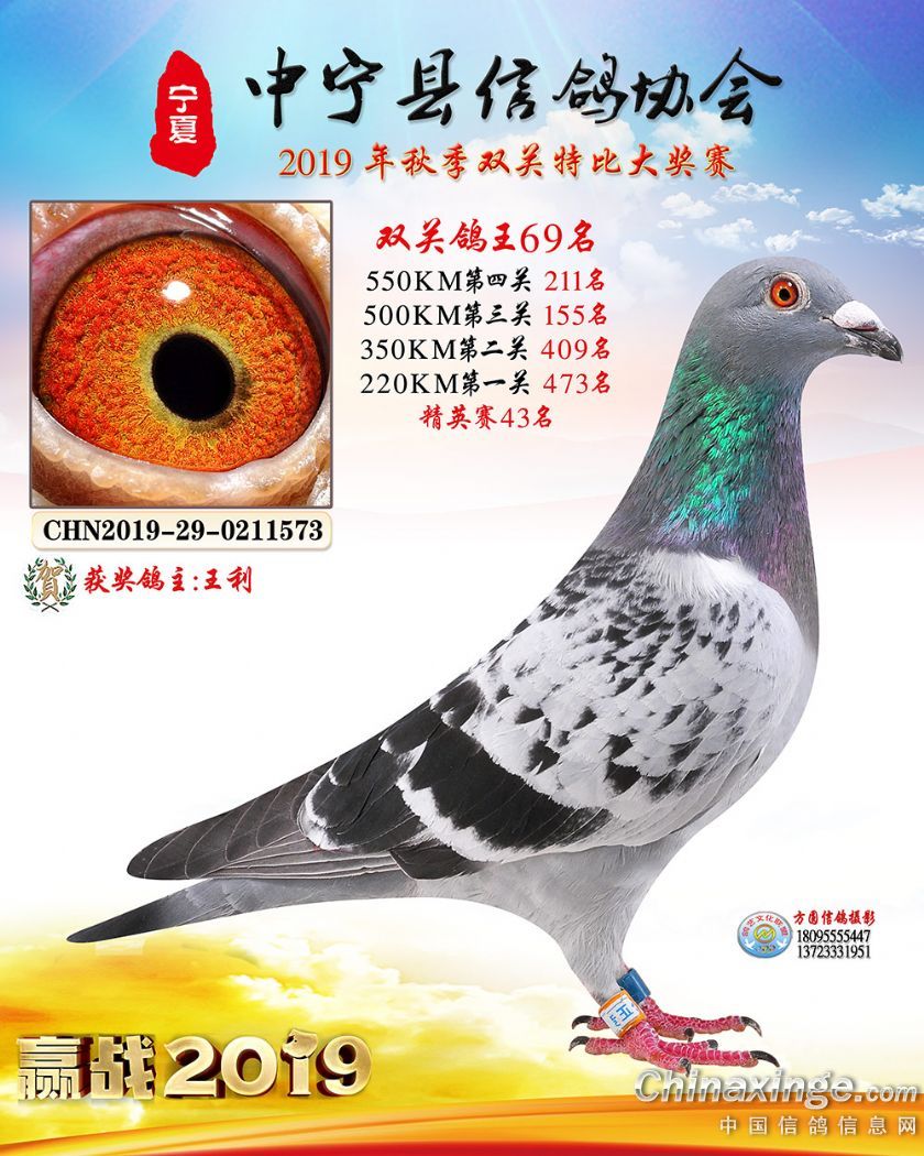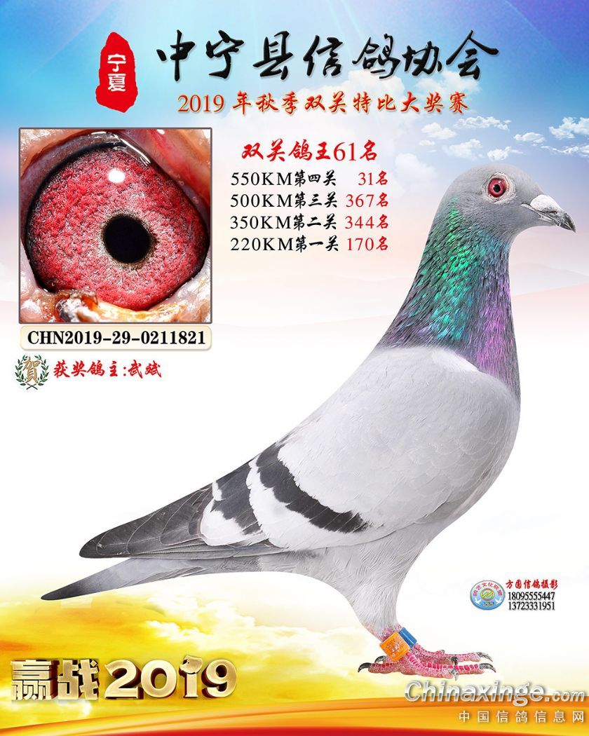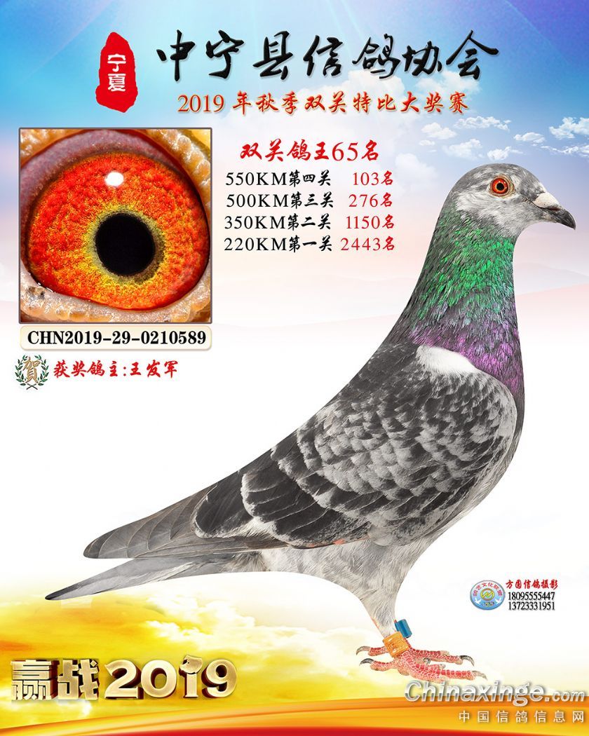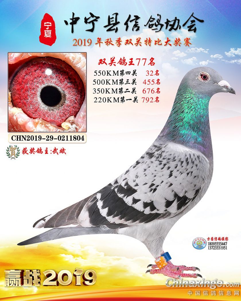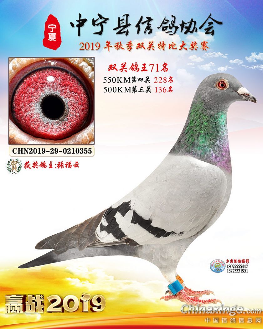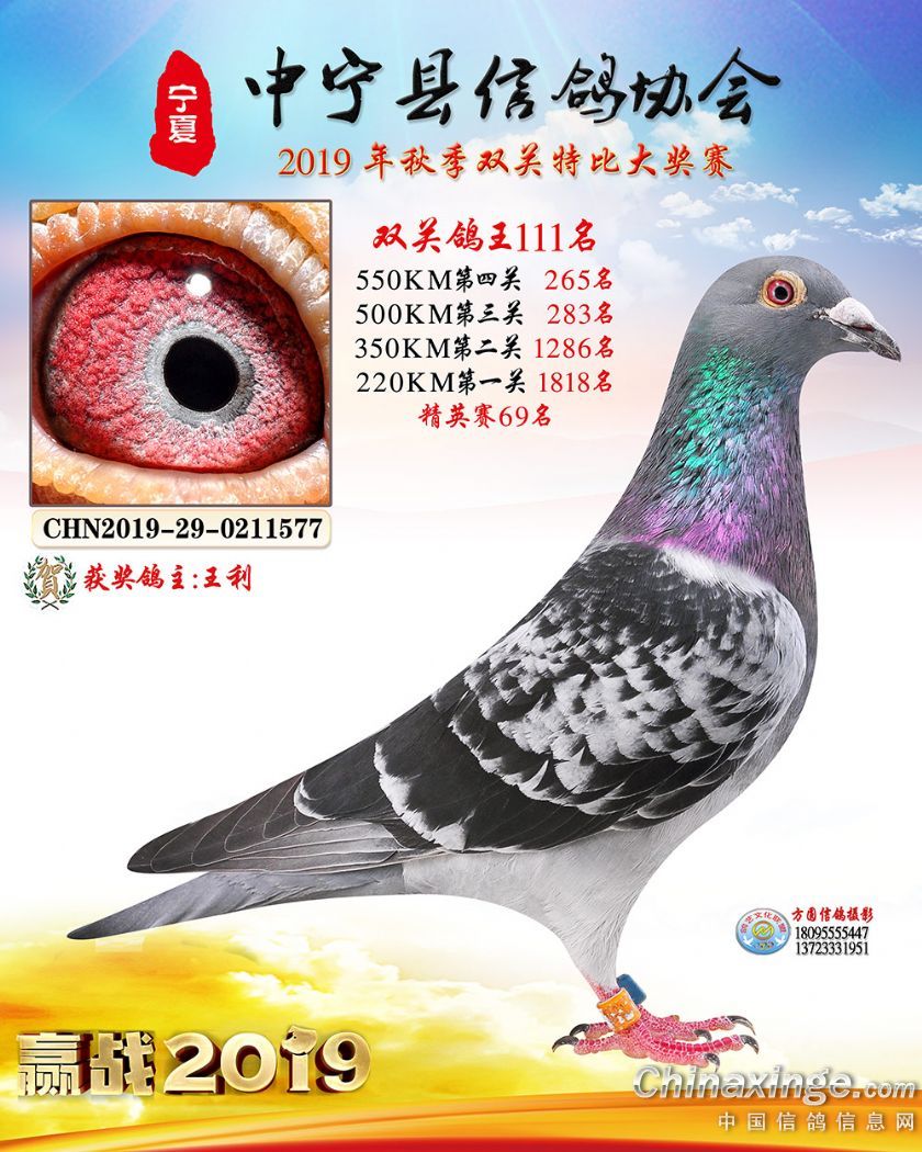 作品说明: 2019年宁夏中宁信鸽协会秋季比赛获奖鸽照片60-120