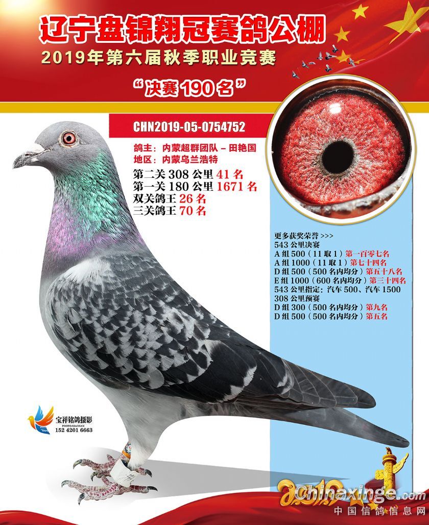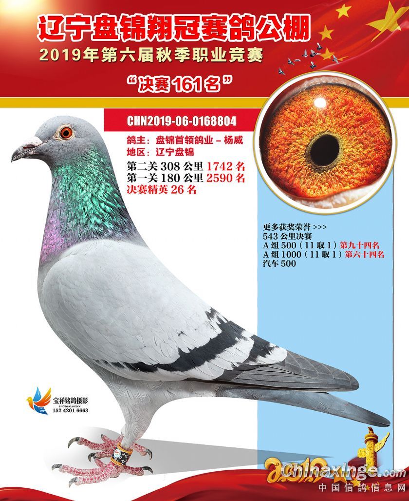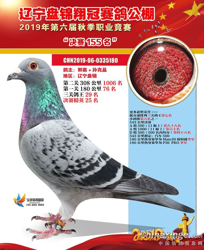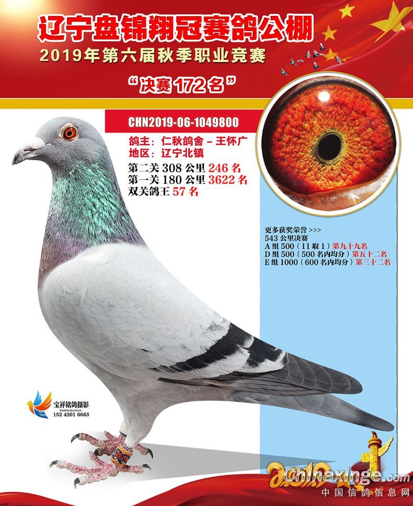辽宁翔冠公棚2019年决赛获奖鸽展示(151-200名)