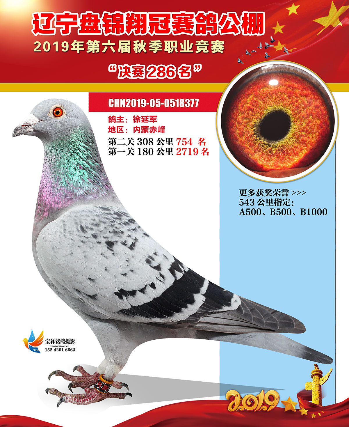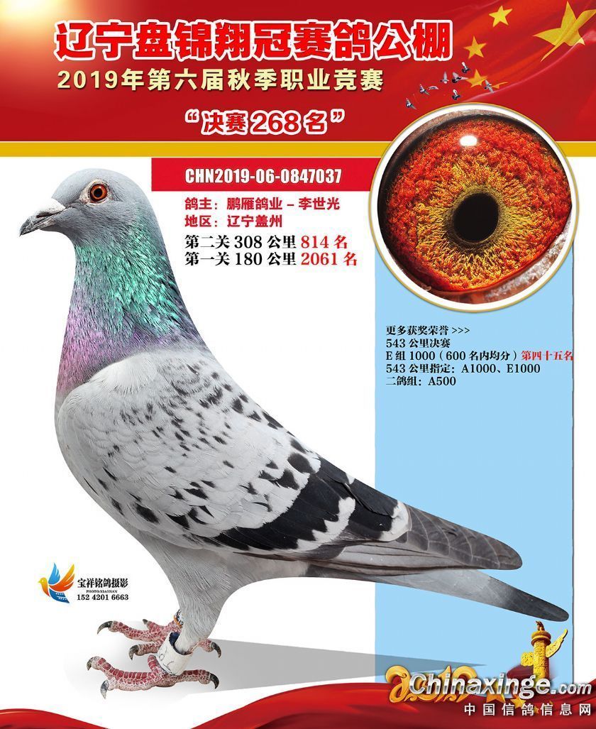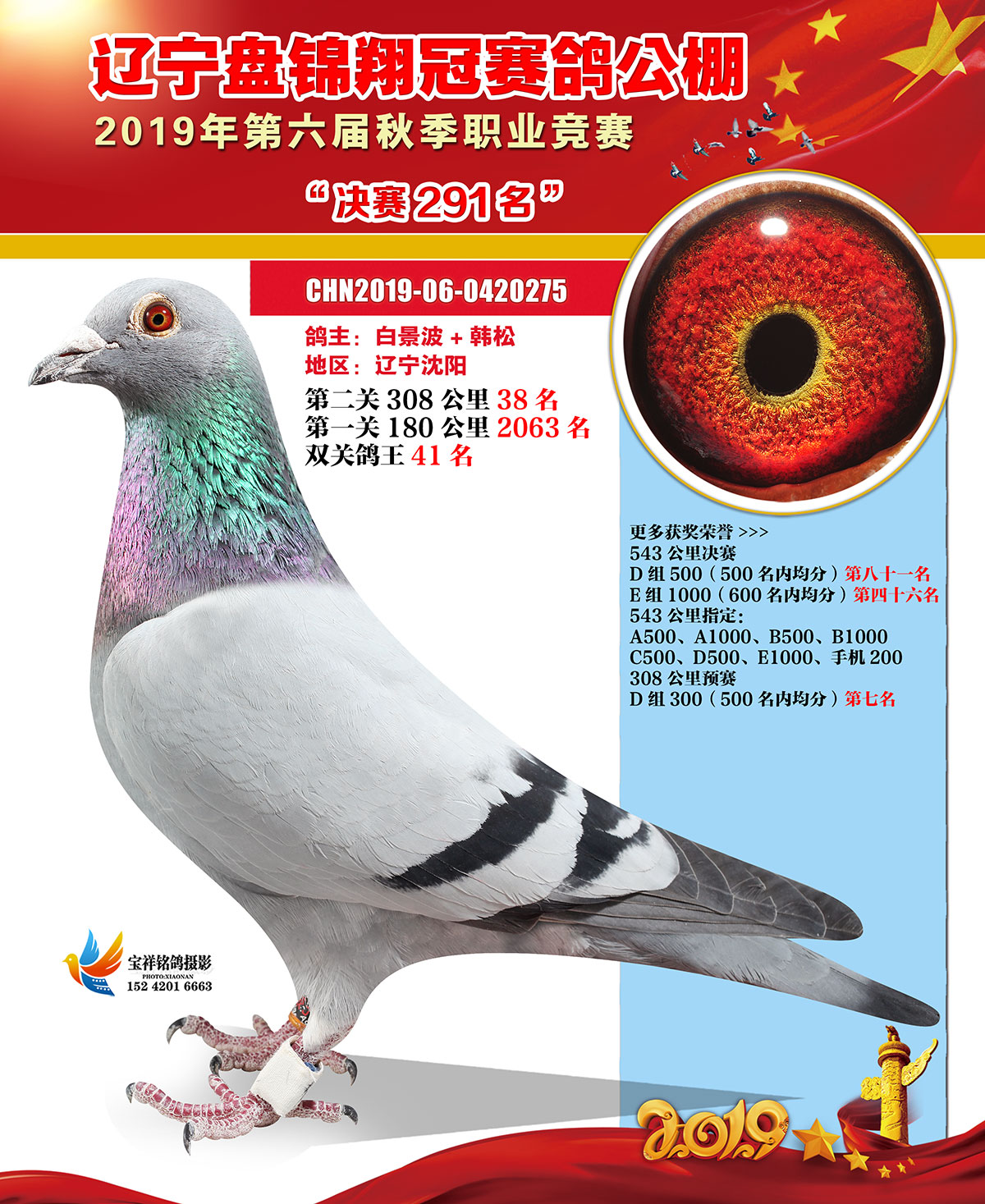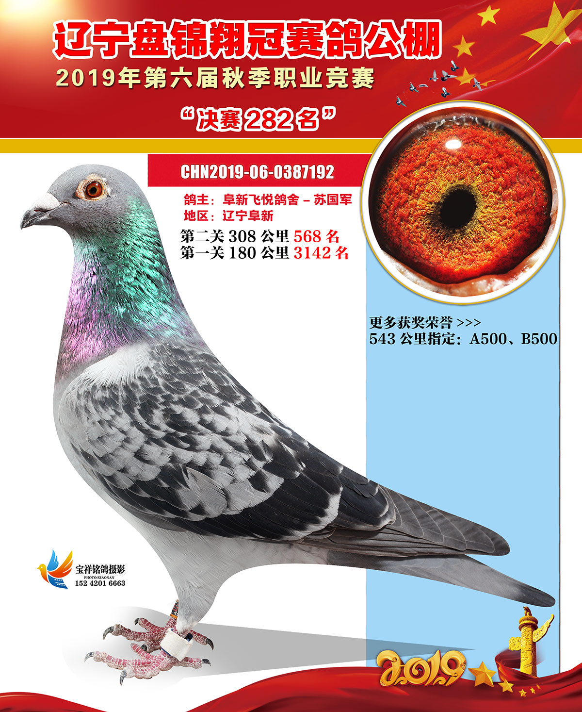 辽宁翔冠公棚2019年决赛获奖鸽展示(251-300名)