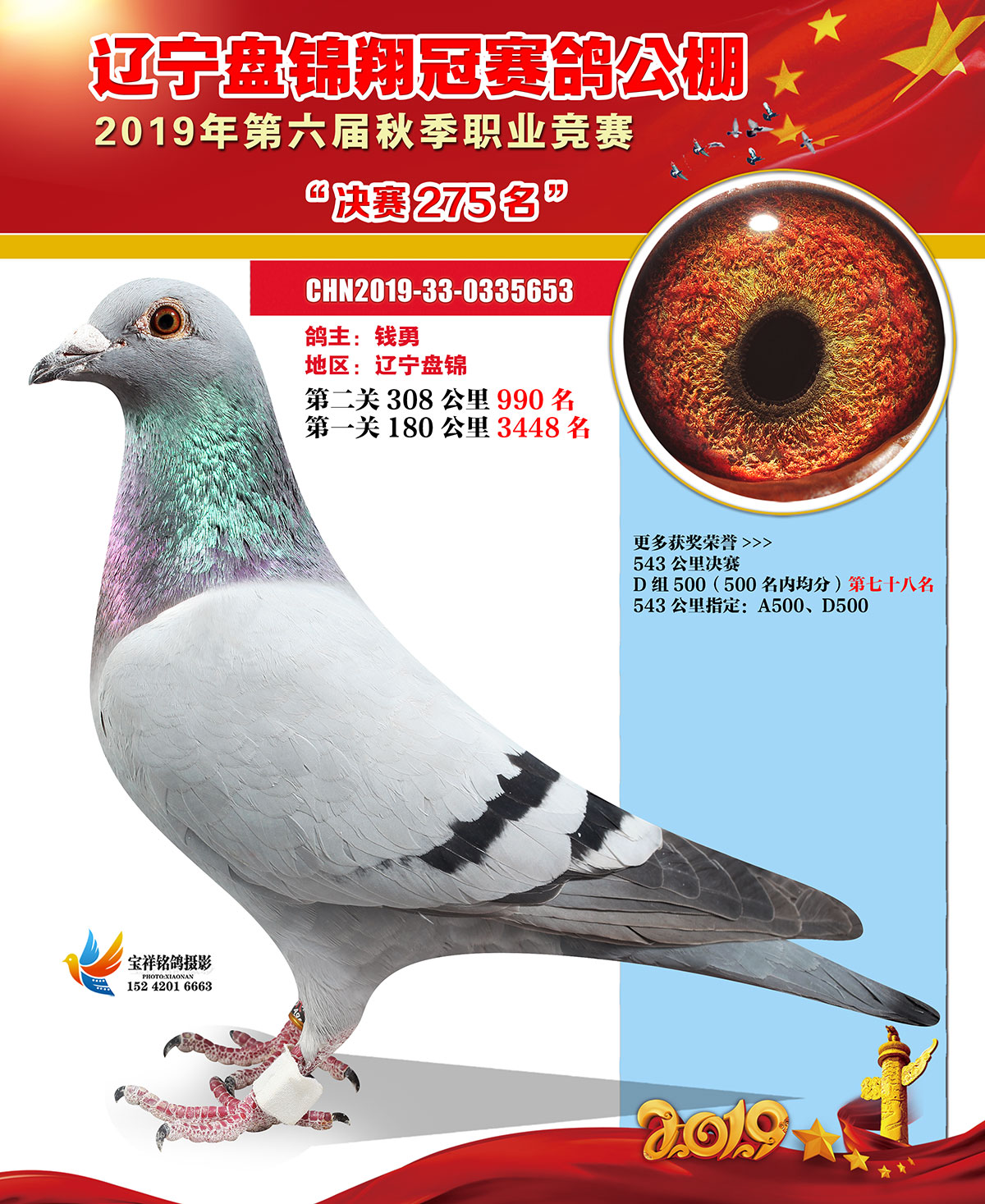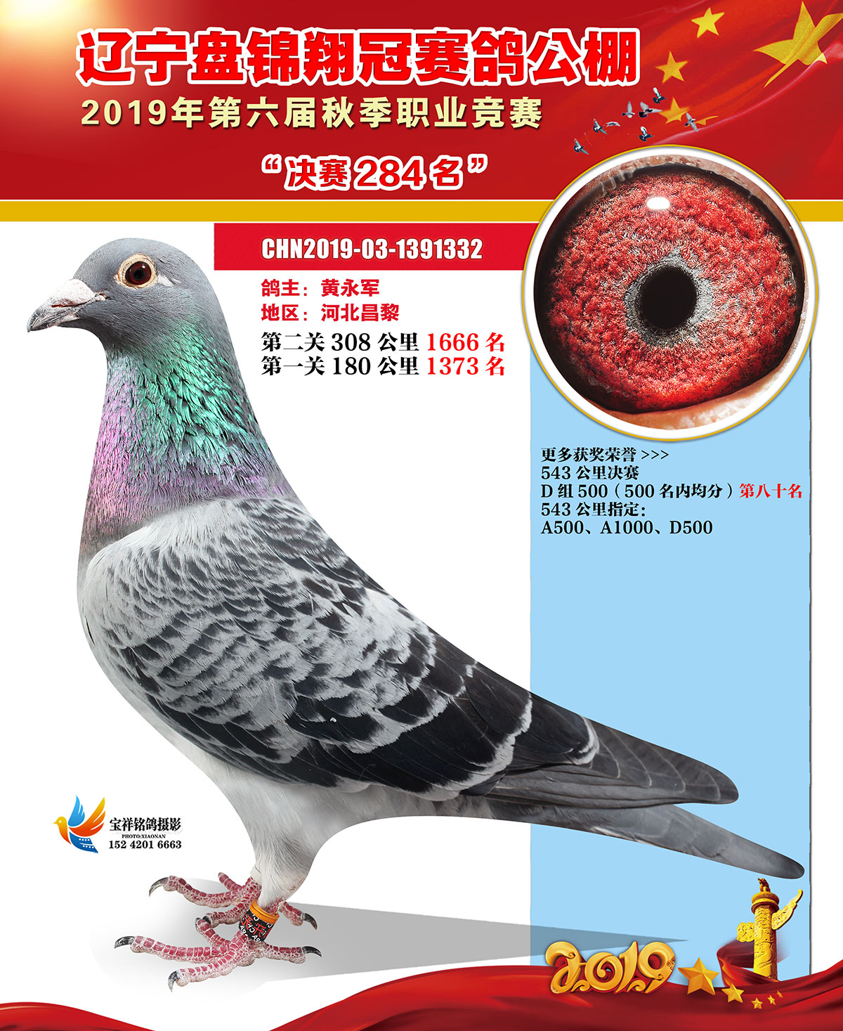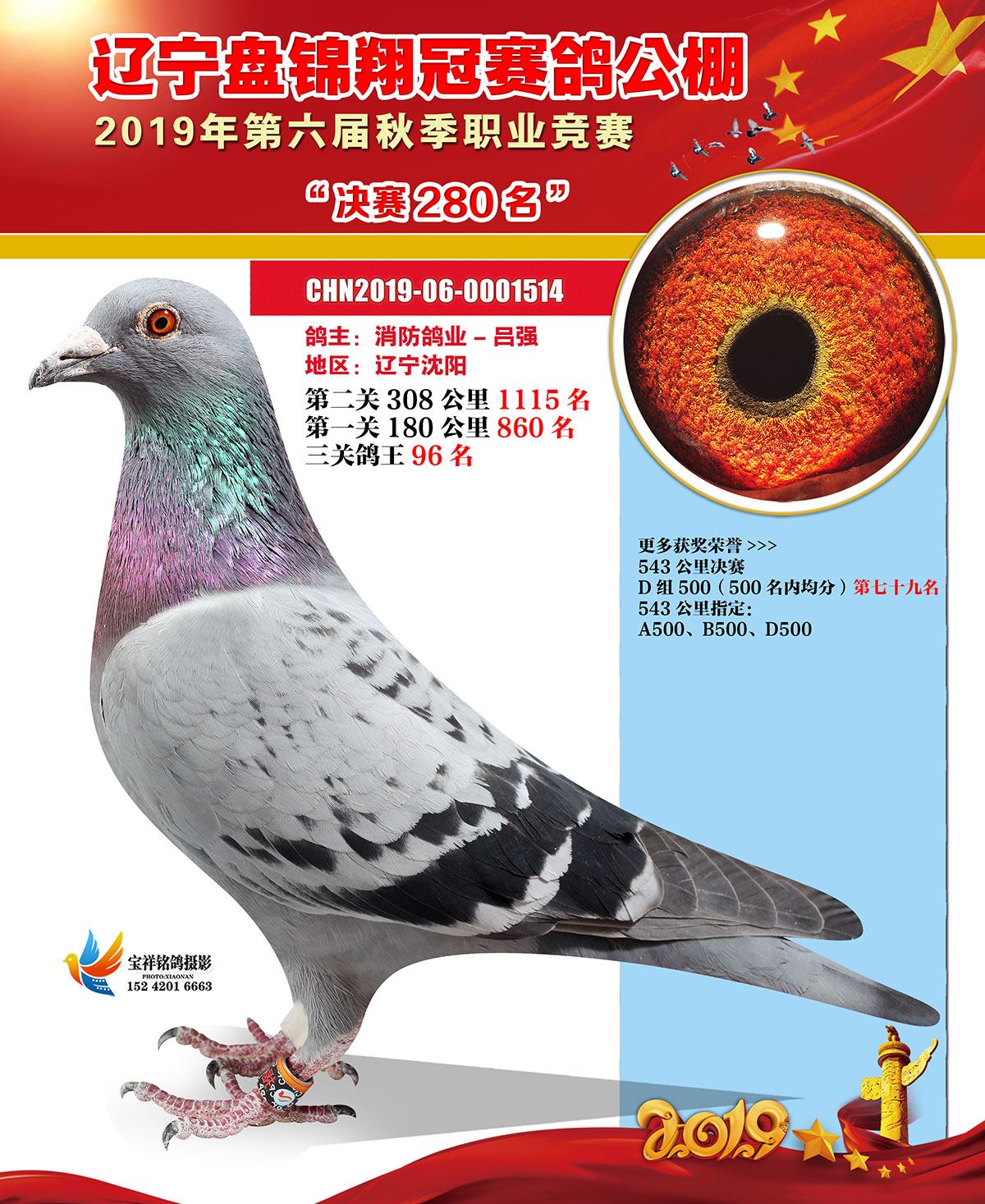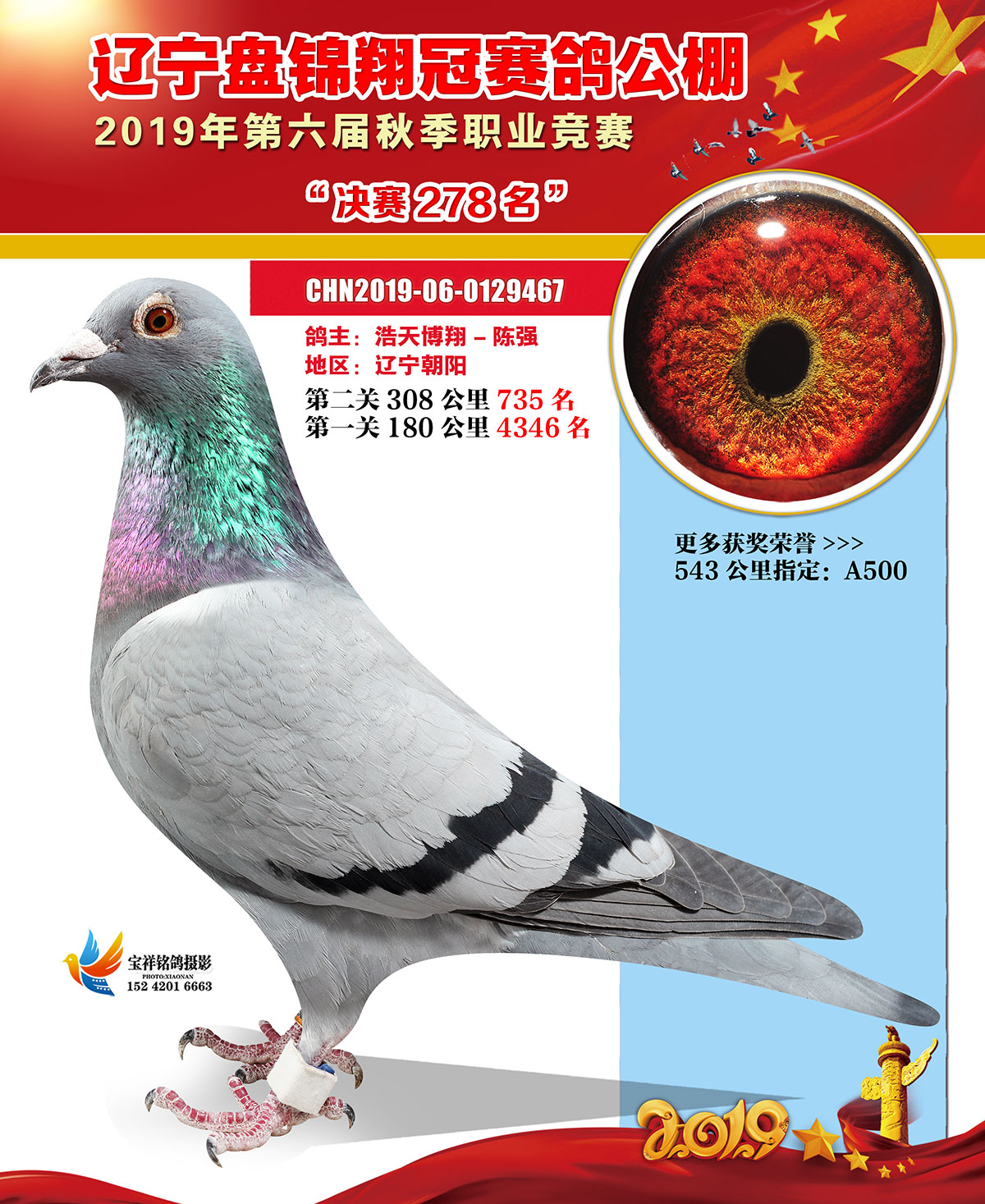 辽宁翔冠公棚2019年决赛获奖鸽展示(251-300名)