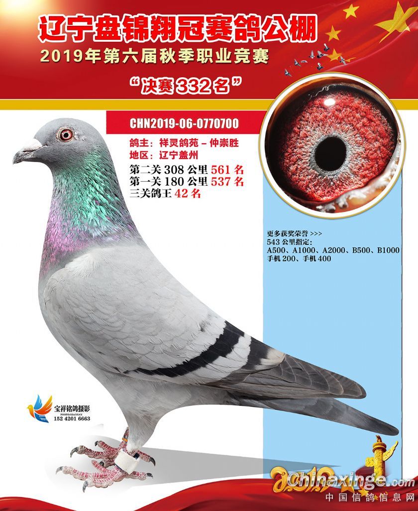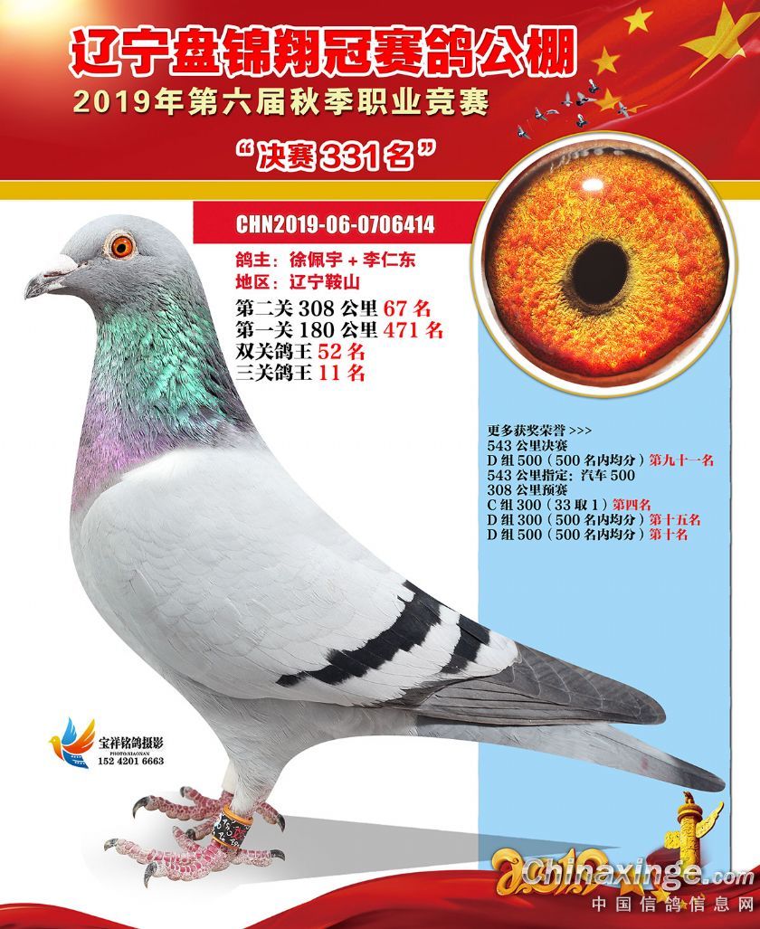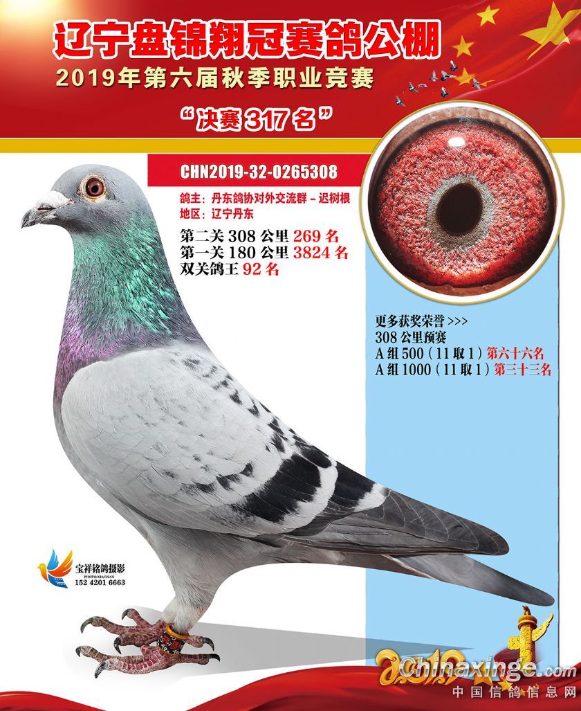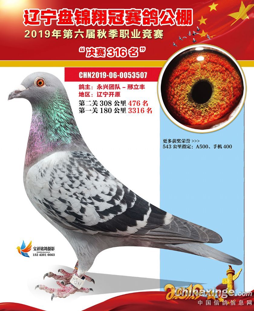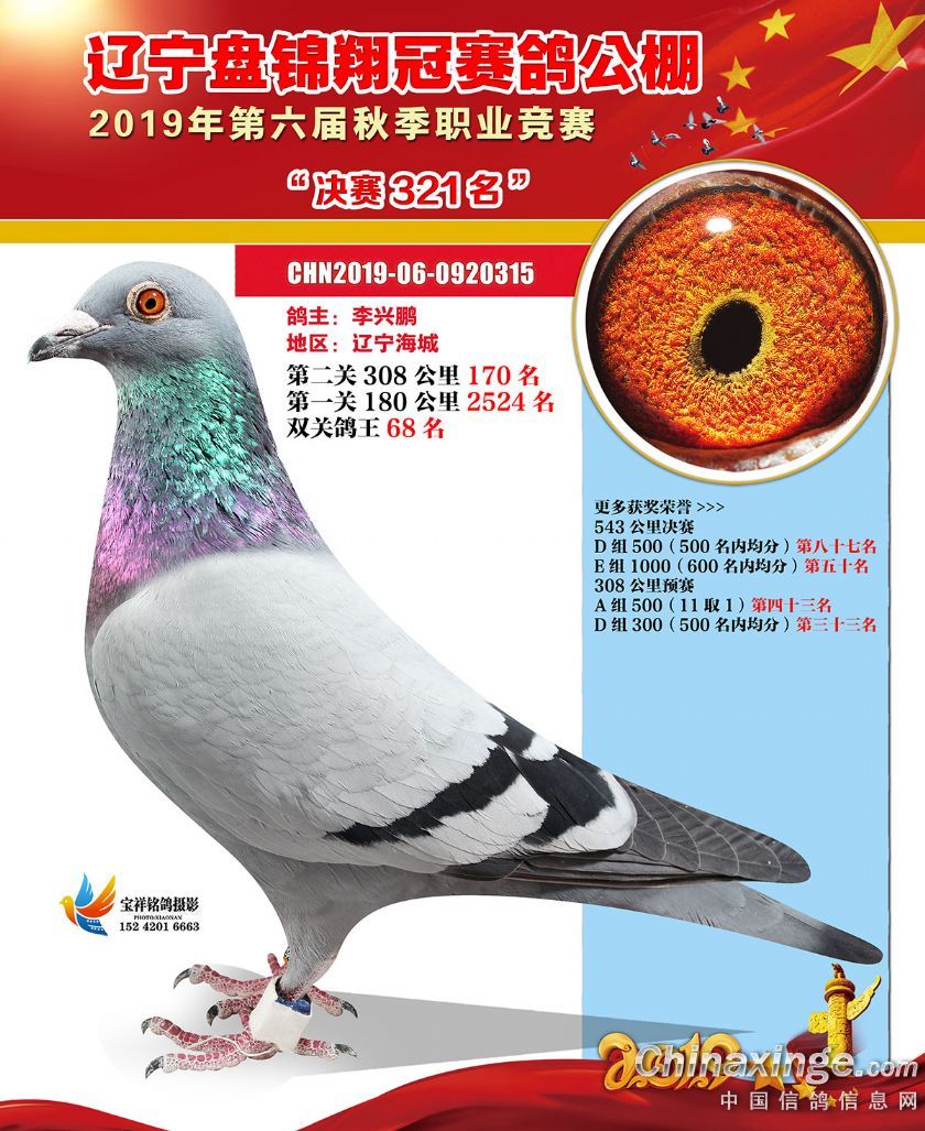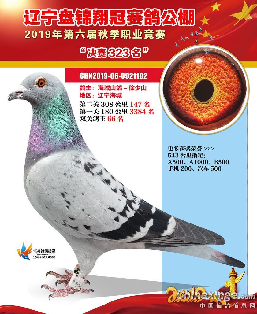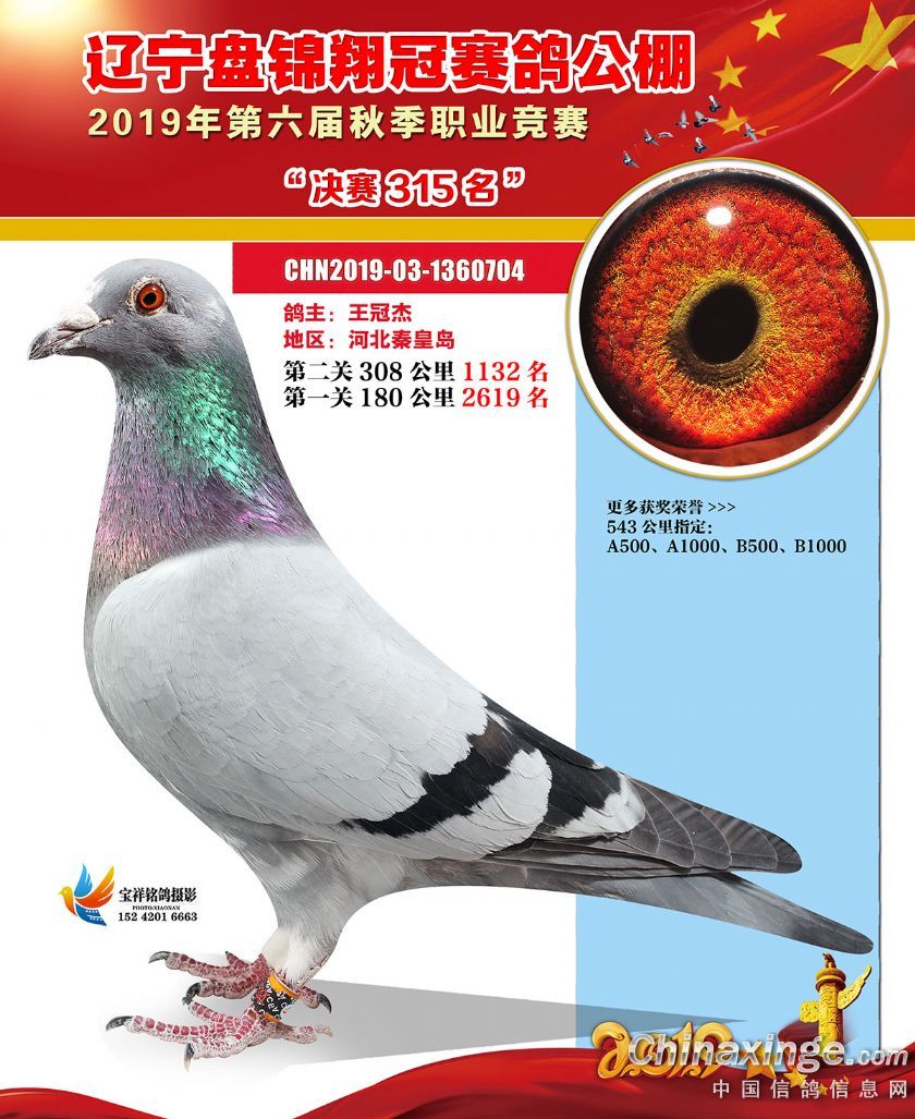 辽宁翔冠公棚2019年决赛获奖鸽展示(301-350名)