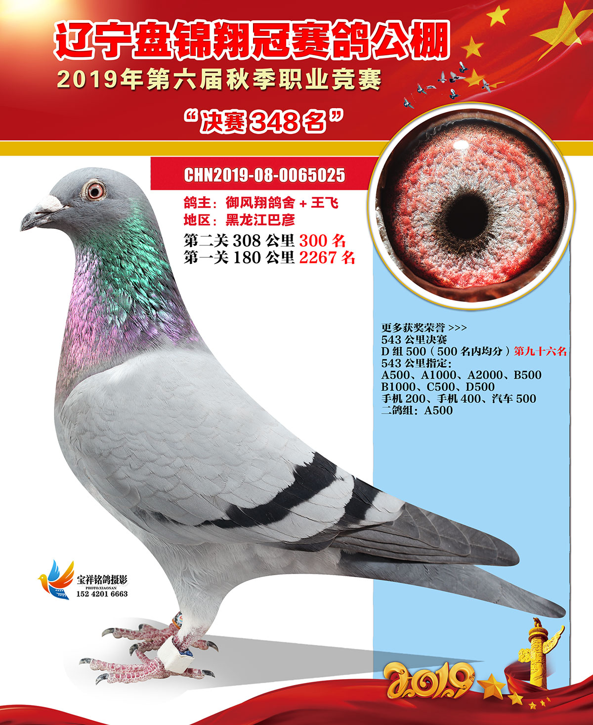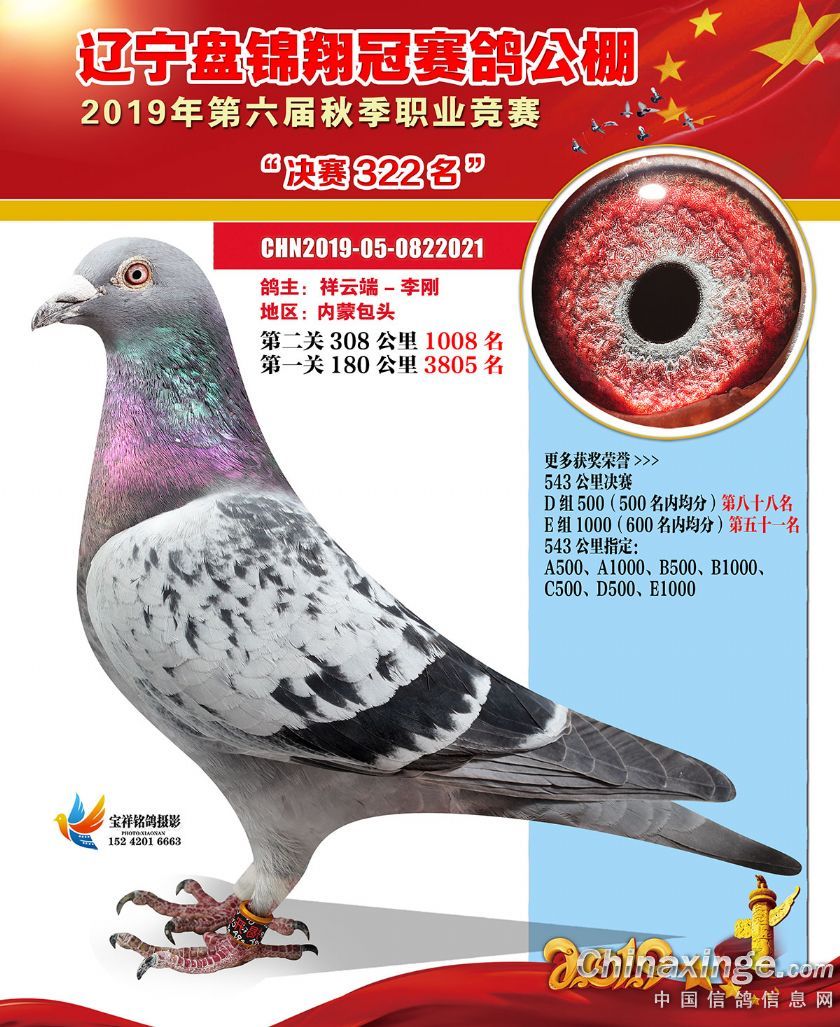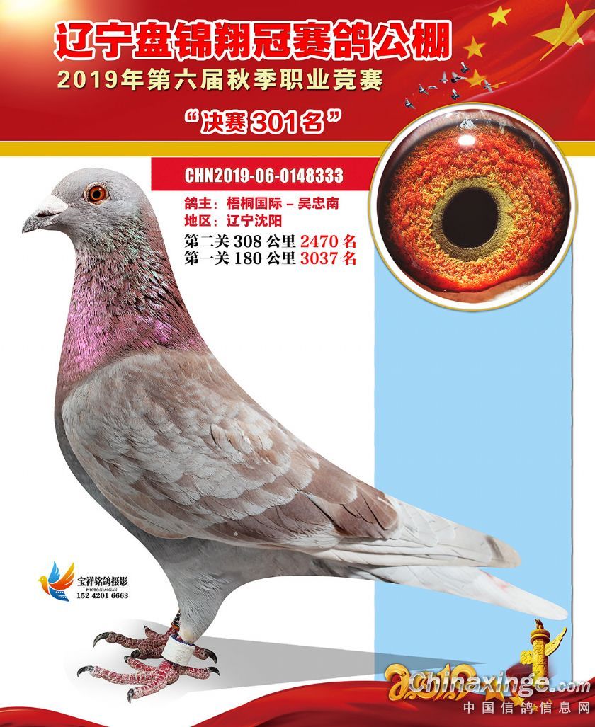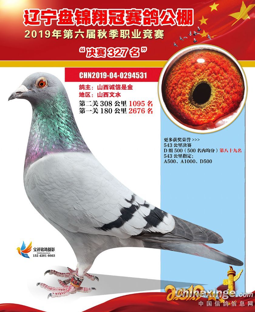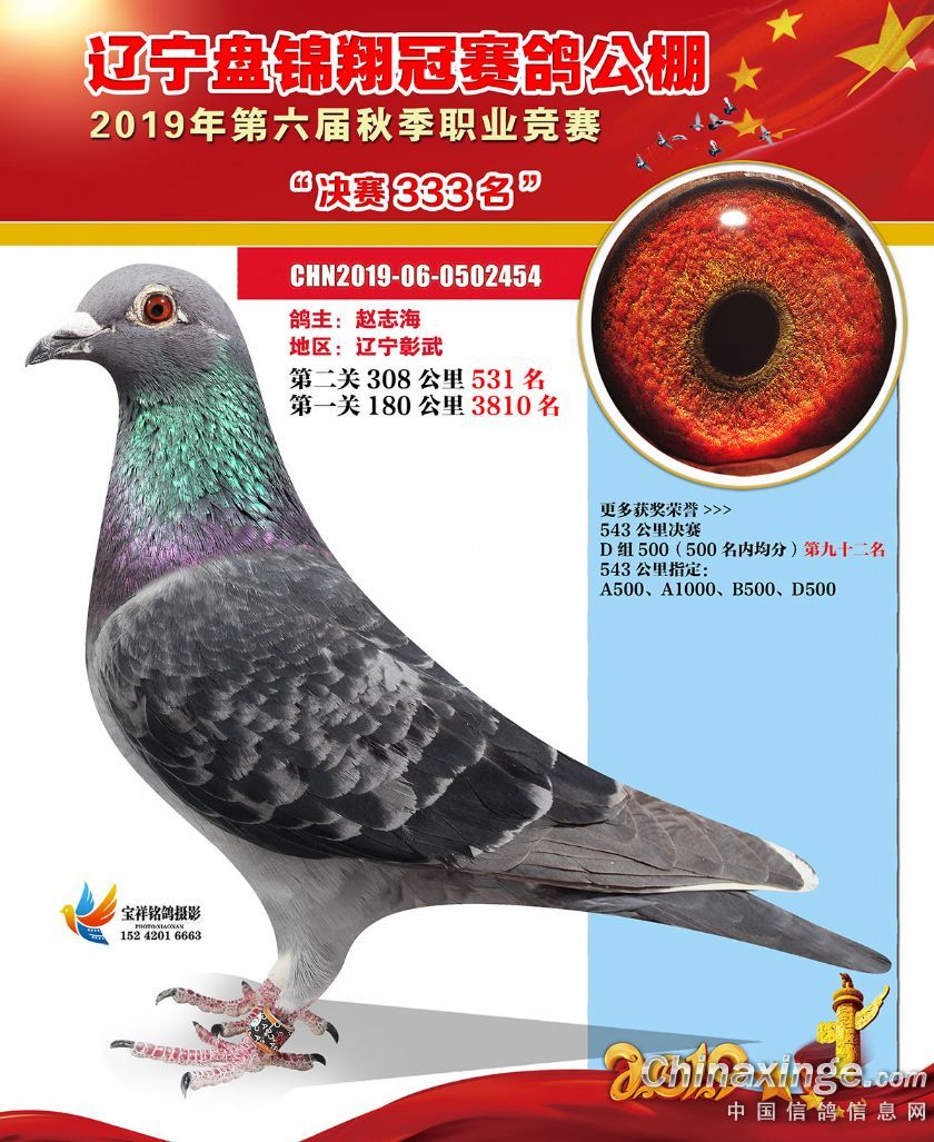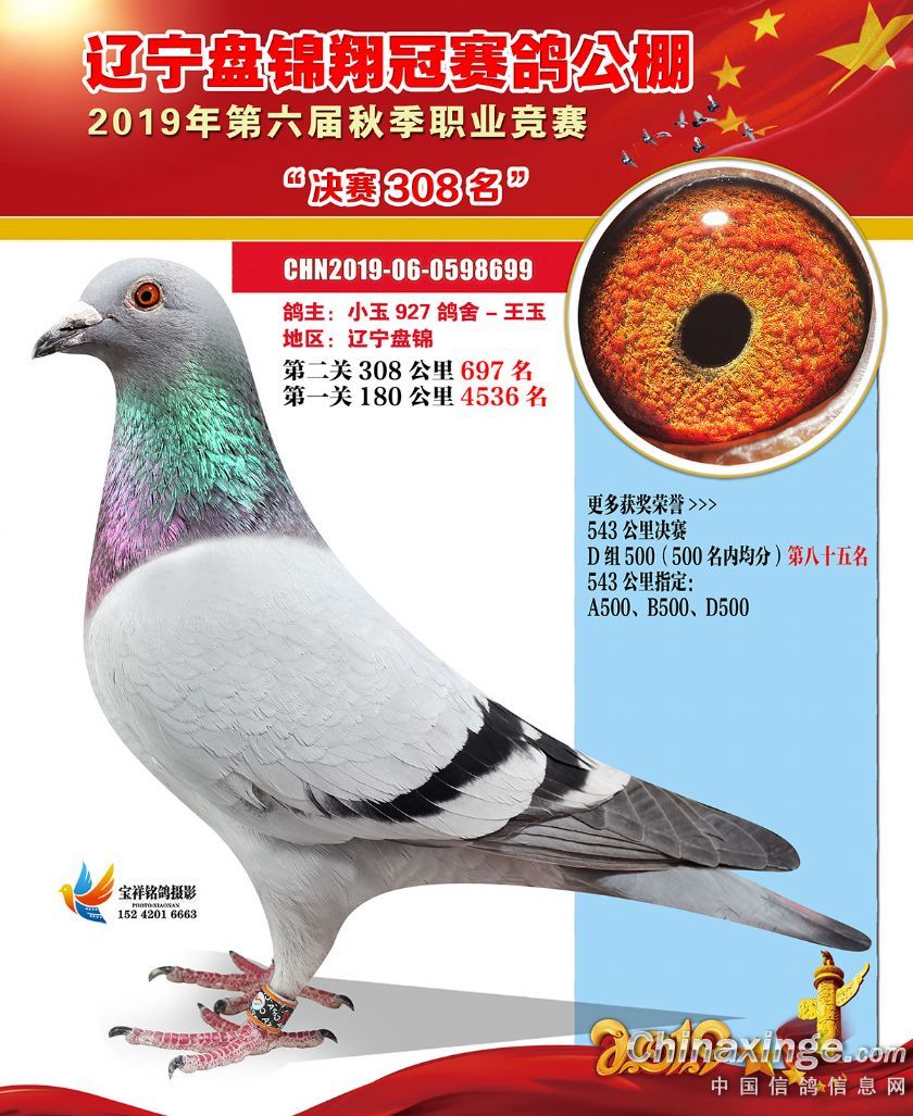 辽宁翔冠公棚2019年决赛获奖鸽展示(301-350名)
