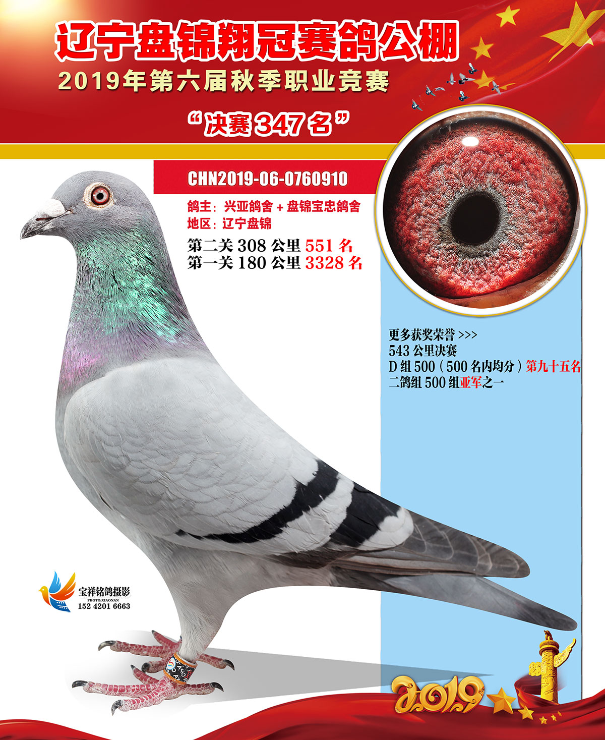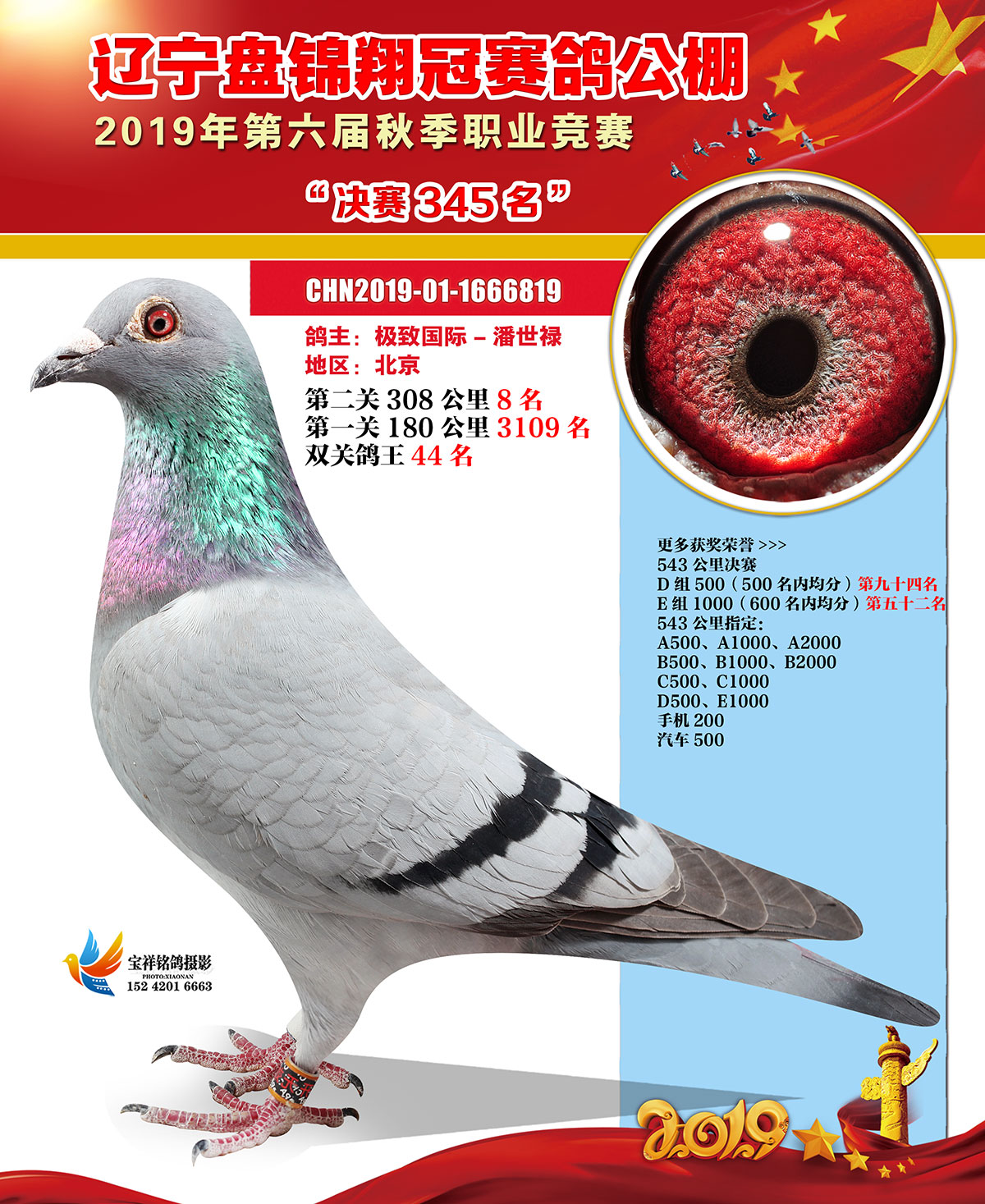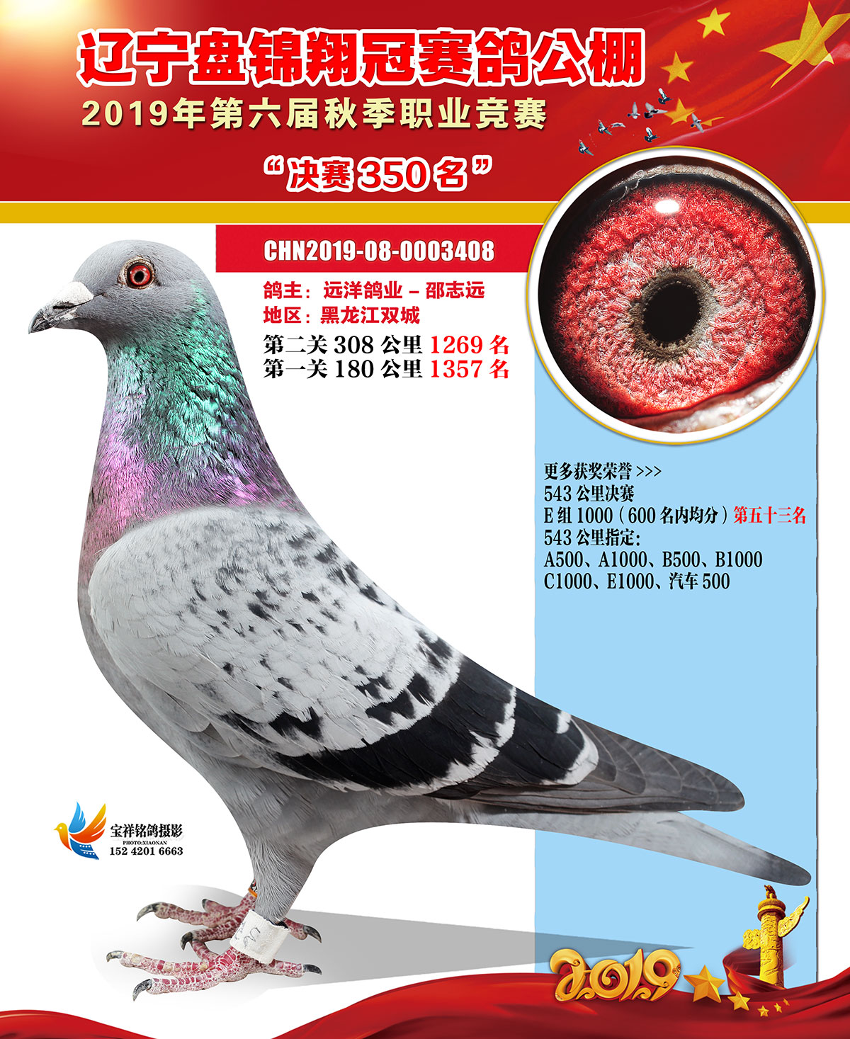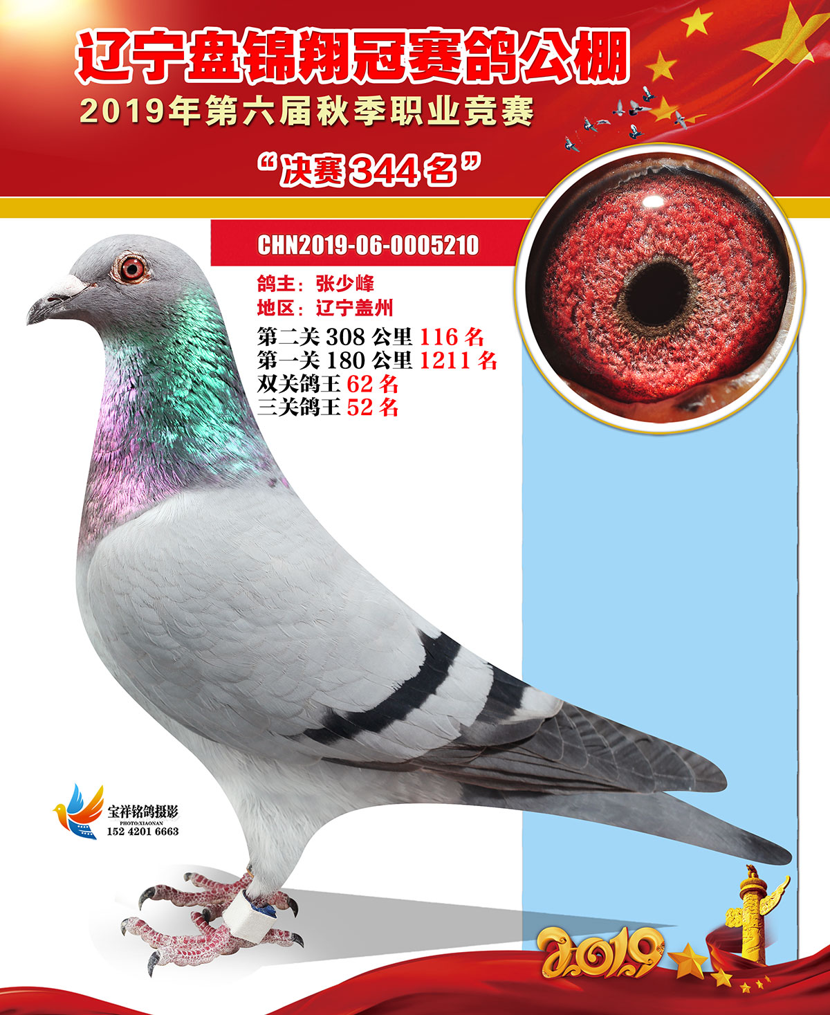 辽宁翔冠公棚2019年决赛获奖鸽展示(301-350名)