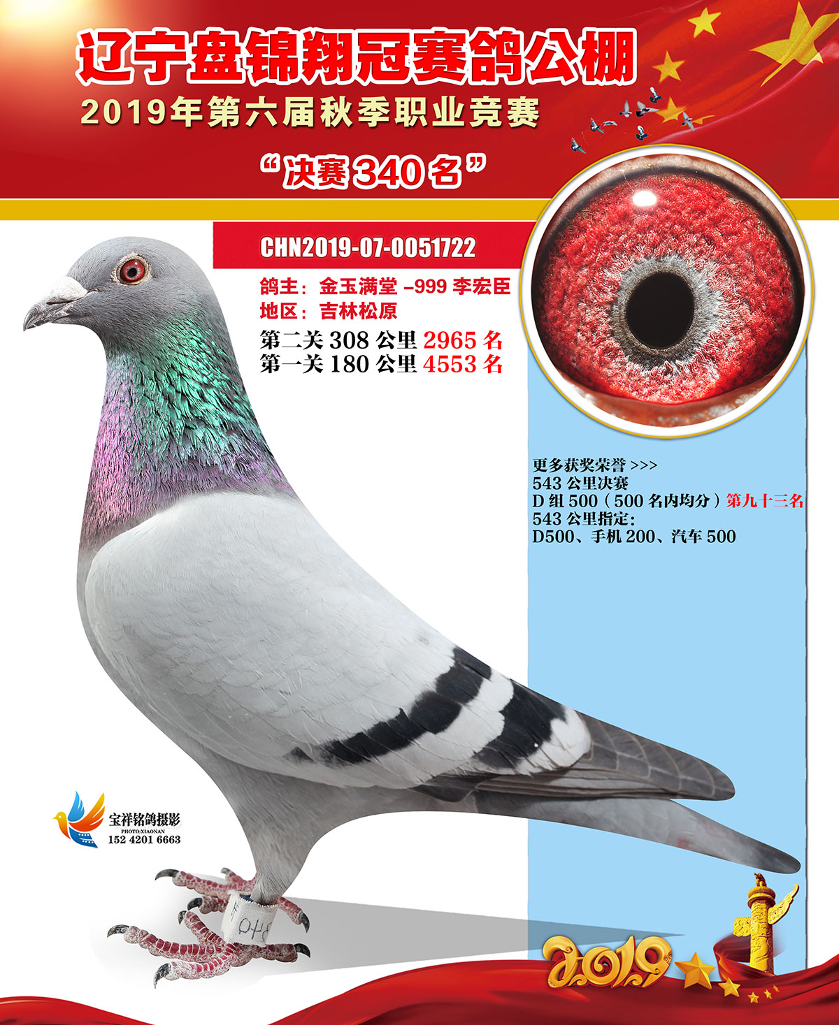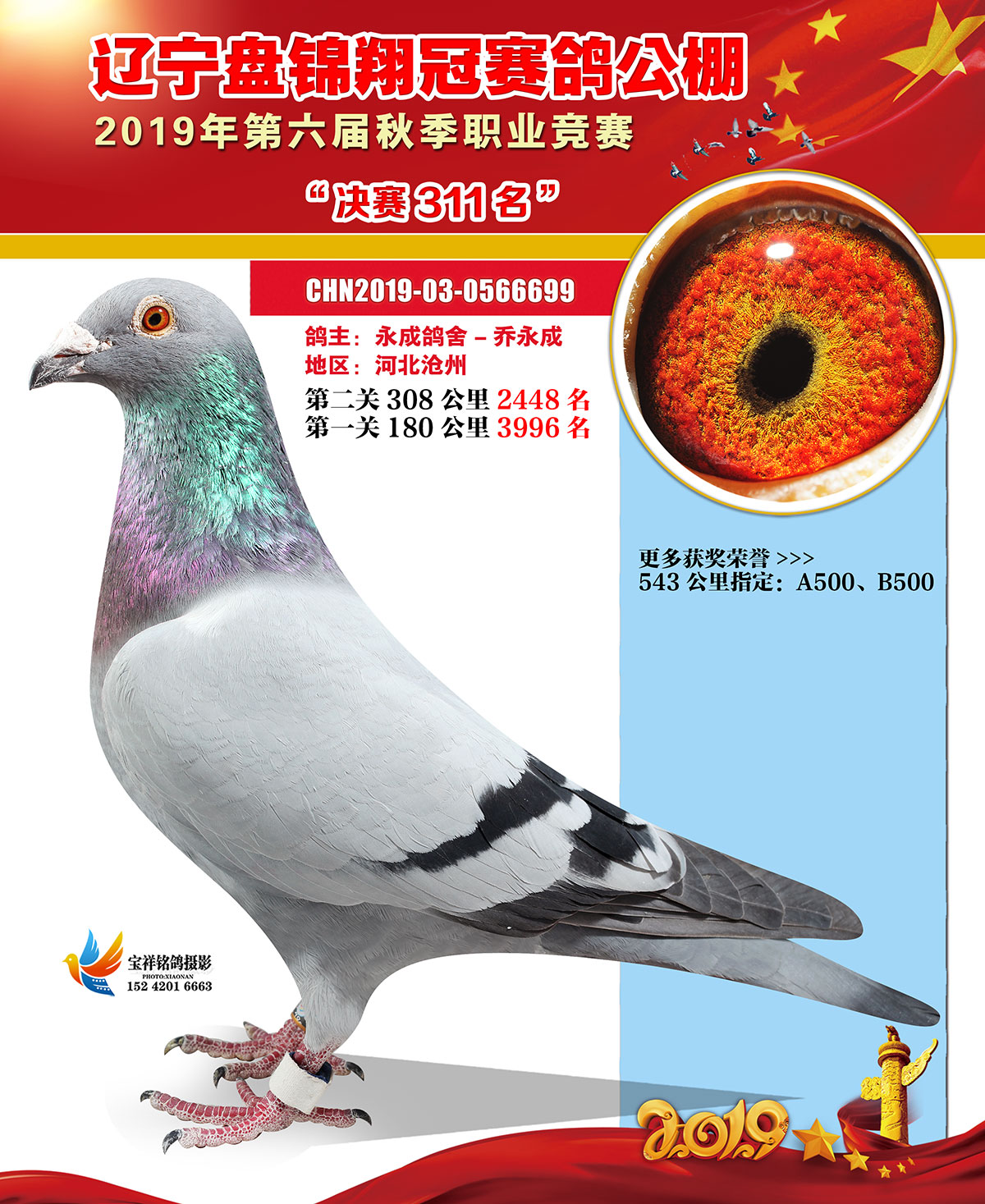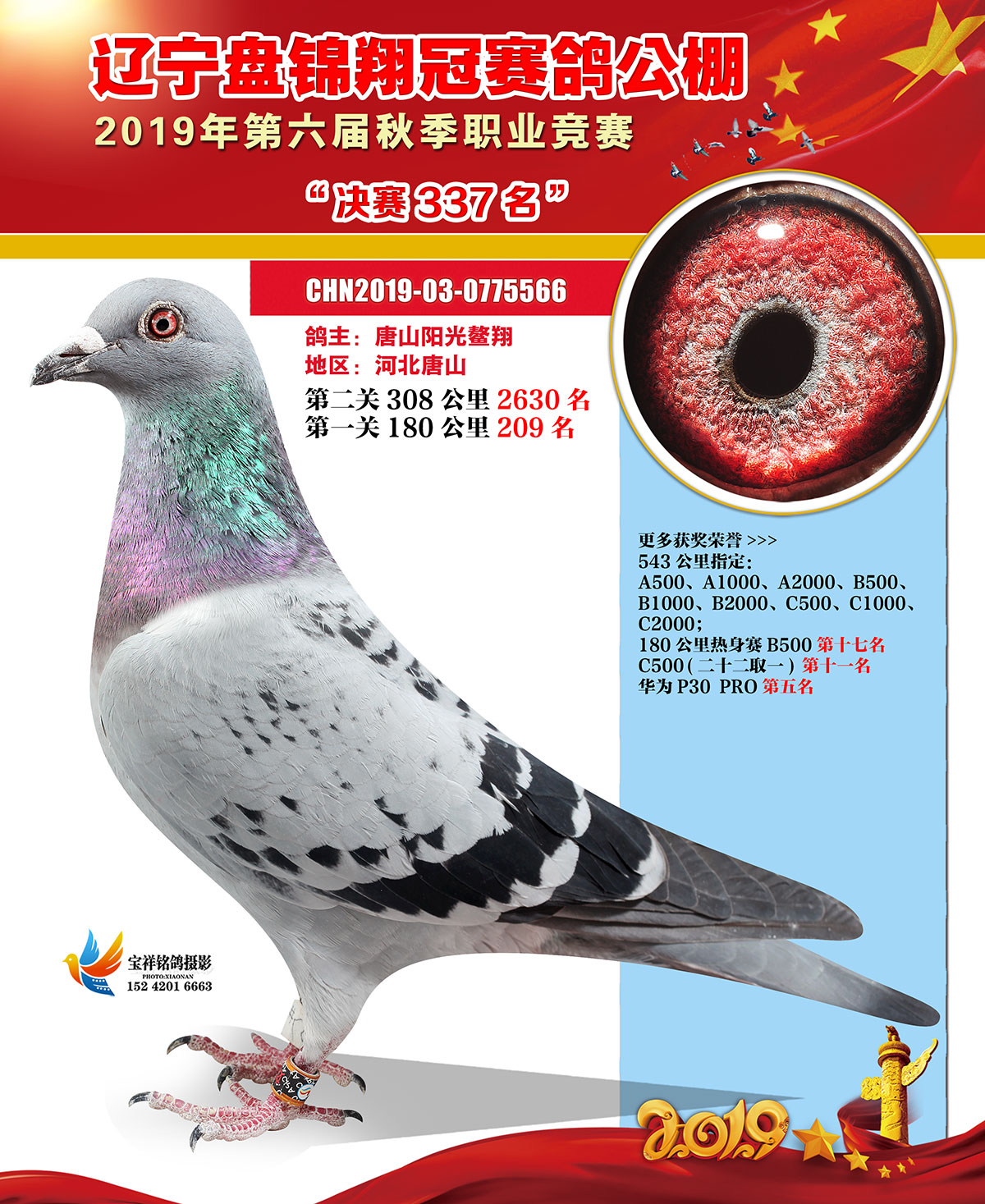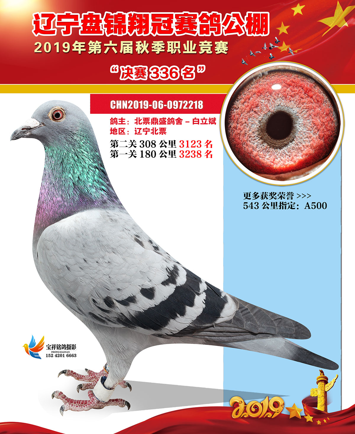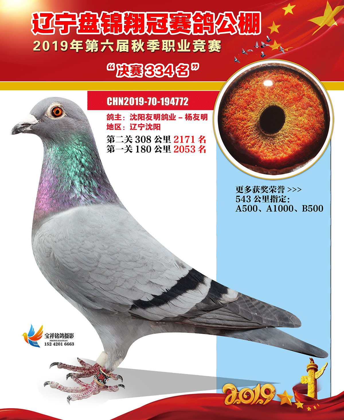 辽宁翔冠公棚2019年决赛获奖鸽展示(301-350名)