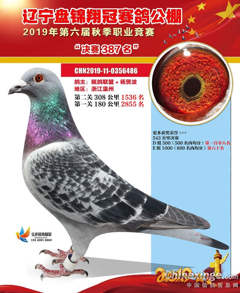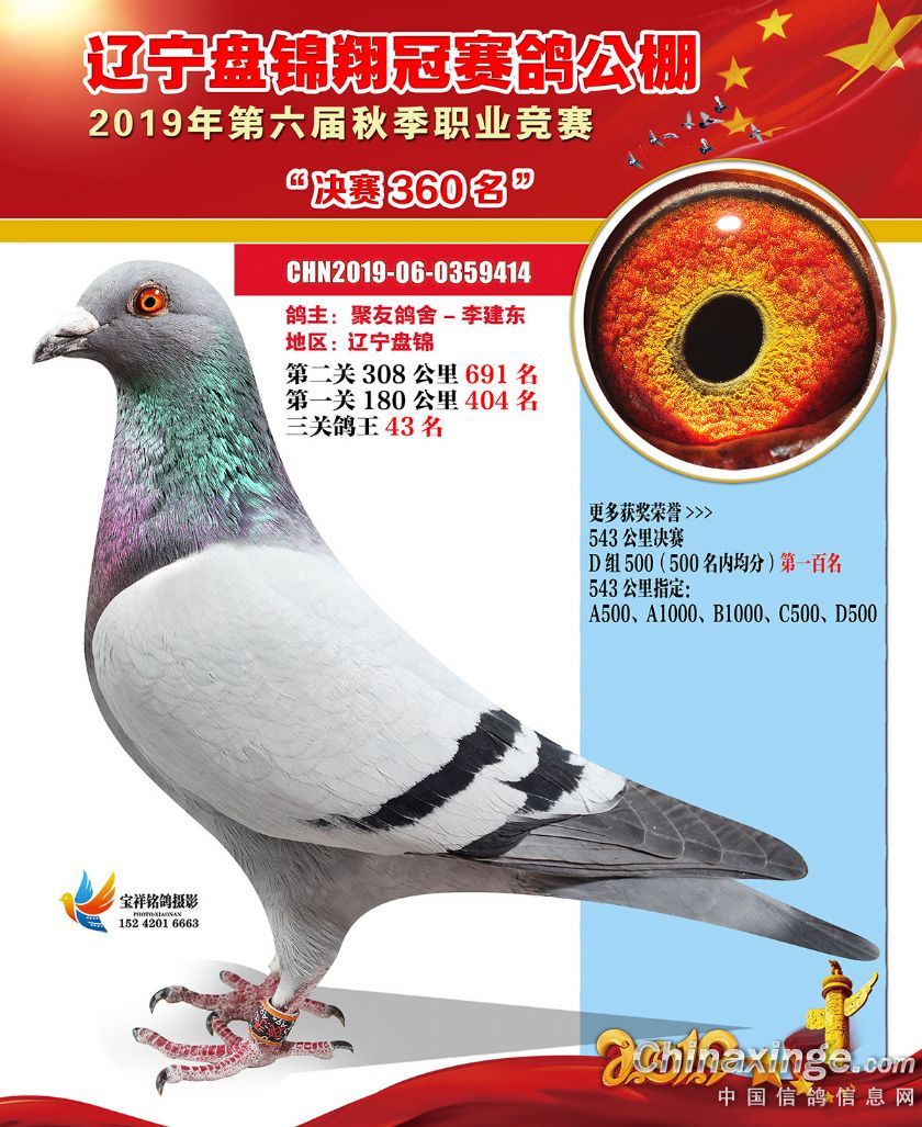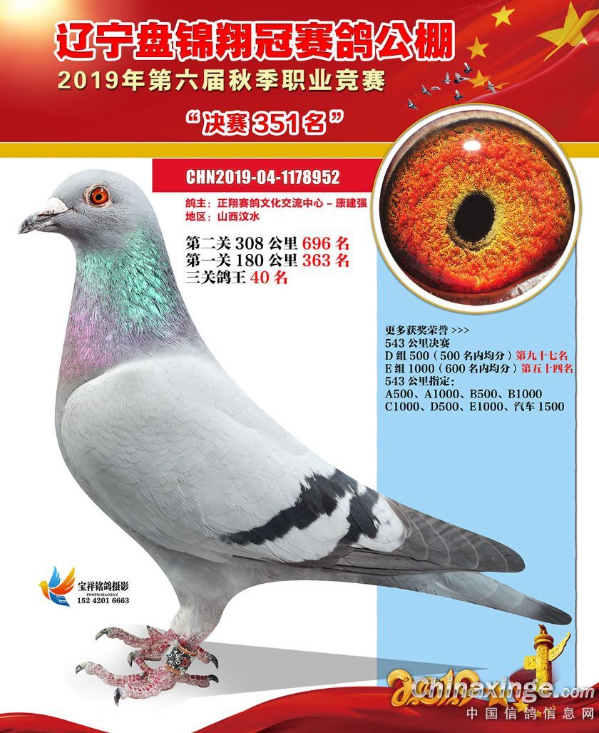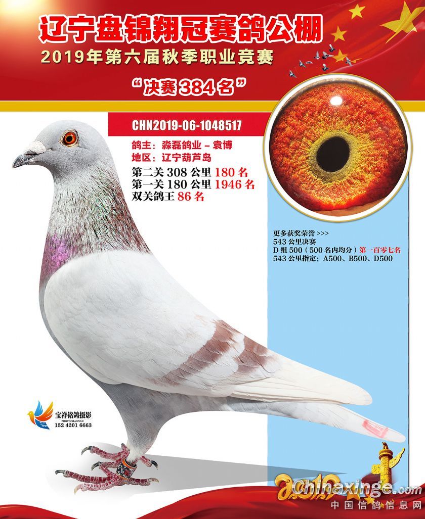 辽宁翔冠公棚2019年决赛获奖鸽展示(351-400名)