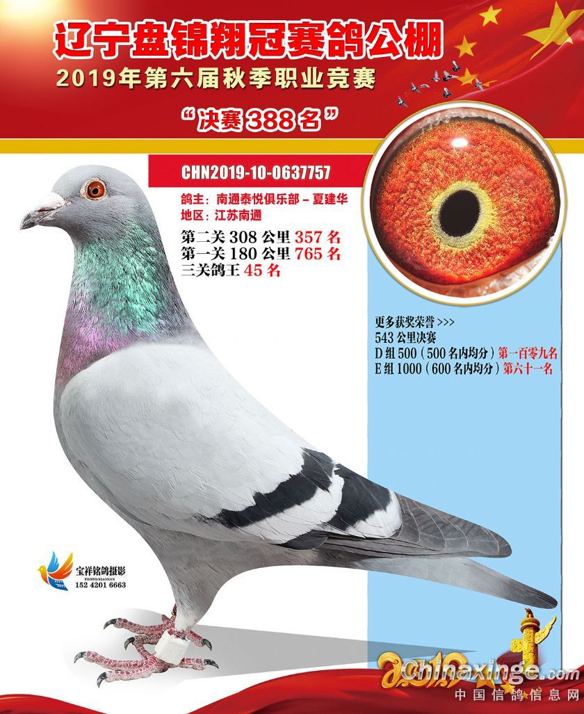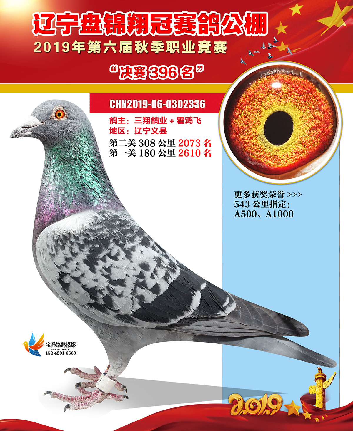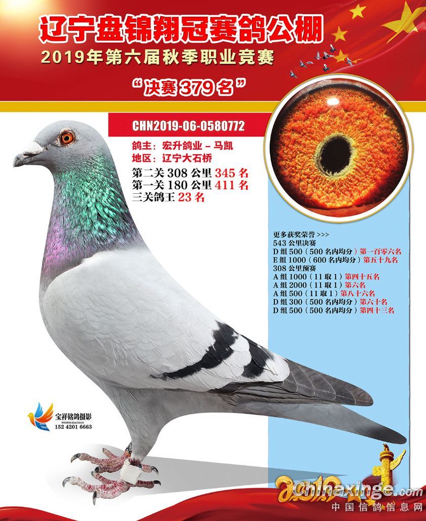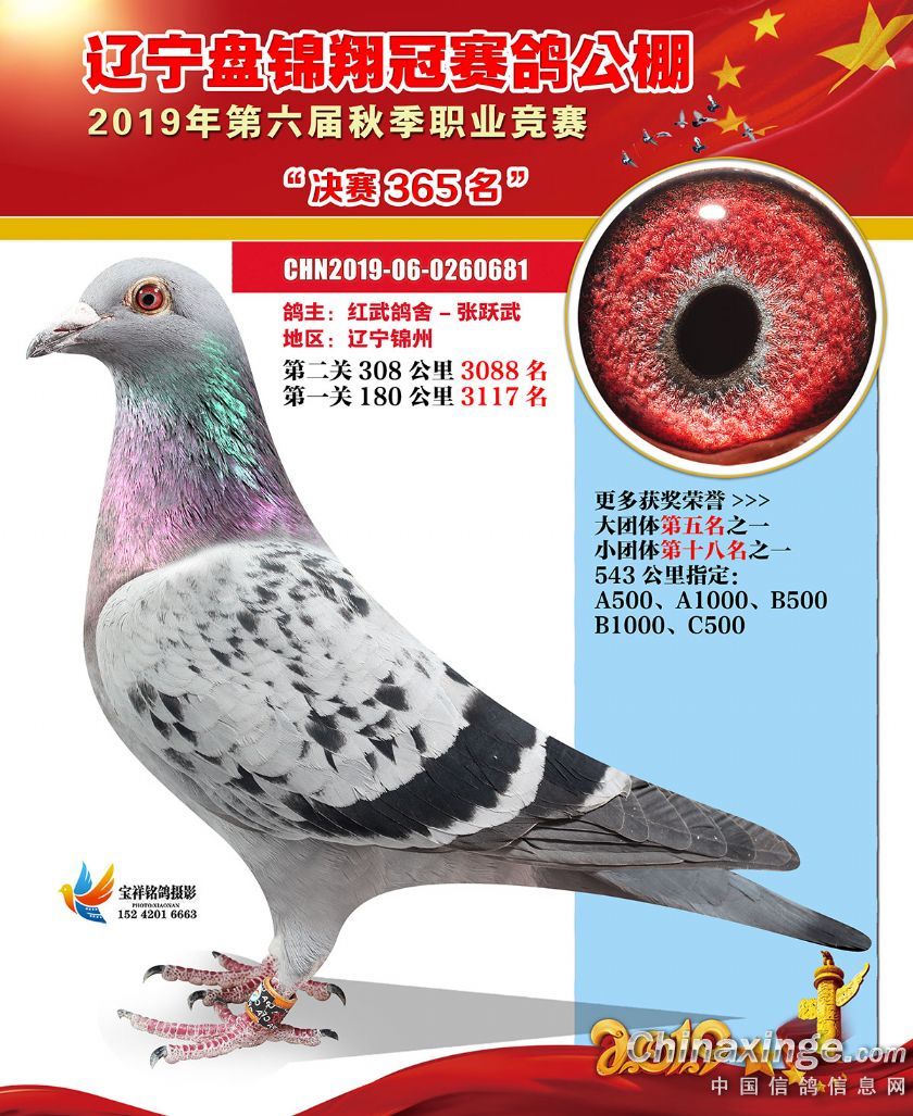 辽宁翔冠公棚2019年决赛获奖鸽展示(351-400名)