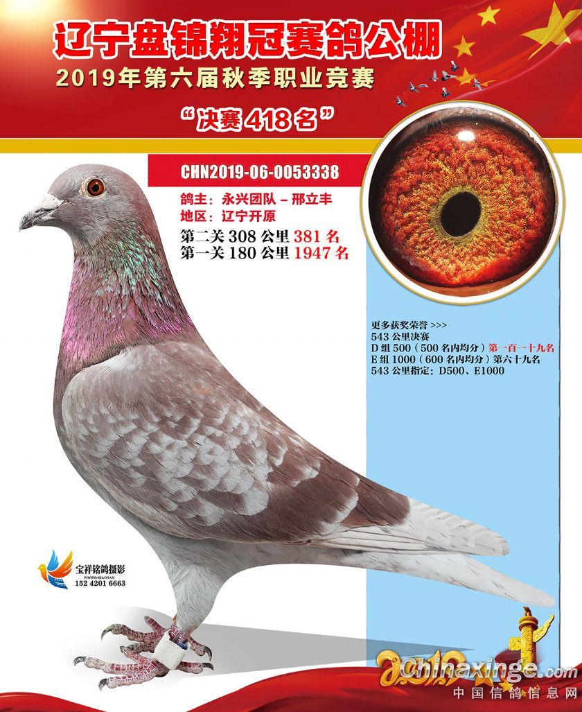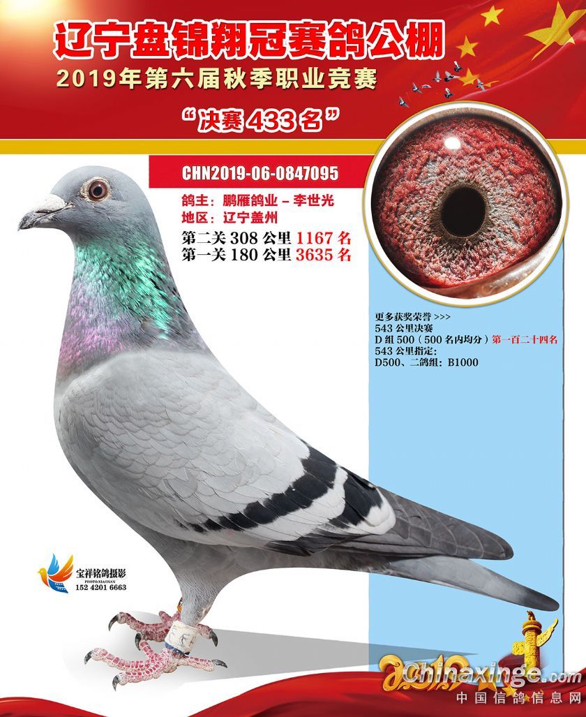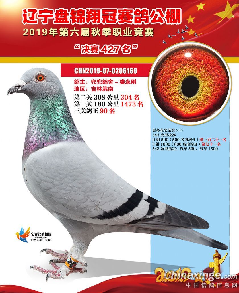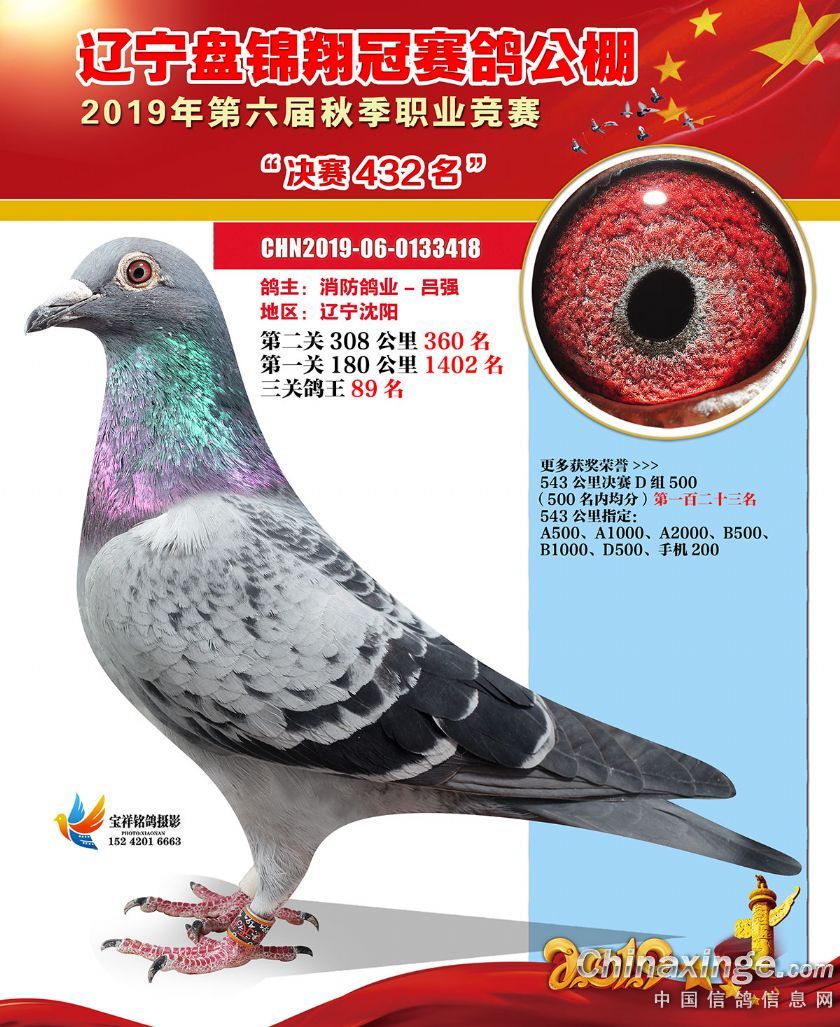 辽宁翔冠公棚2019年决赛获奖鸽展示(401-450名)