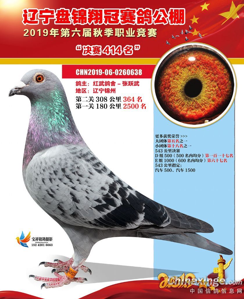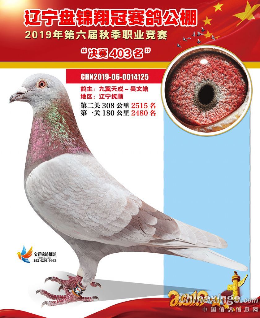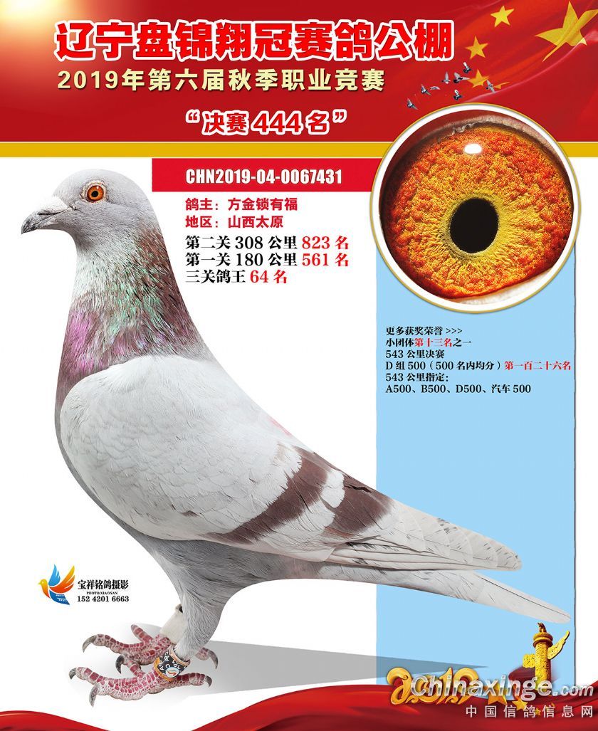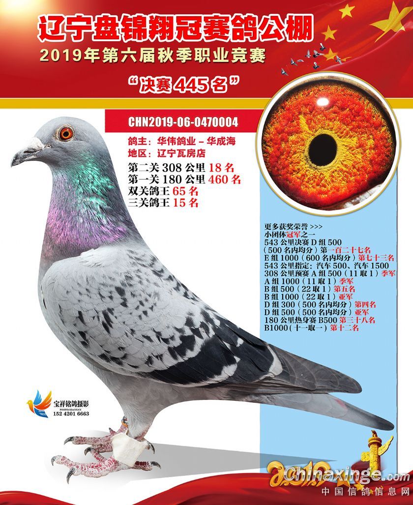 辽宁翔冠公棚2019年决赛获奖鸽展示(401-450名)