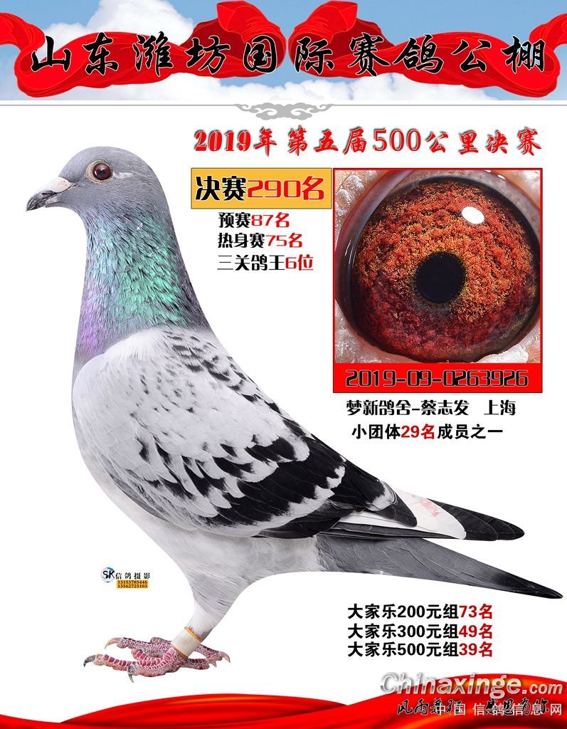 山东潍坊国际赛鸽公棚271-300名获奖鸽欣赏