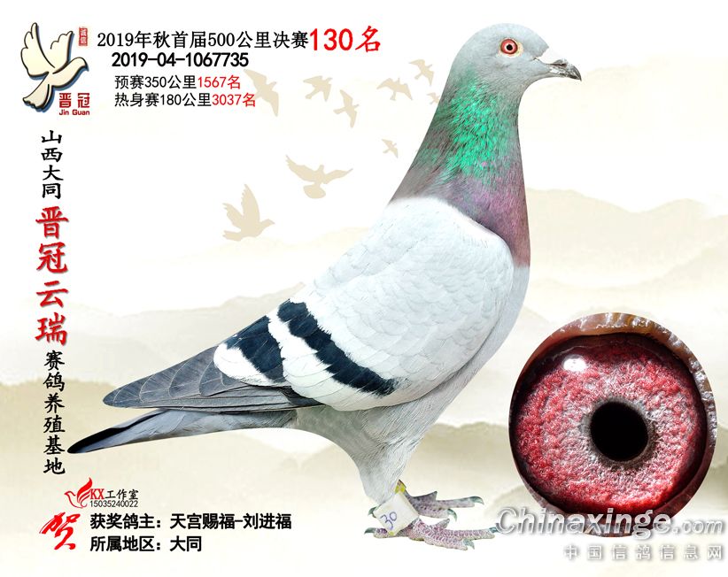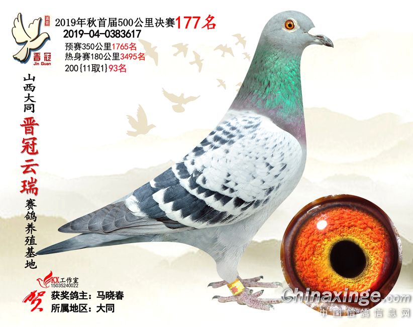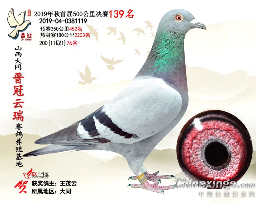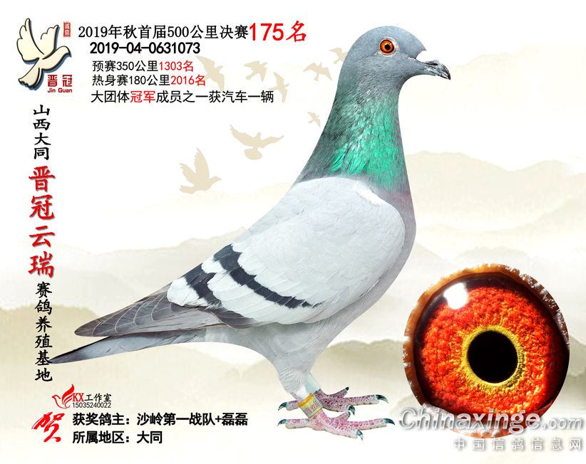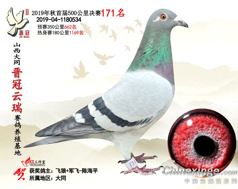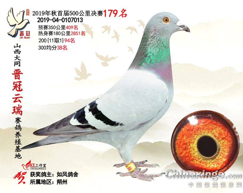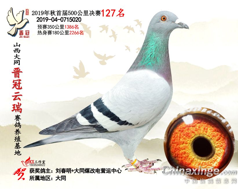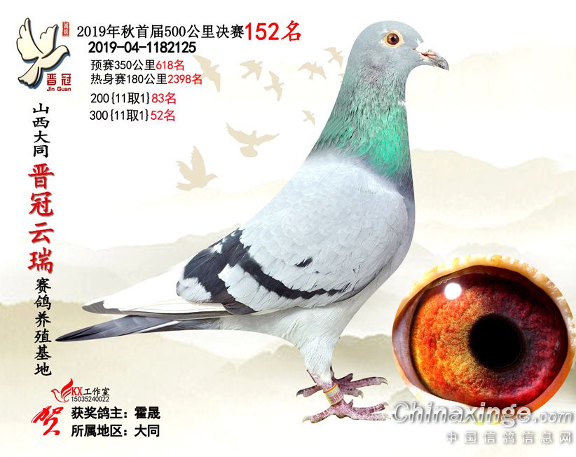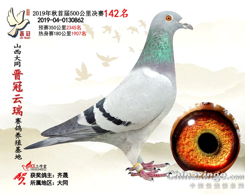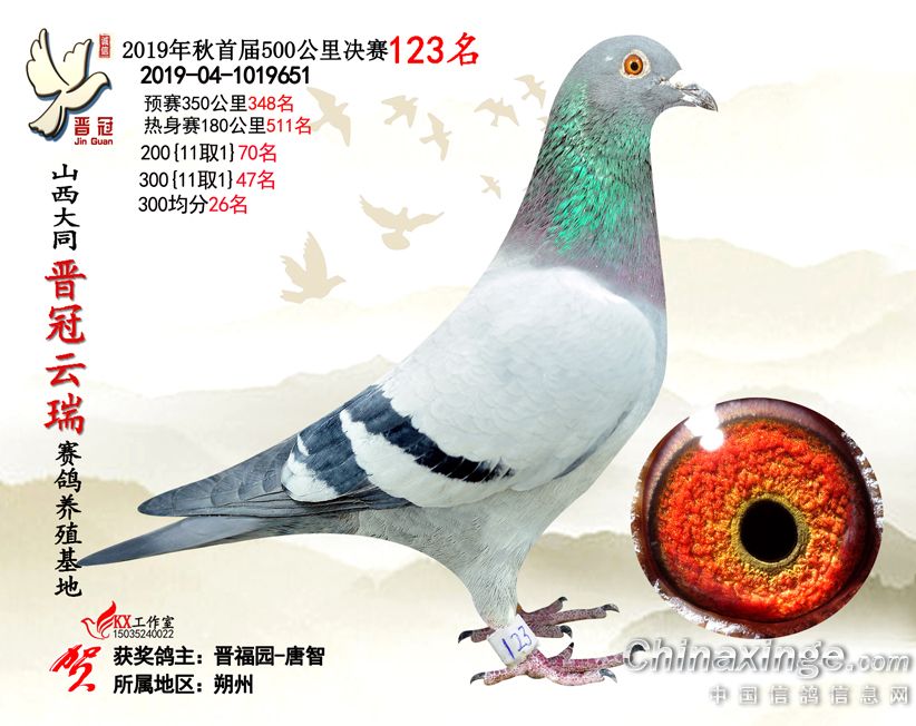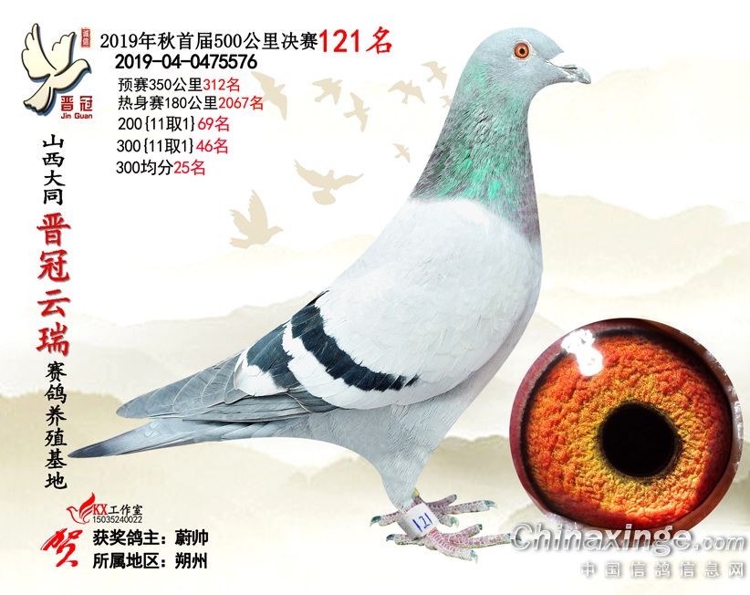 作品说明: 2019年晋冠云瑞赛鸽养殖基地决赛成绩鸽照片