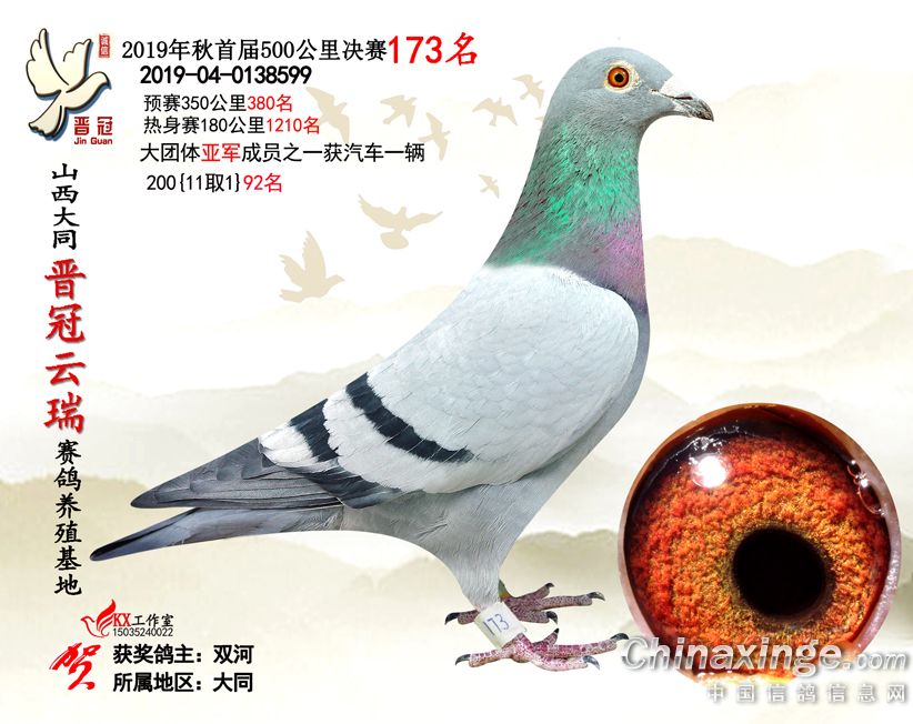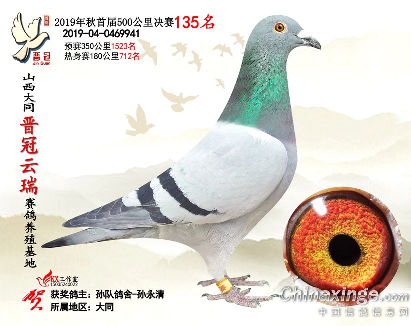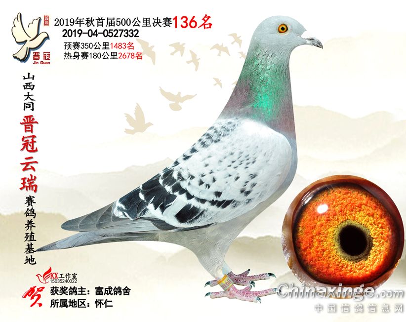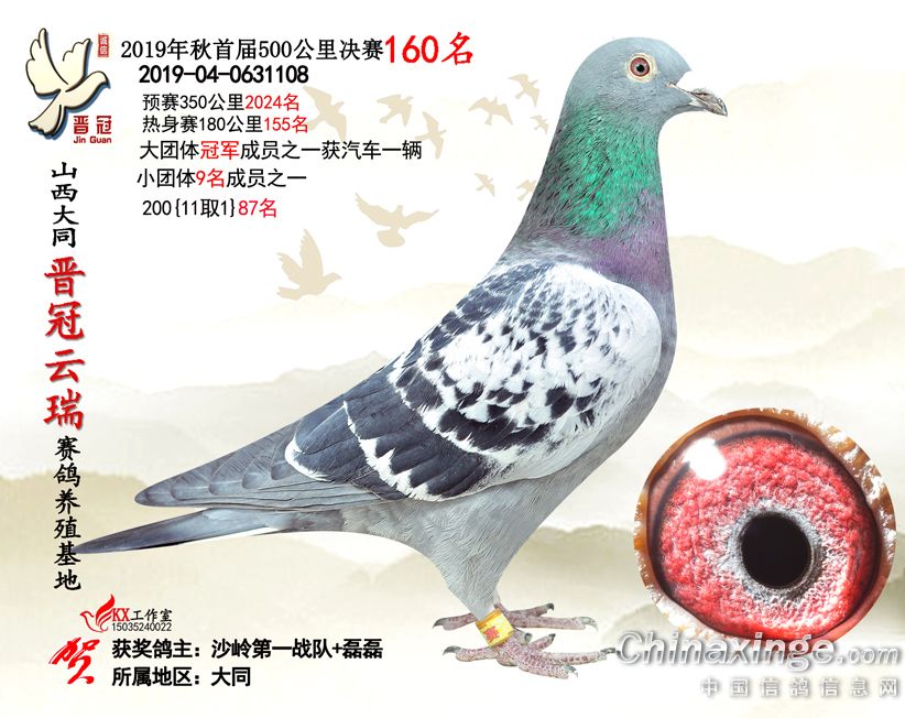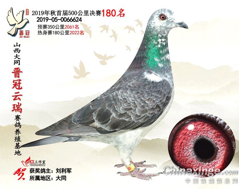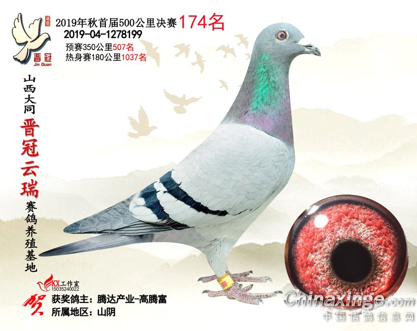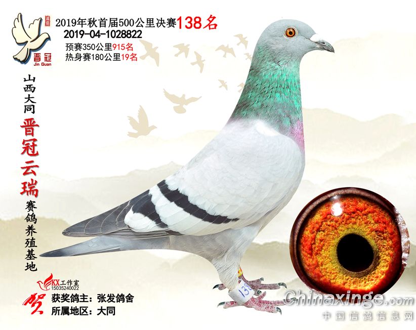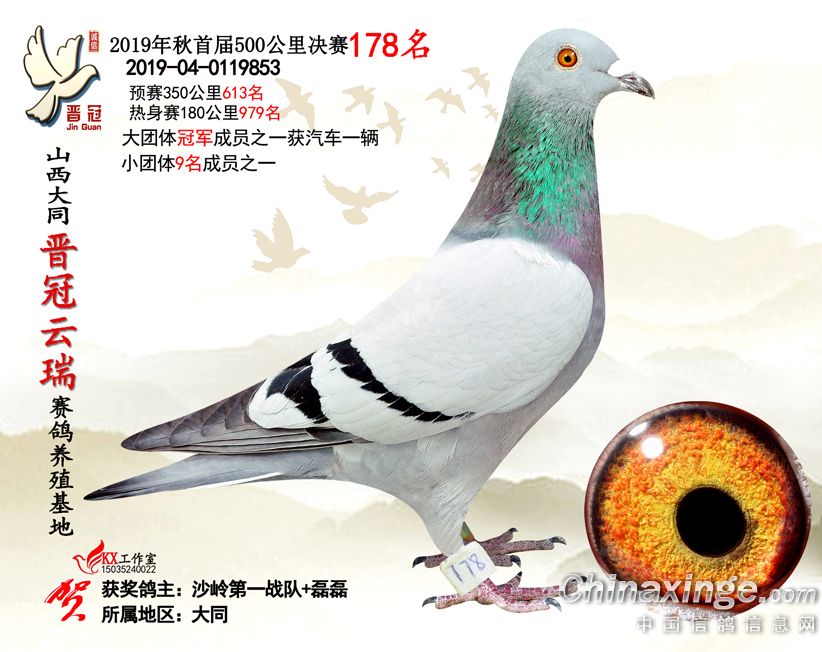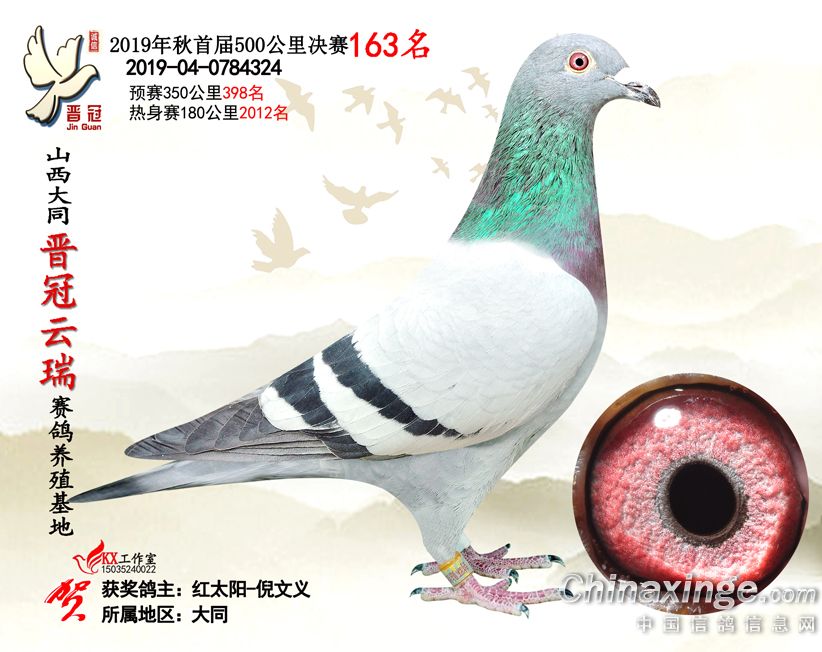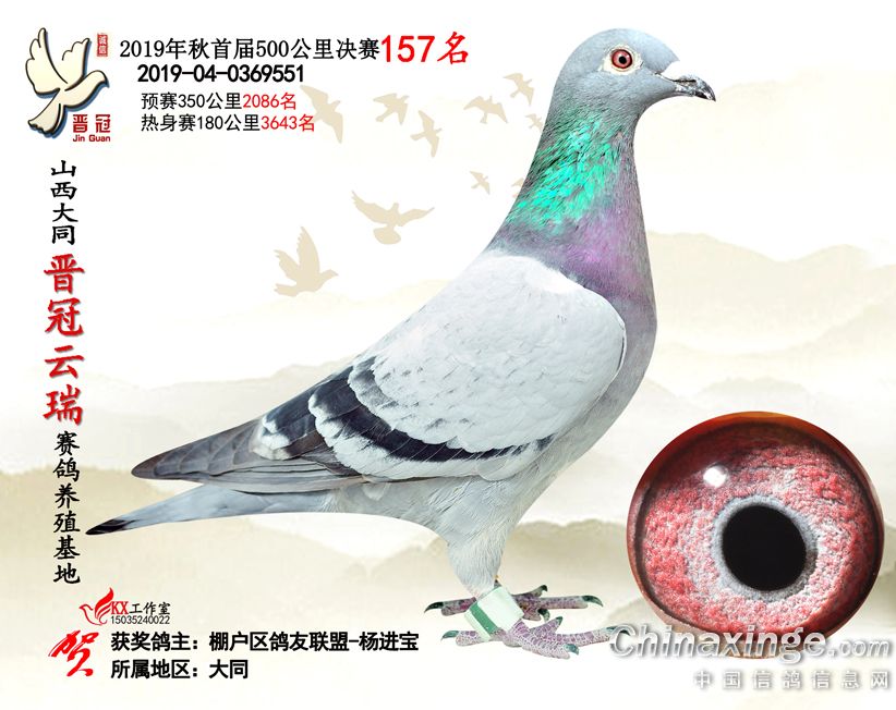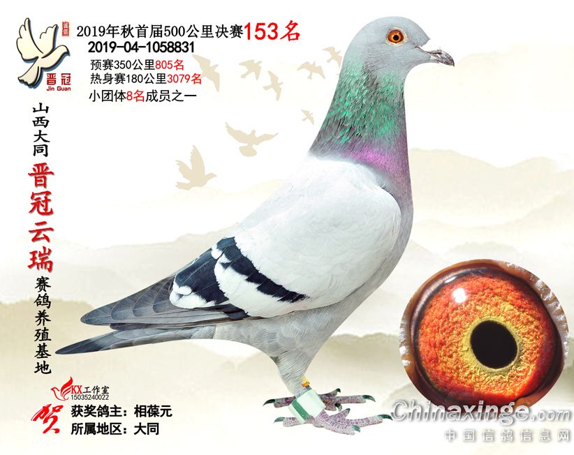 作品说明: 2019年晋冠云瑞赛鸽养殖基地决赛成绩鸽照片