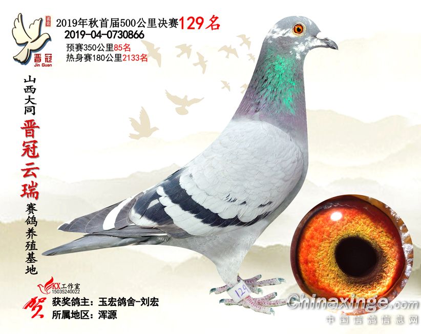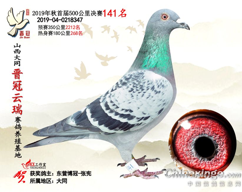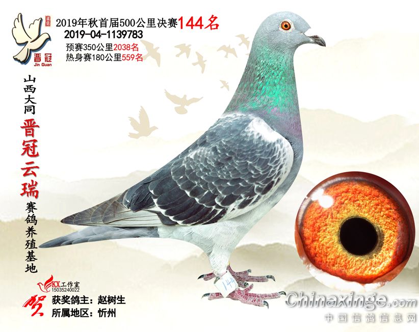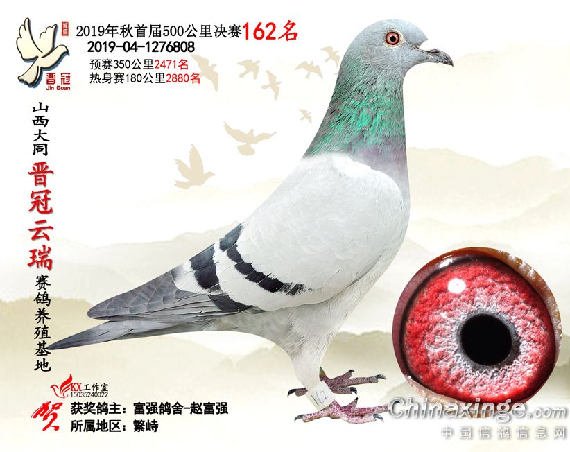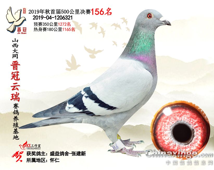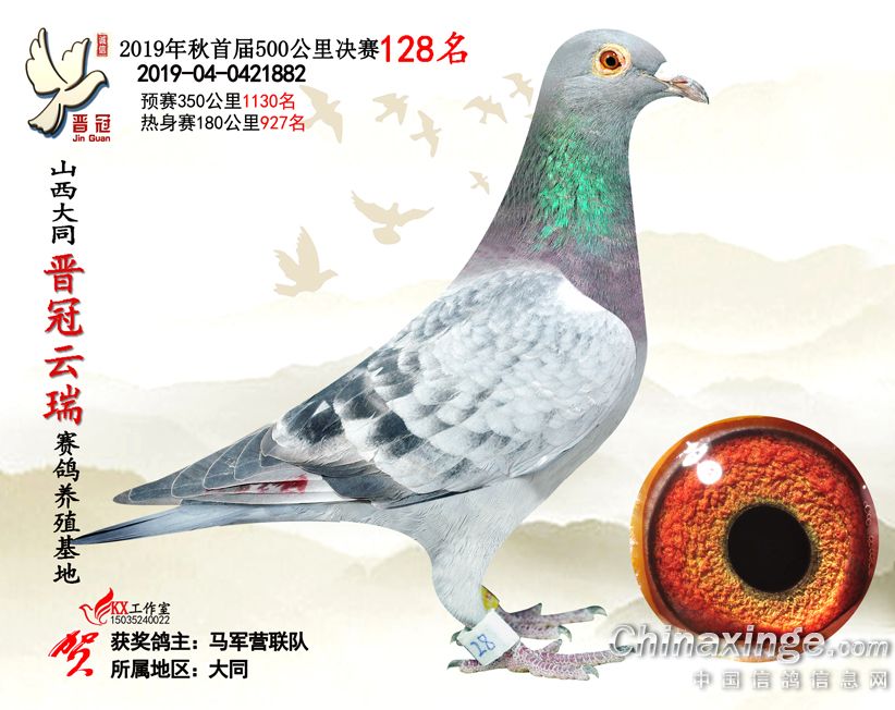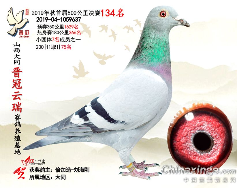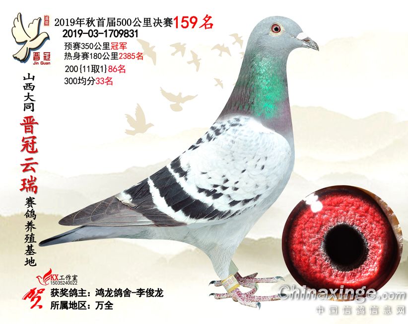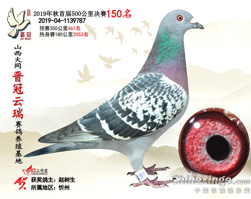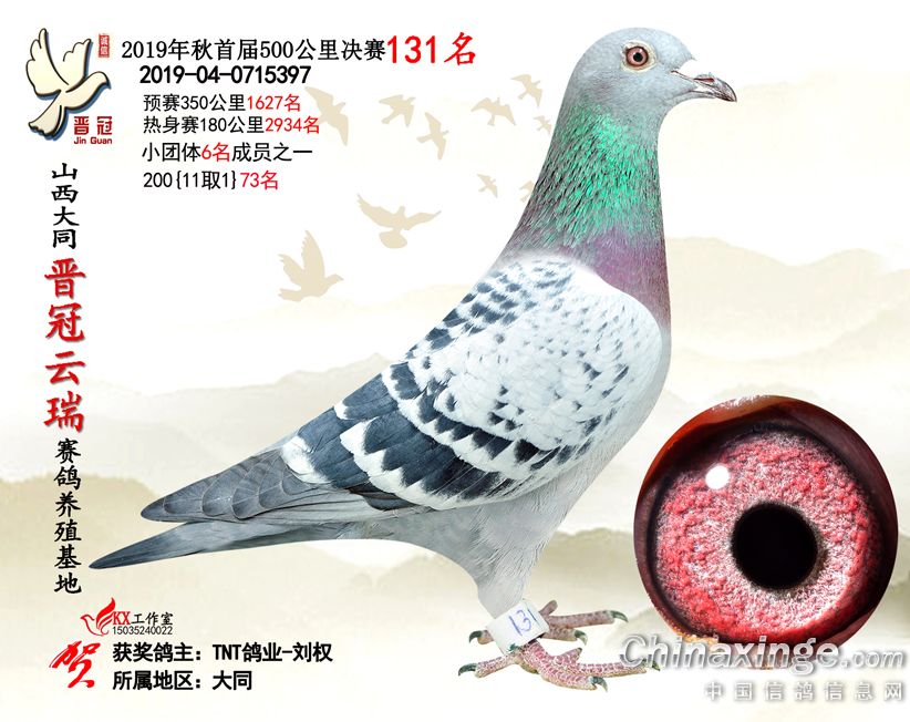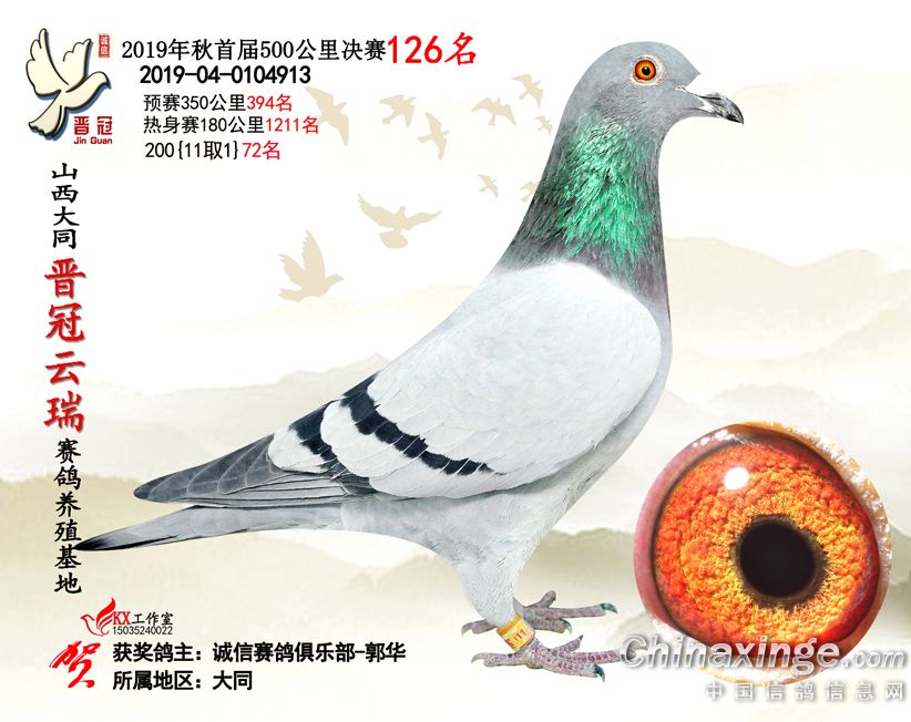 作品说明: 2019年晋冠云瑞赛鸽养殖基地决赛成绩鸽照片