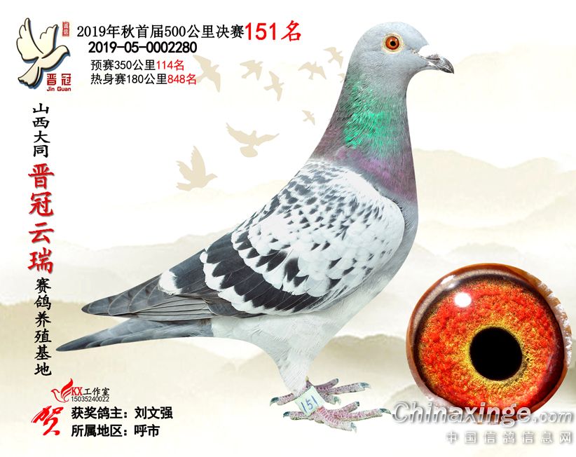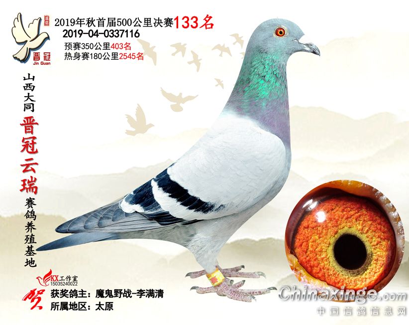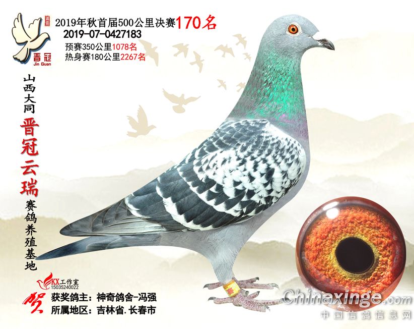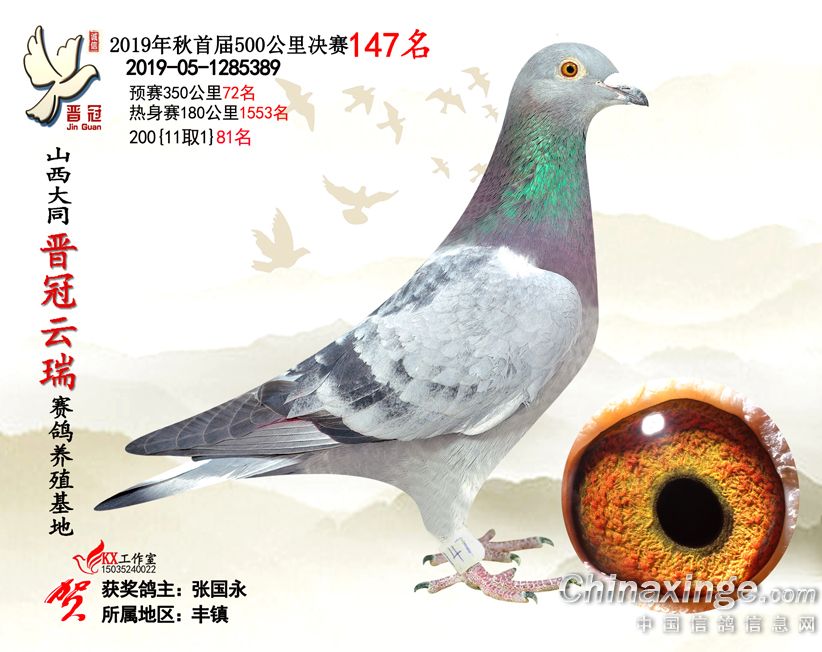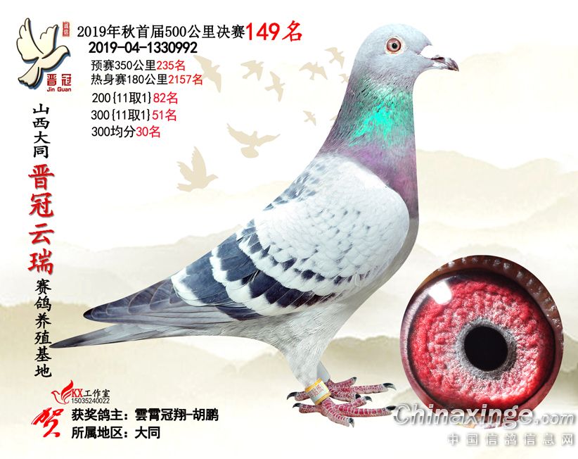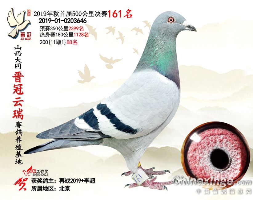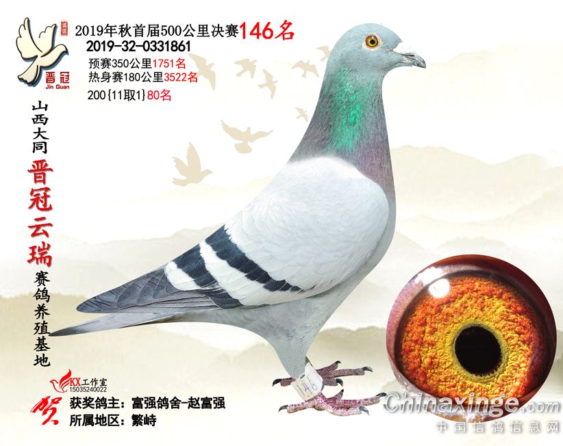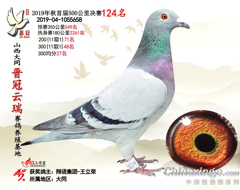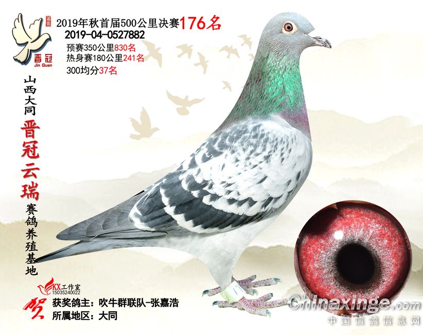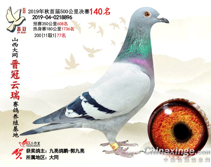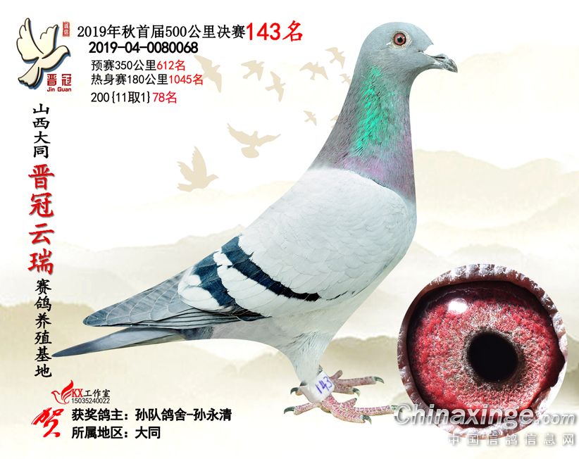 作品说明: 2019年晋冠云瑞赛鸽养殖基地决赛成绩鸽照片