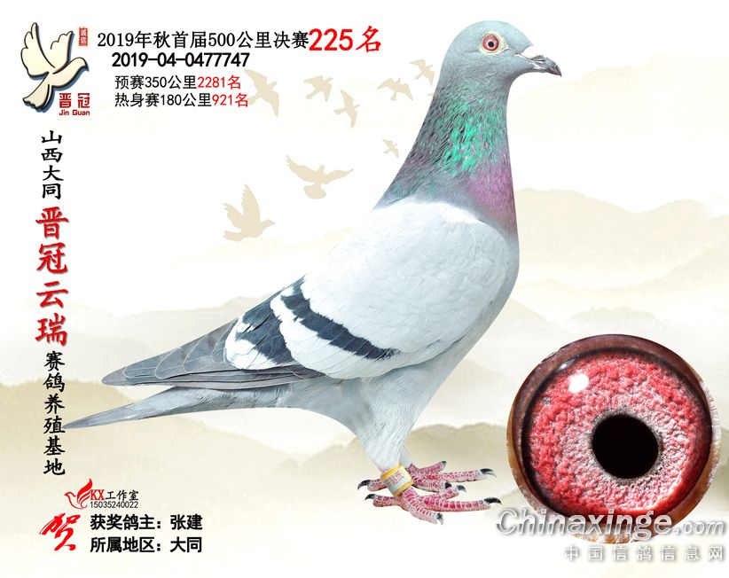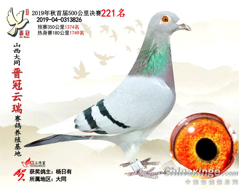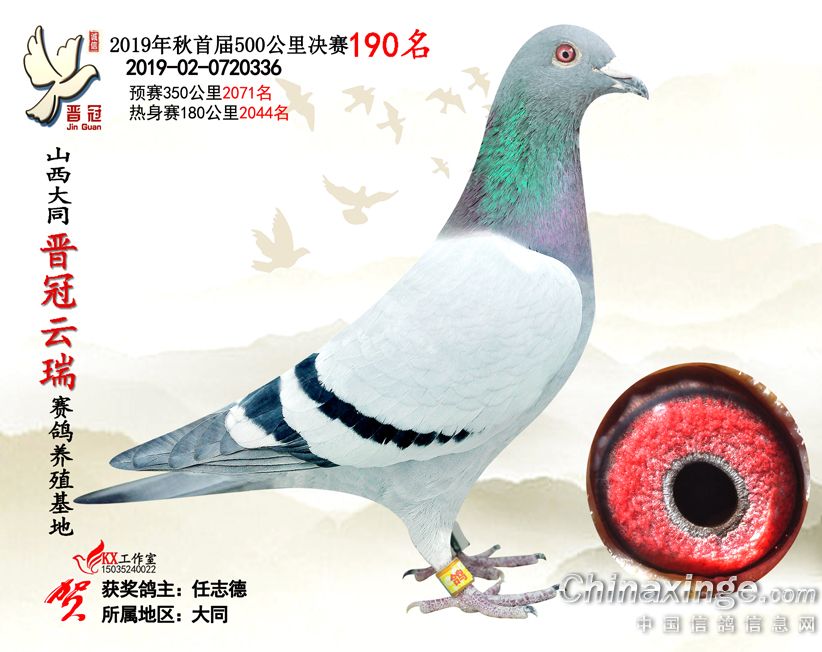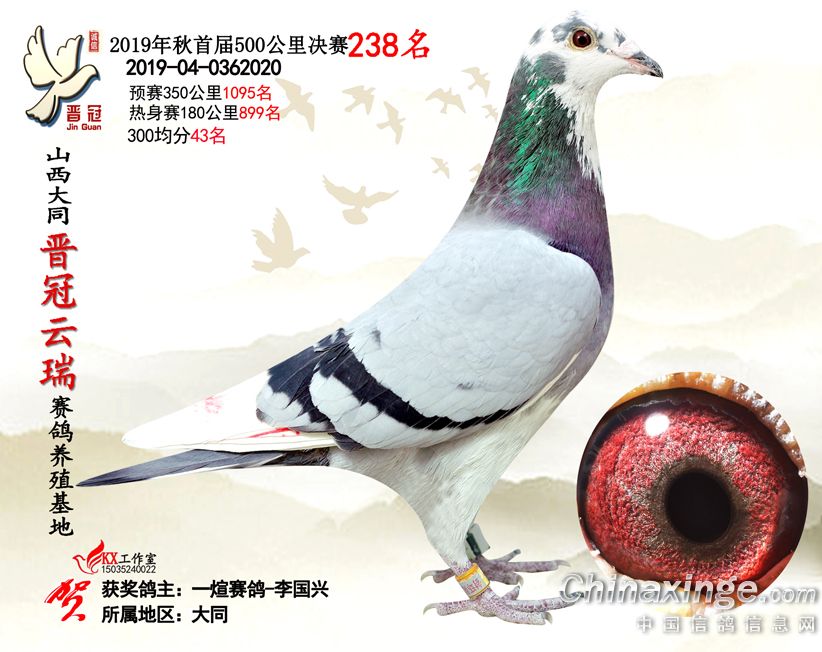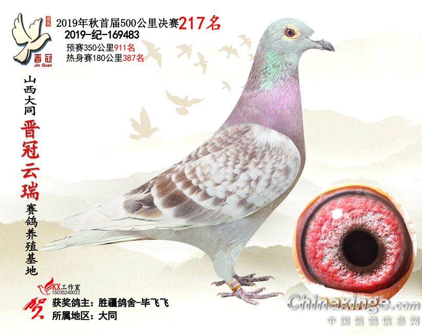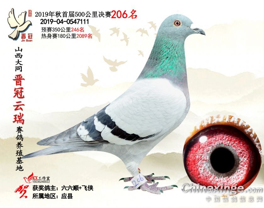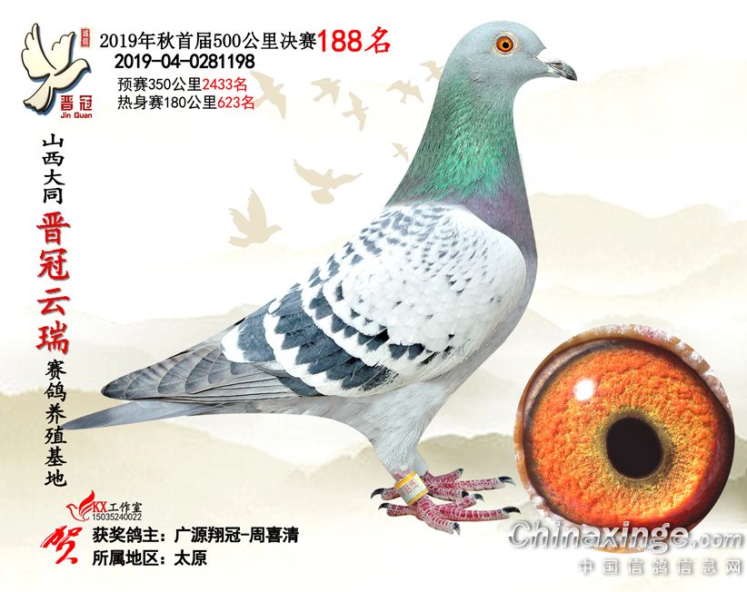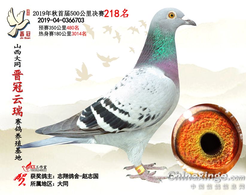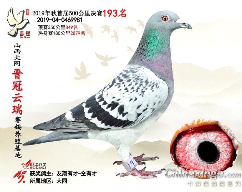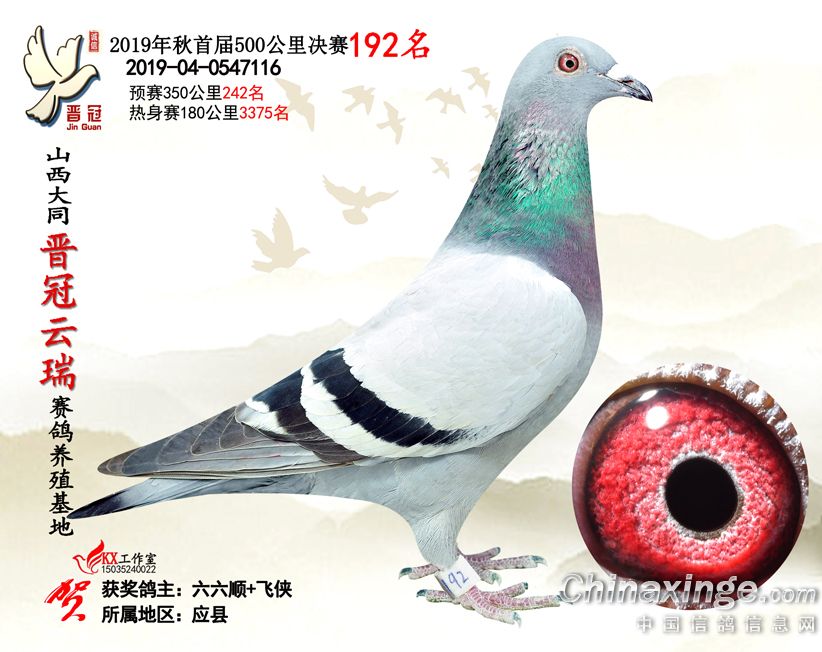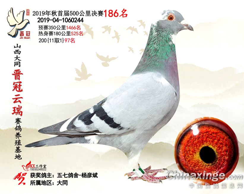 作品说明: 2019年晋冠云瑞赛鸽养殖基地决赛成绩鸽照片