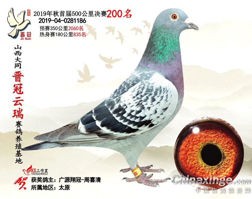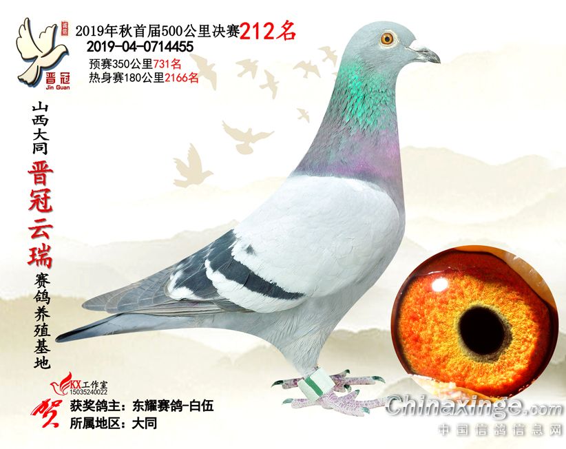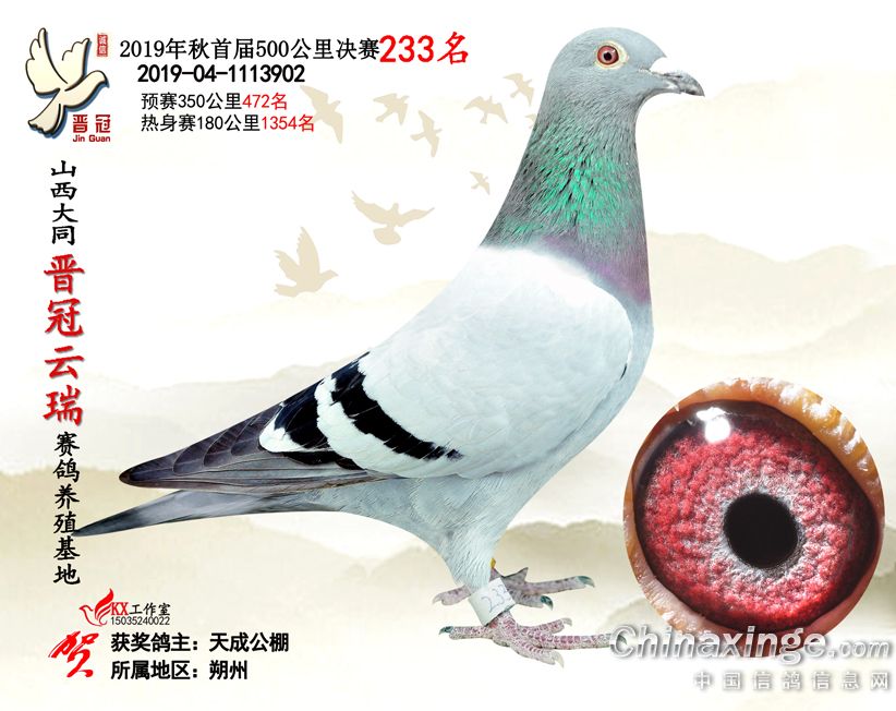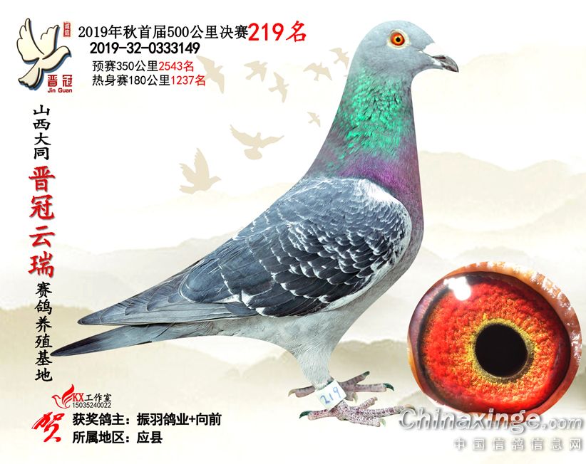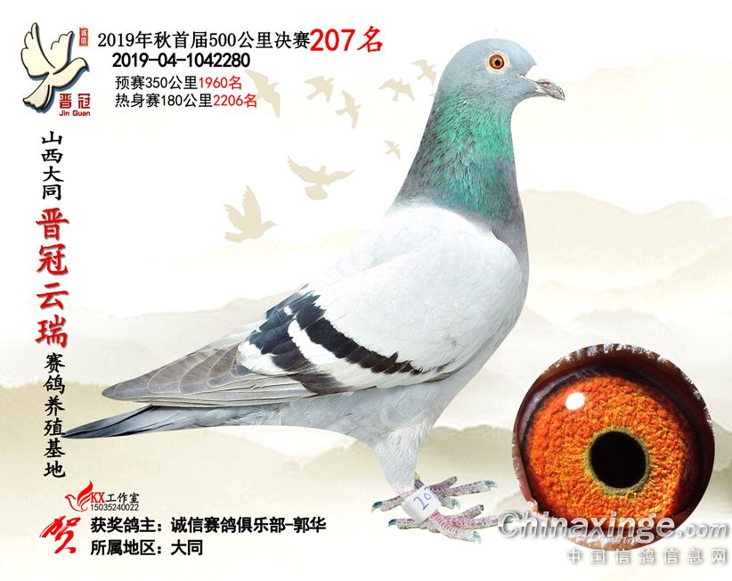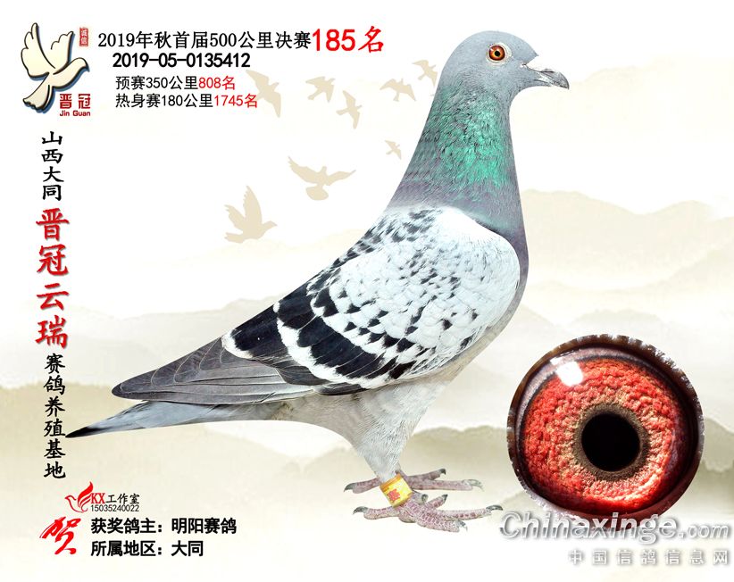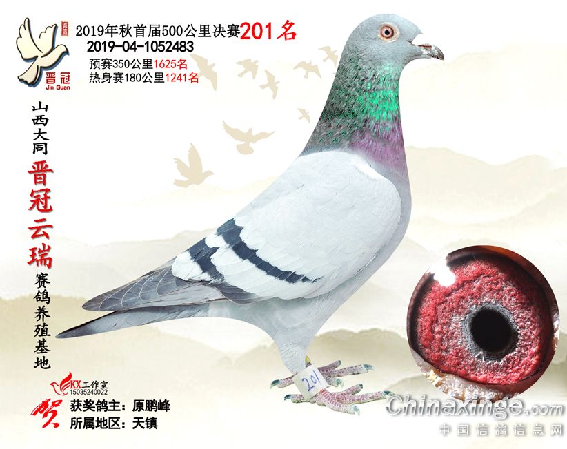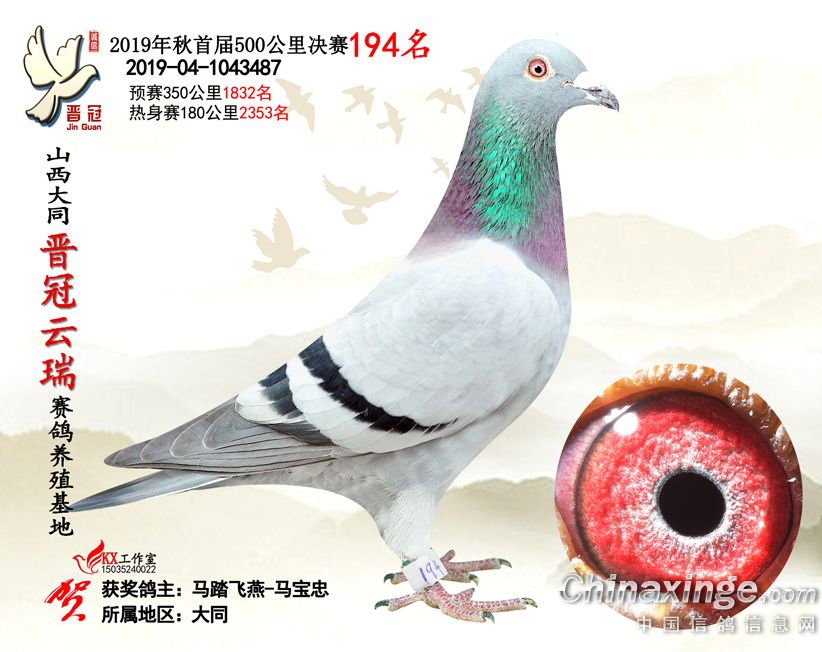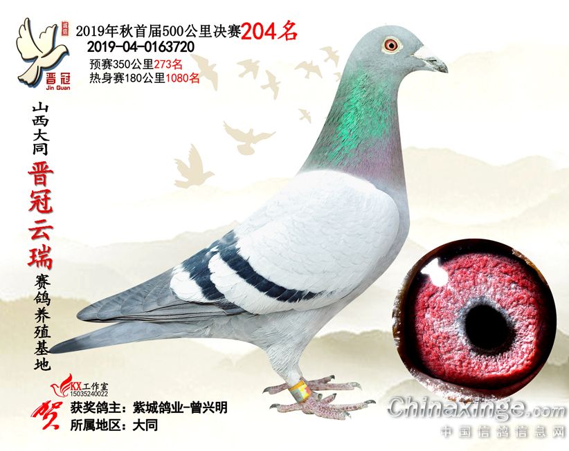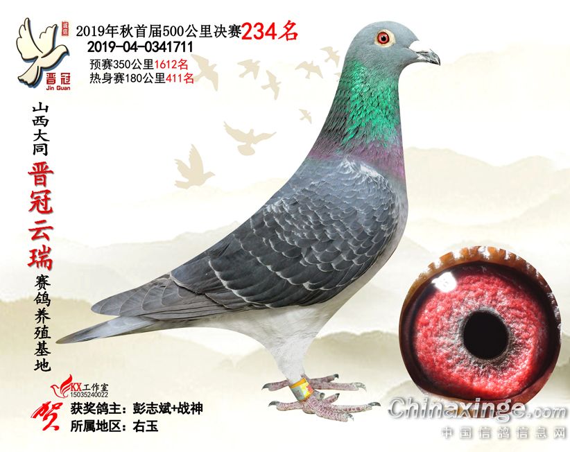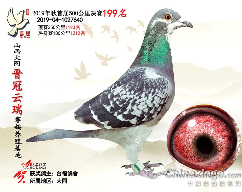 作品说明: 2019年晋冠云瑞赛鸽养殖基地决赛成绩鸽照片