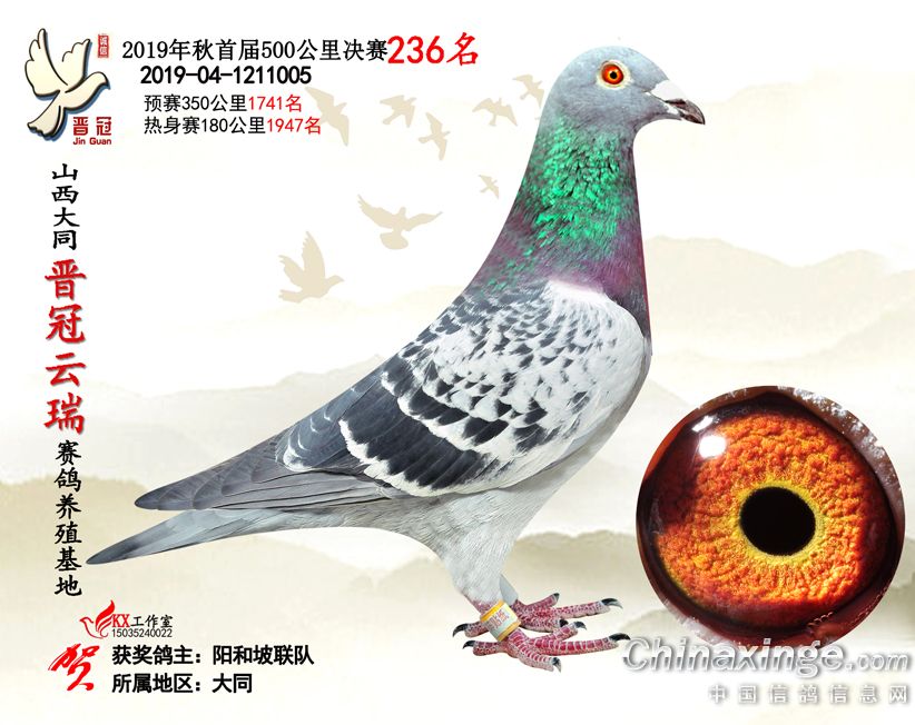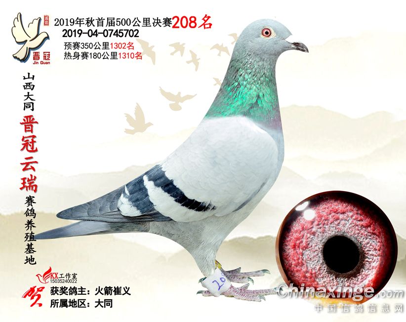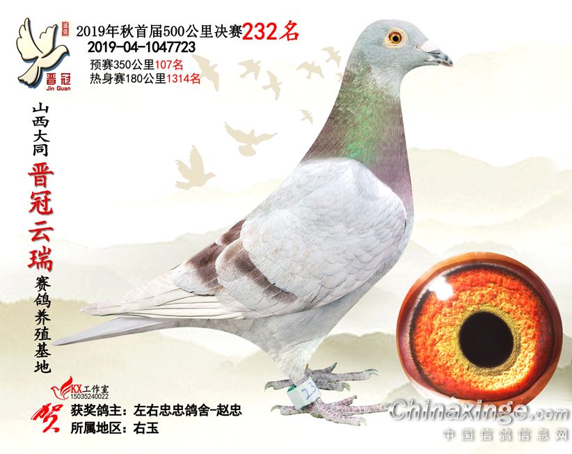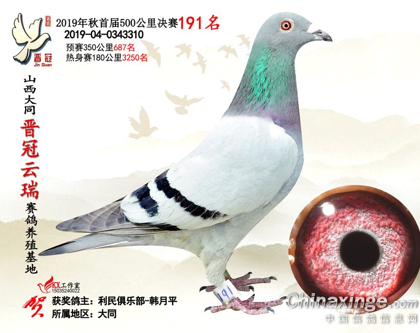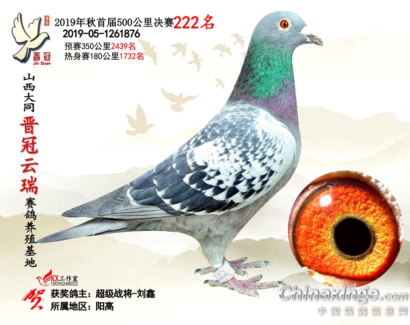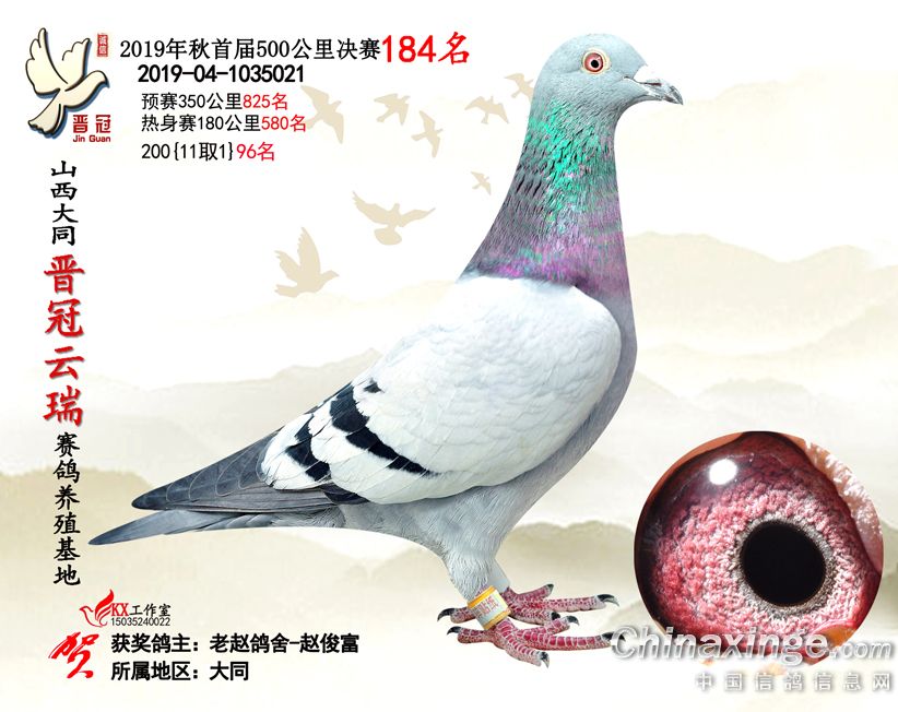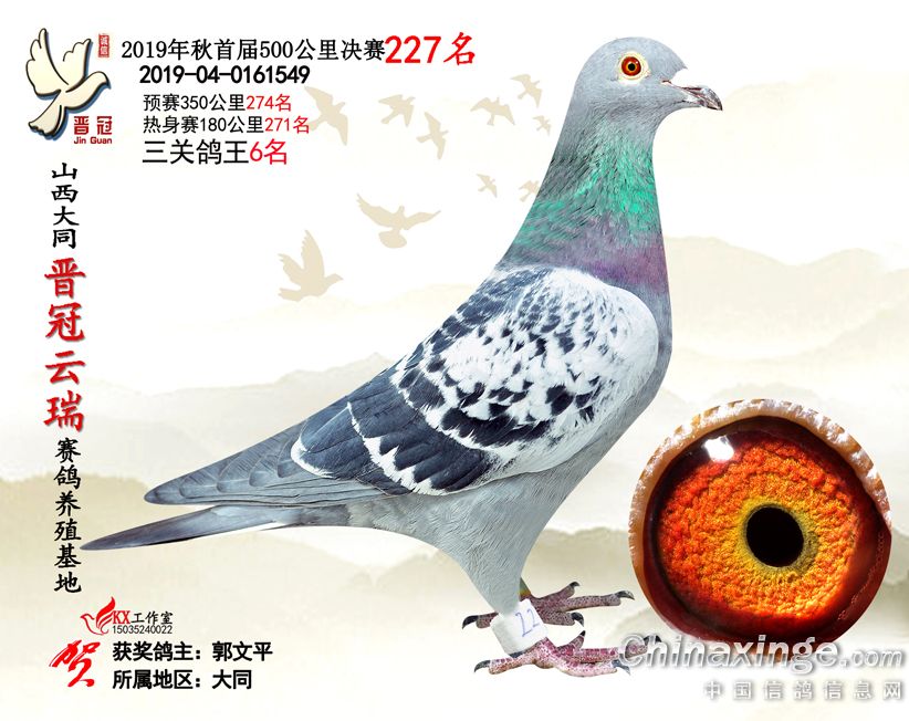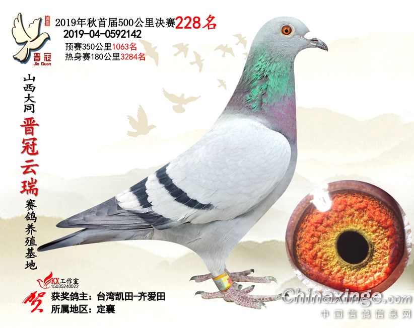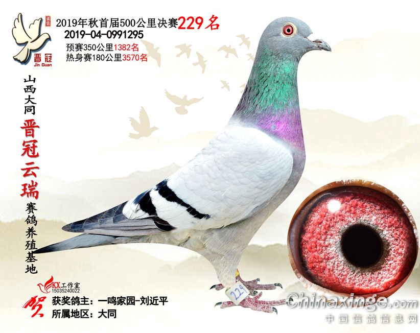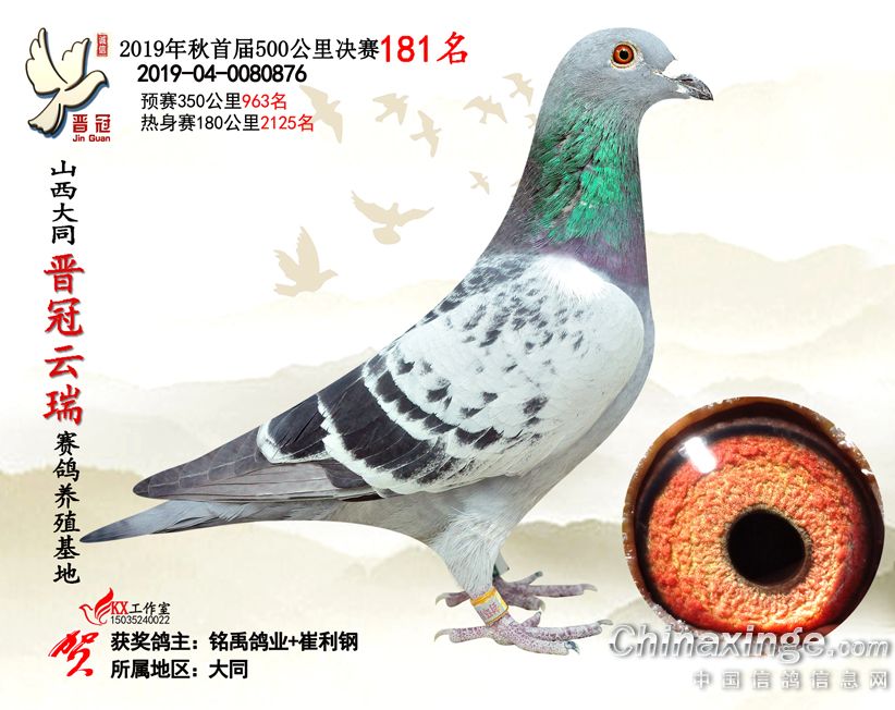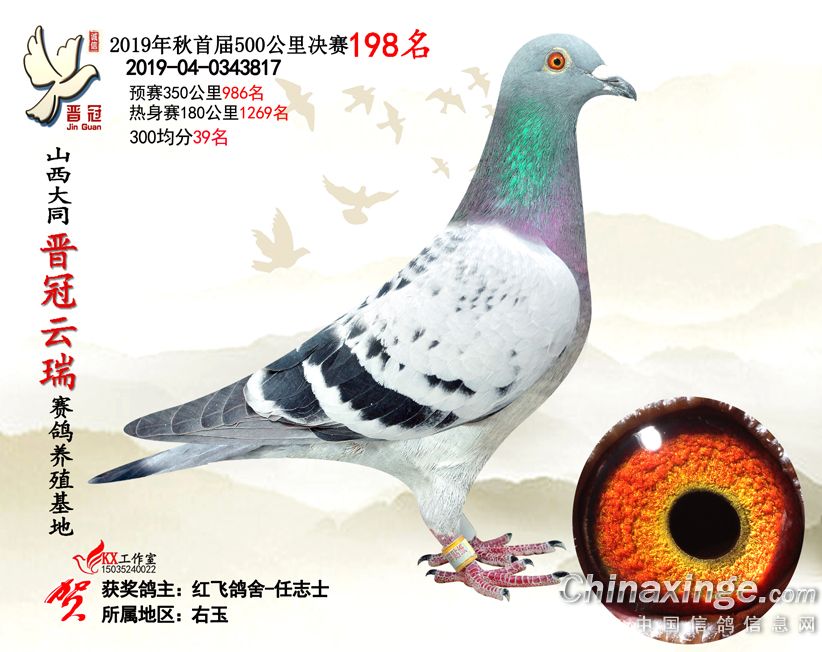 作品说明: 2019年晋冠云瑞赛鸽养殖基地决赛成绩鸽照片