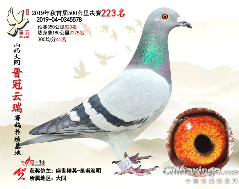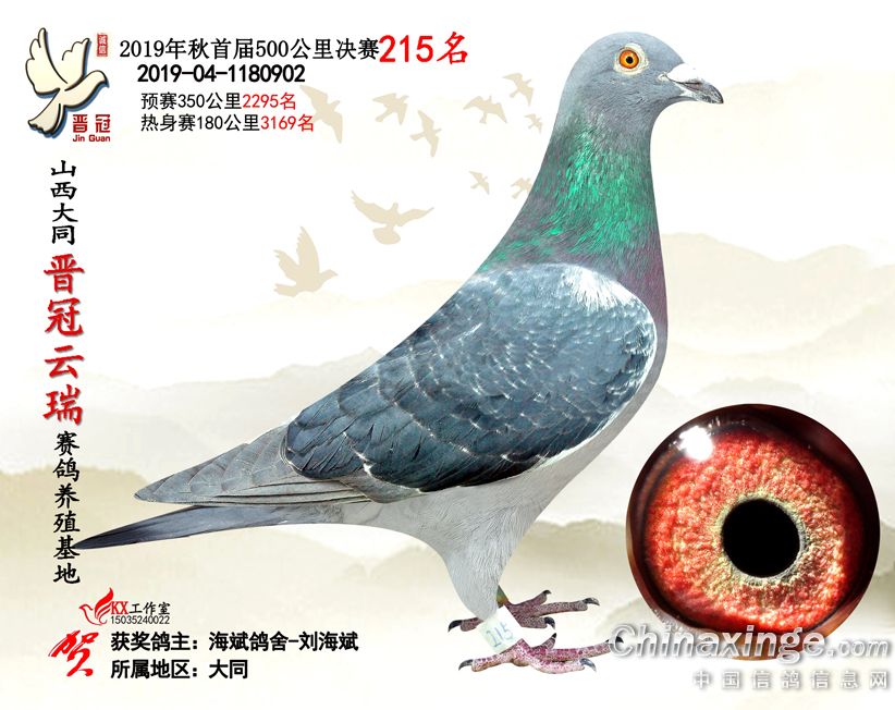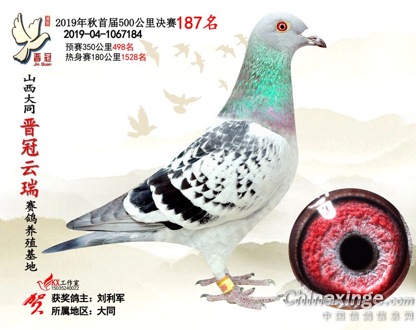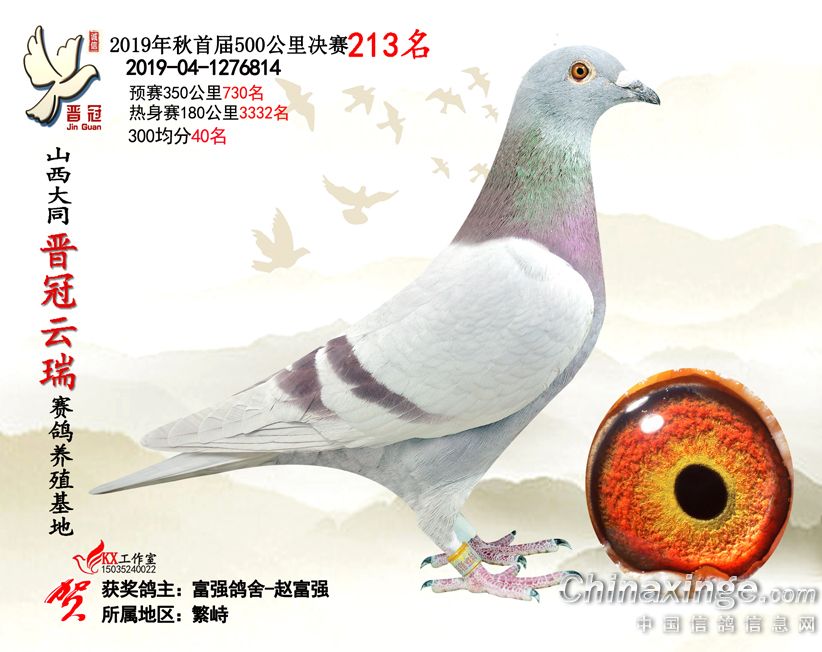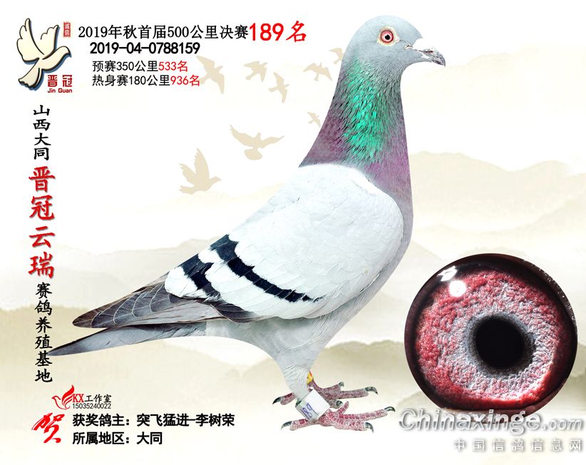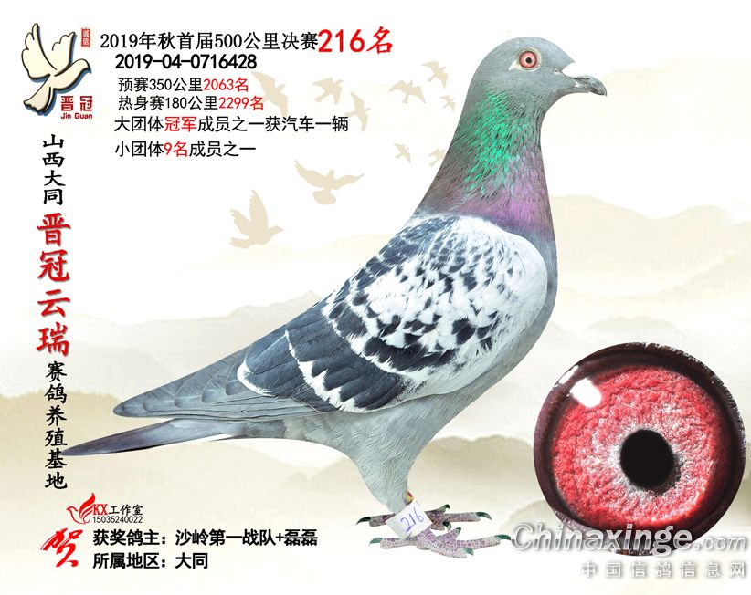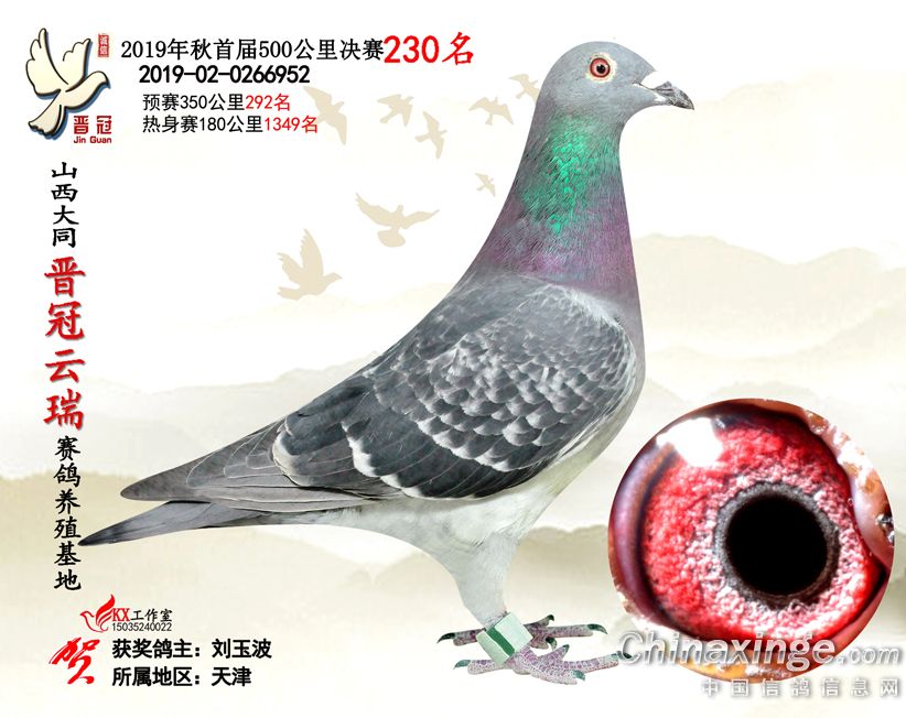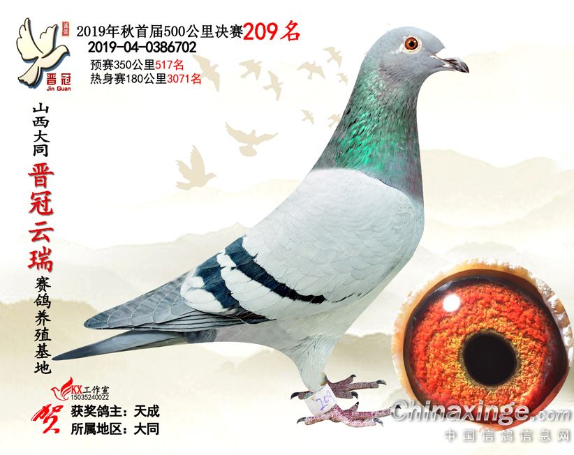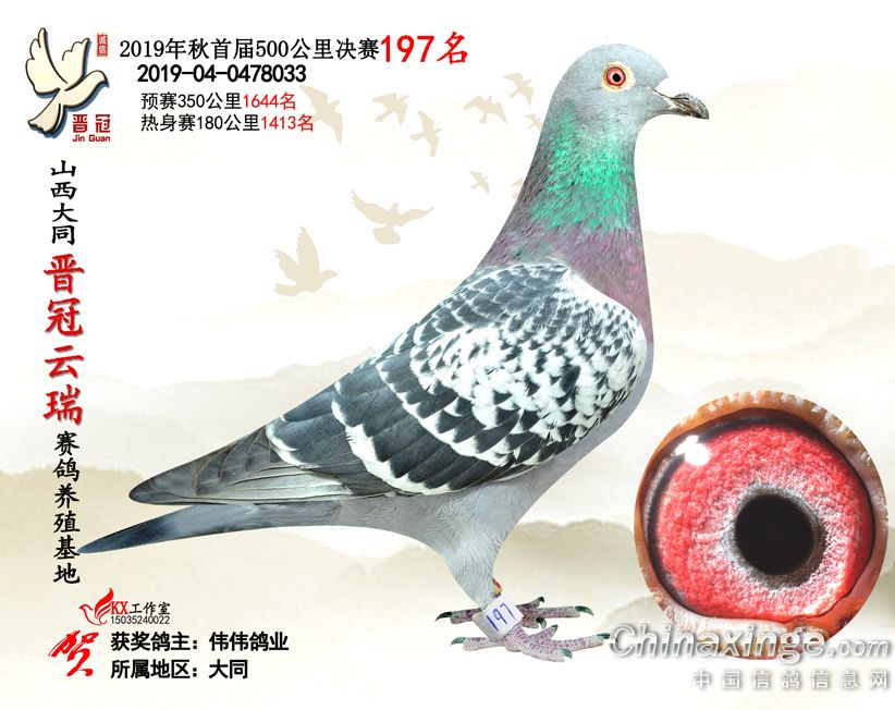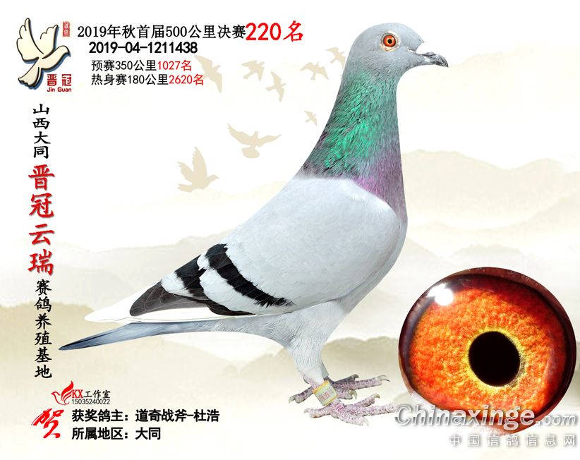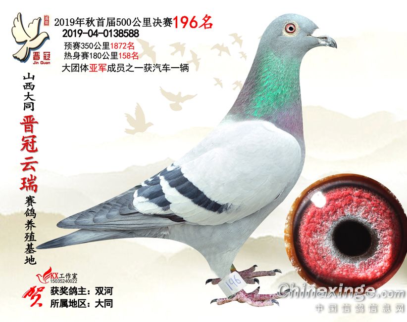 作品说明: 2019年晋冠云瑞赛鸽养殖基地决赛成绩鸽照片