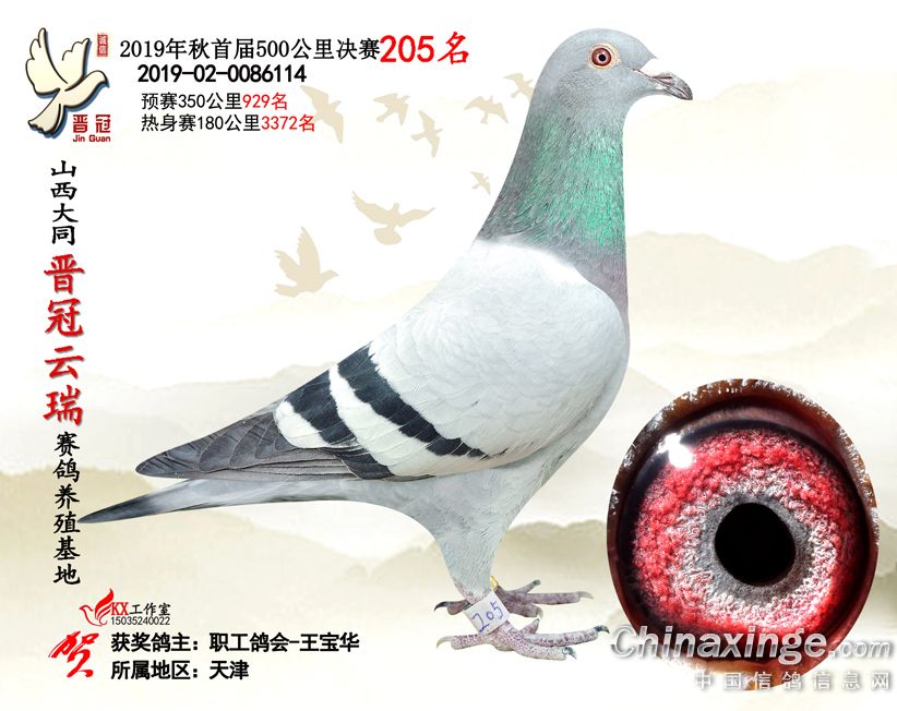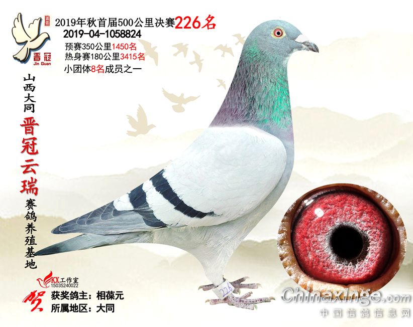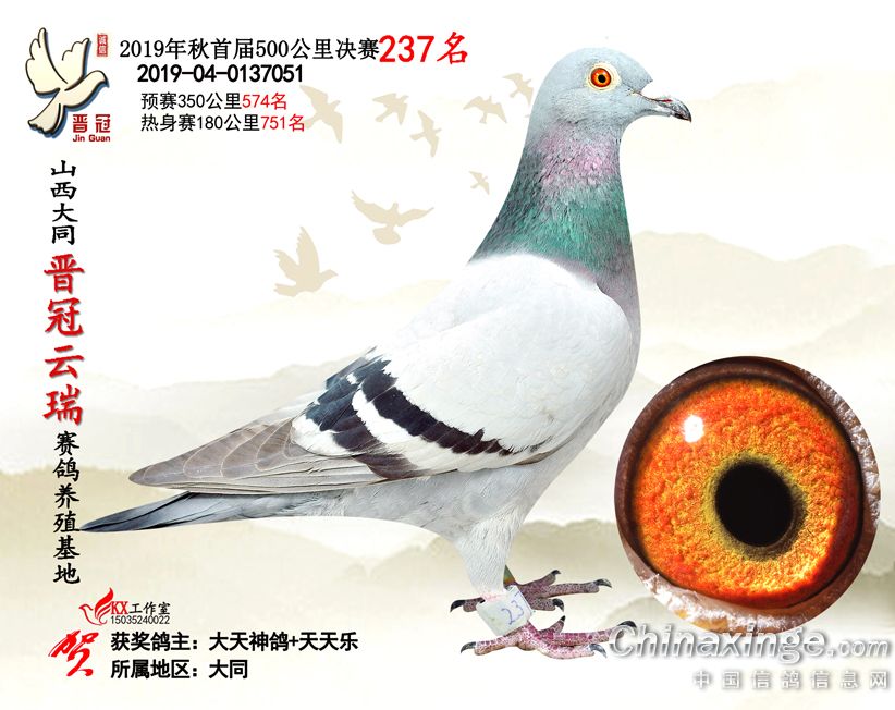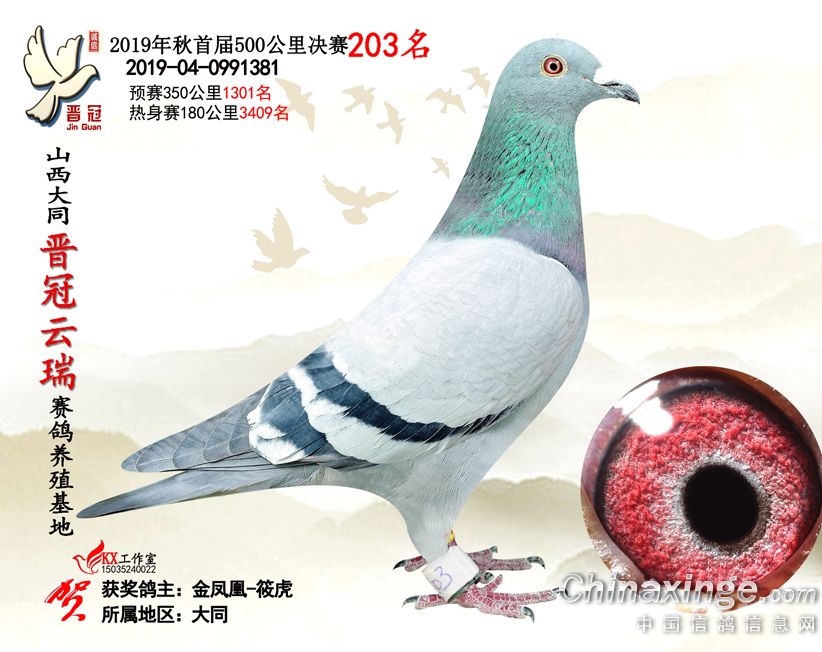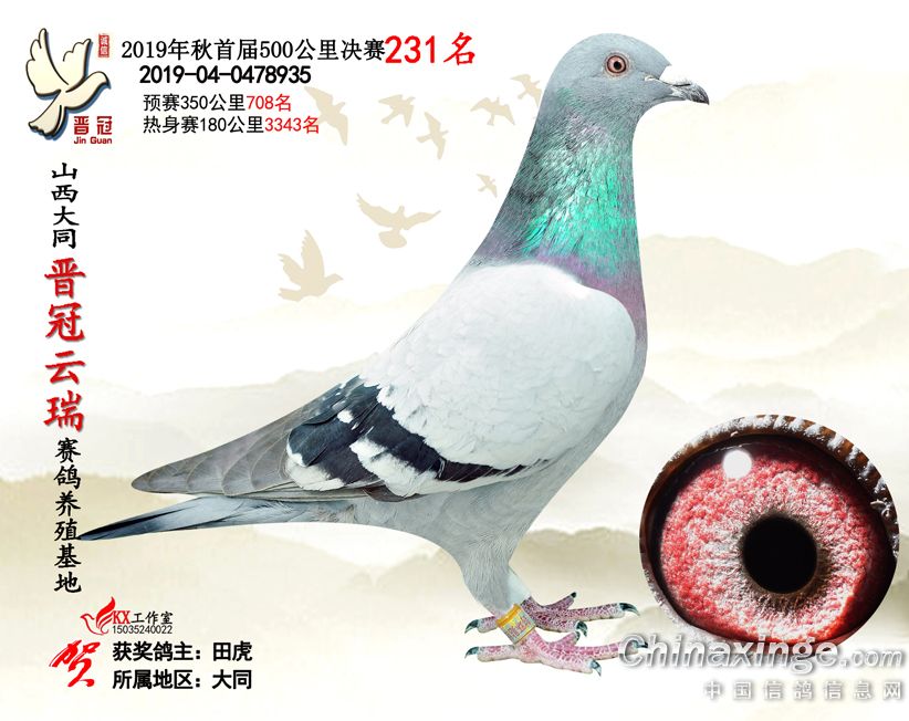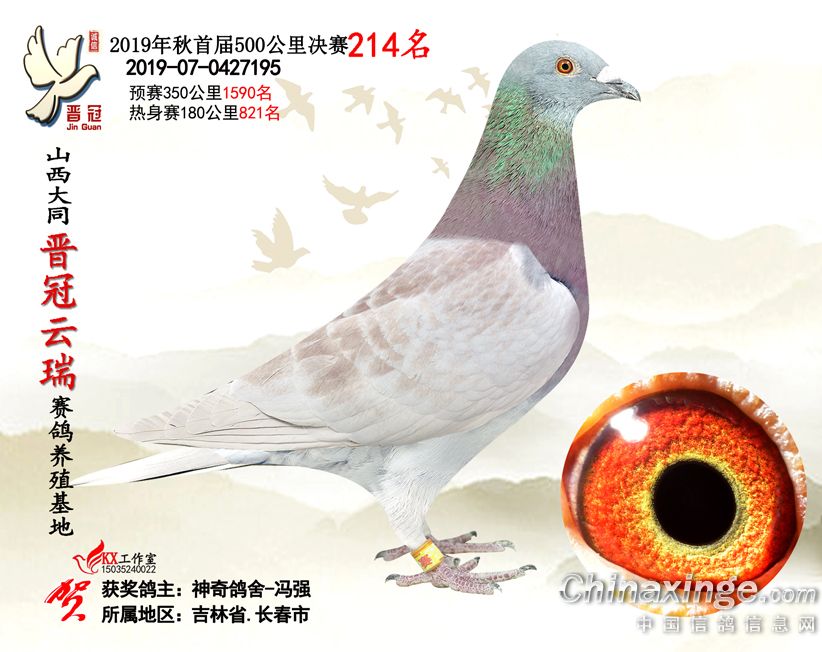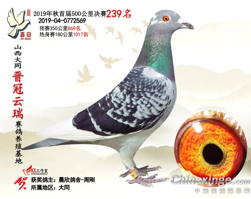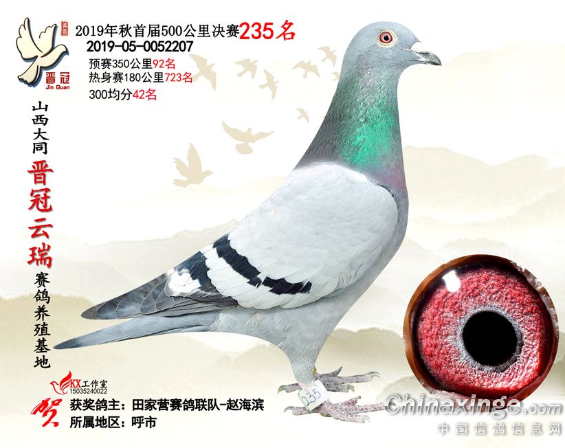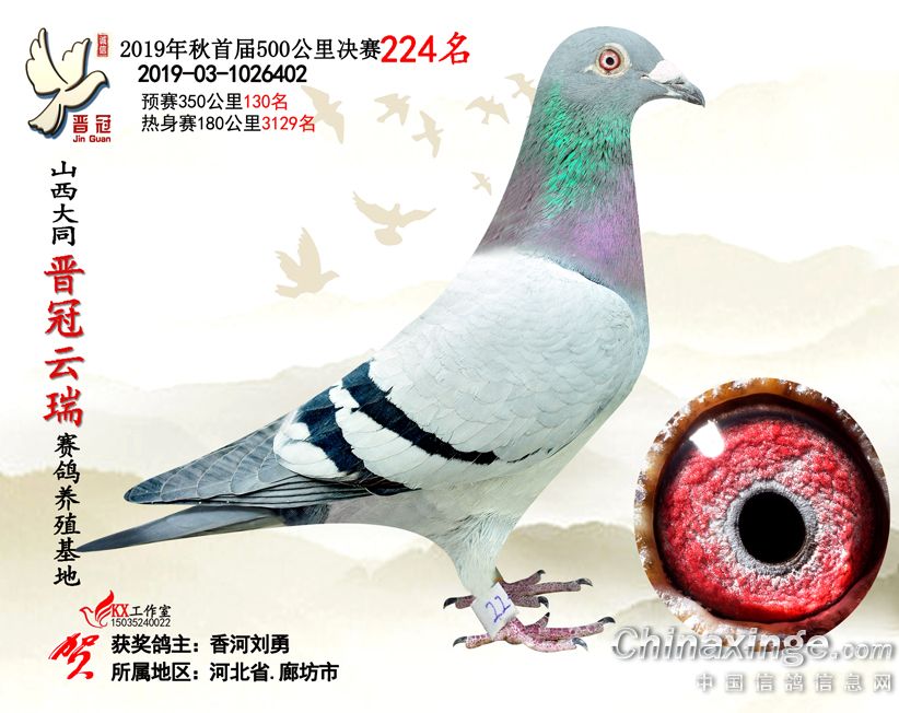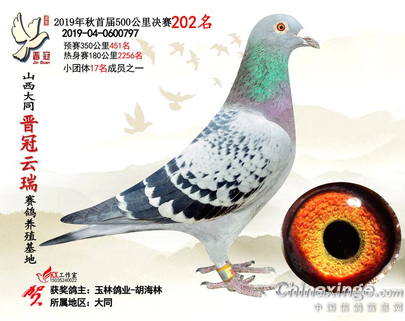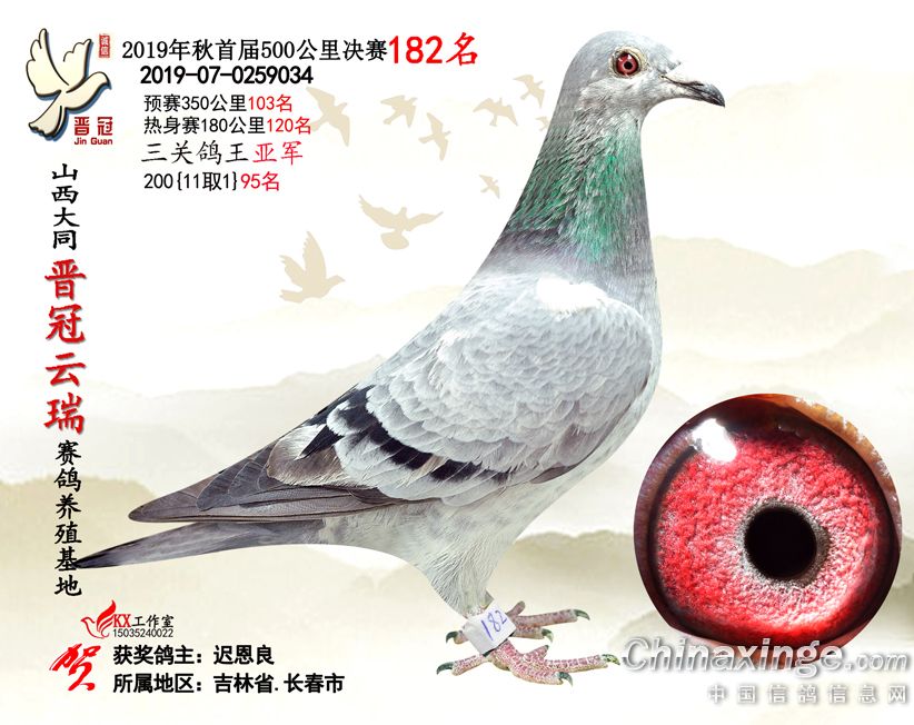 作品说明: 2019年晋冠云瑞赛鸽养殖基地决赛成绩鸽照片