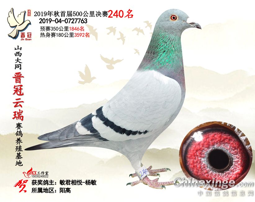 2019年晋冠云瑞公棚决赛成绩鸽照片181名-240名