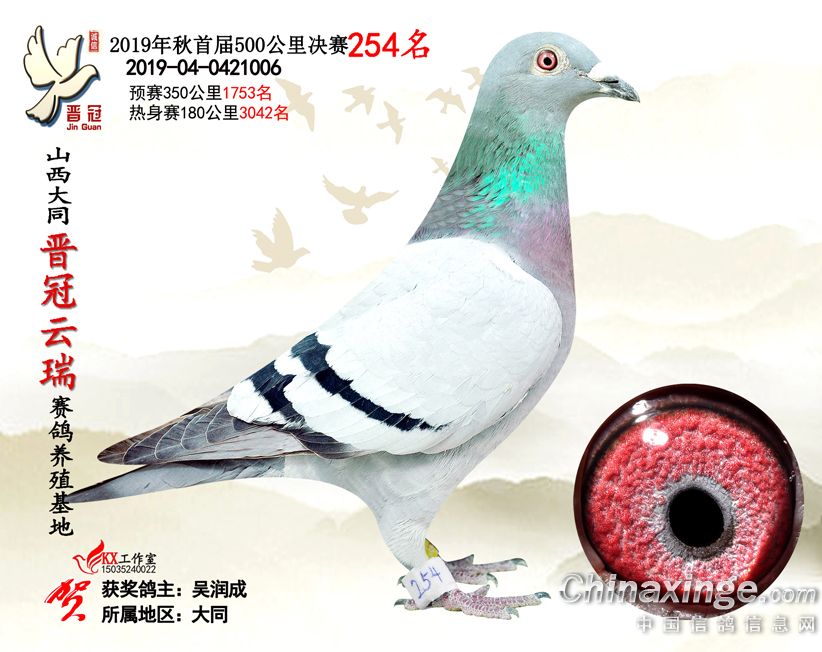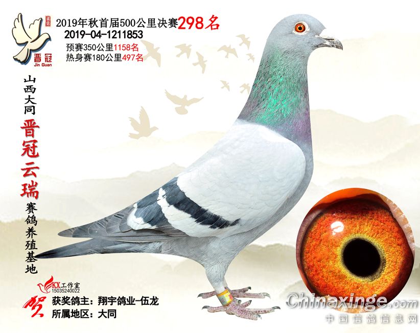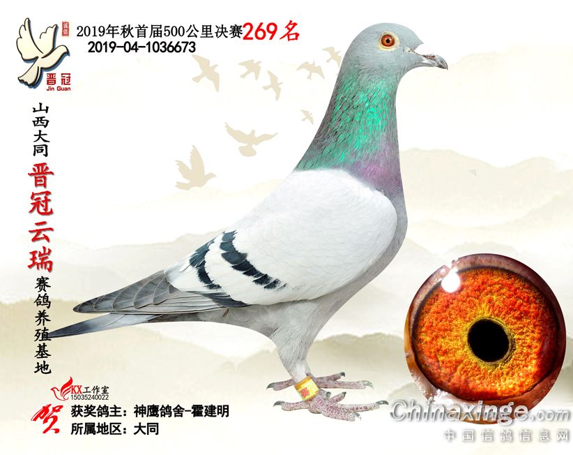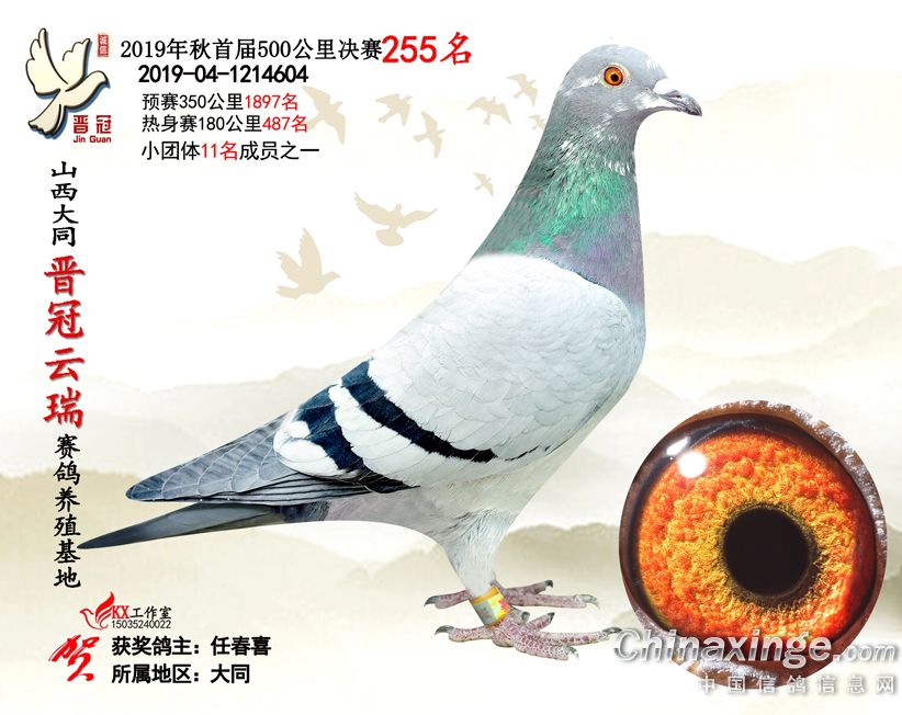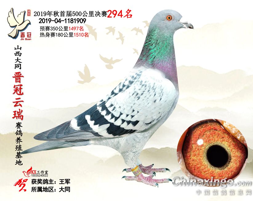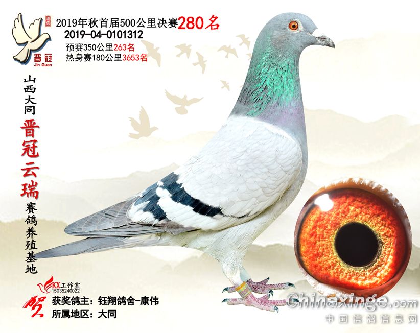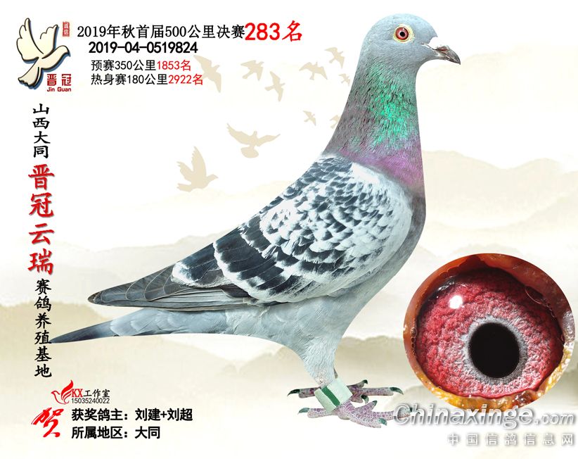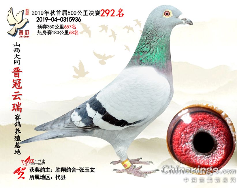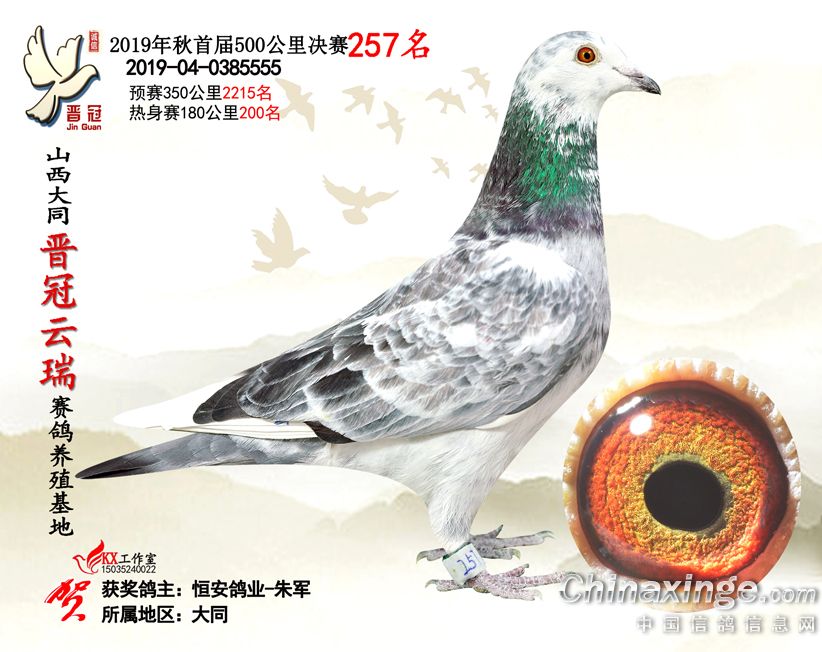 作品说明: 2019年晋冠云瑞赛鸽养殖基地决赛成绩鸽照片