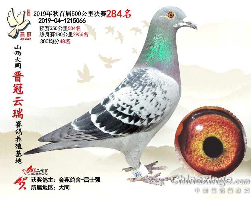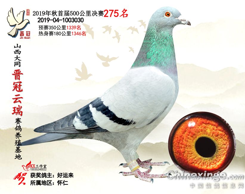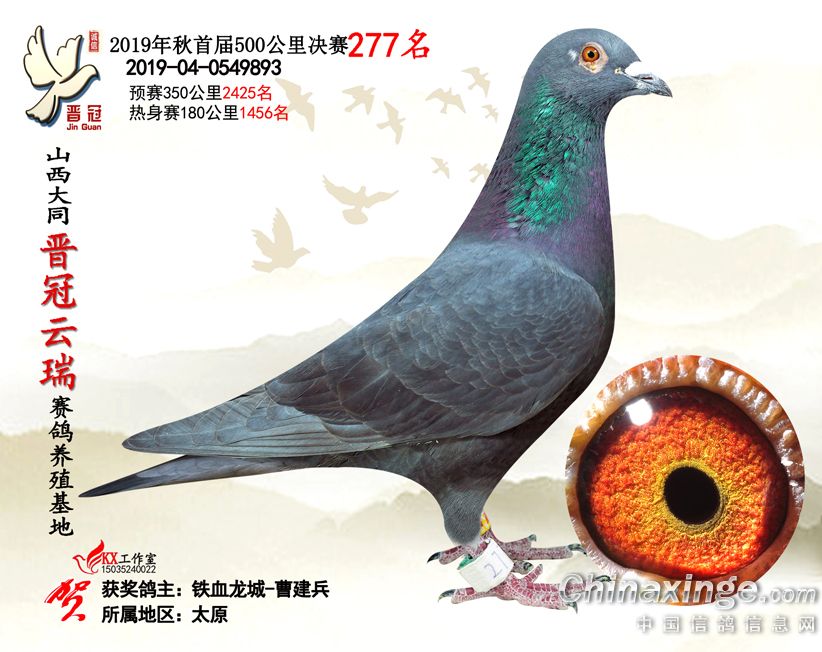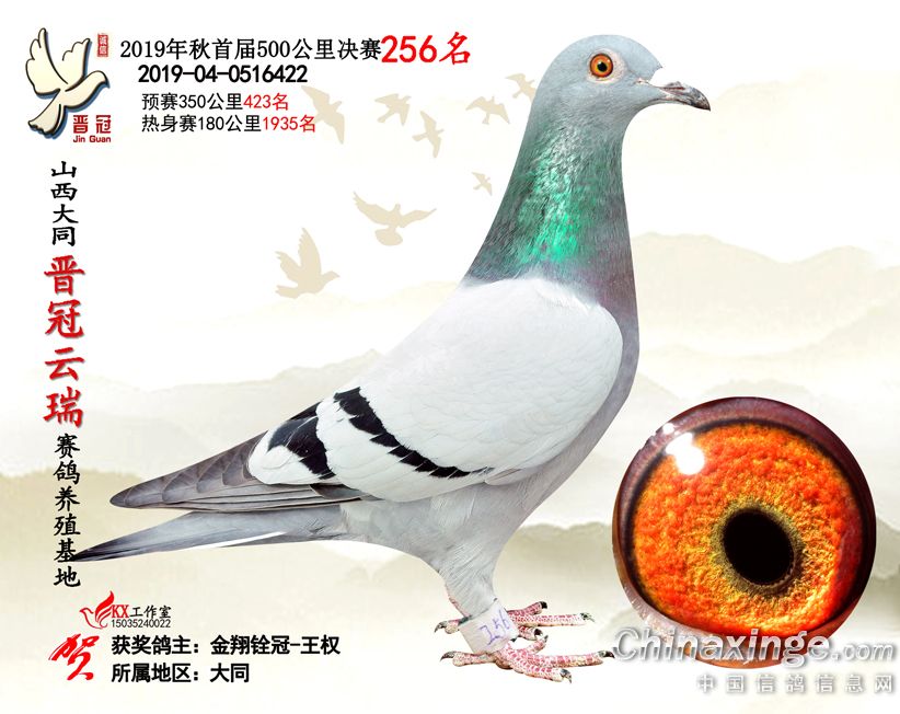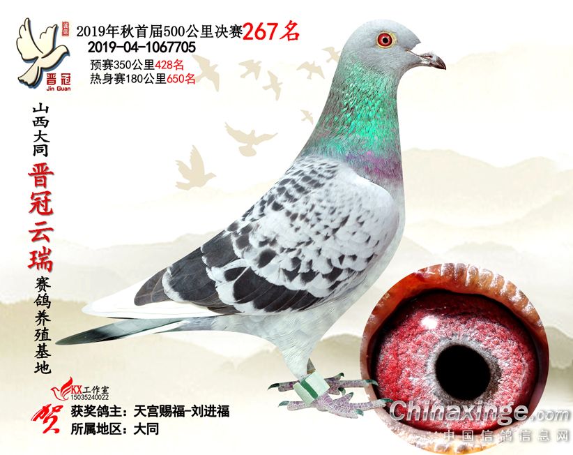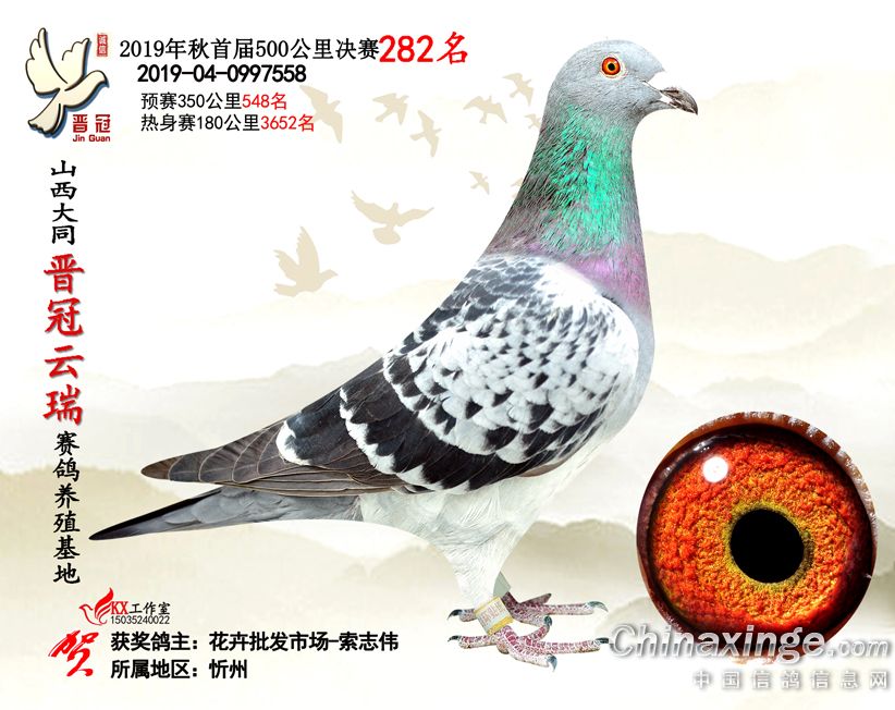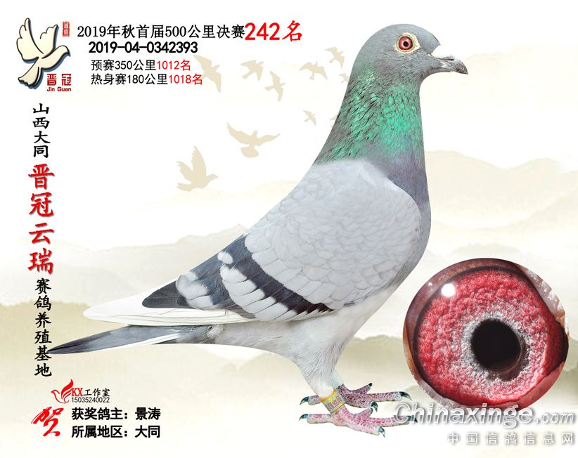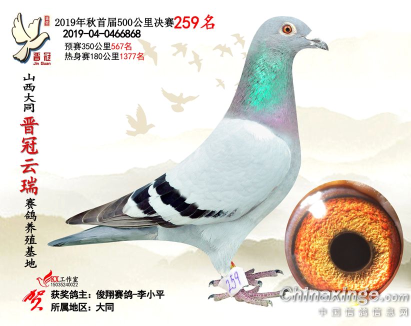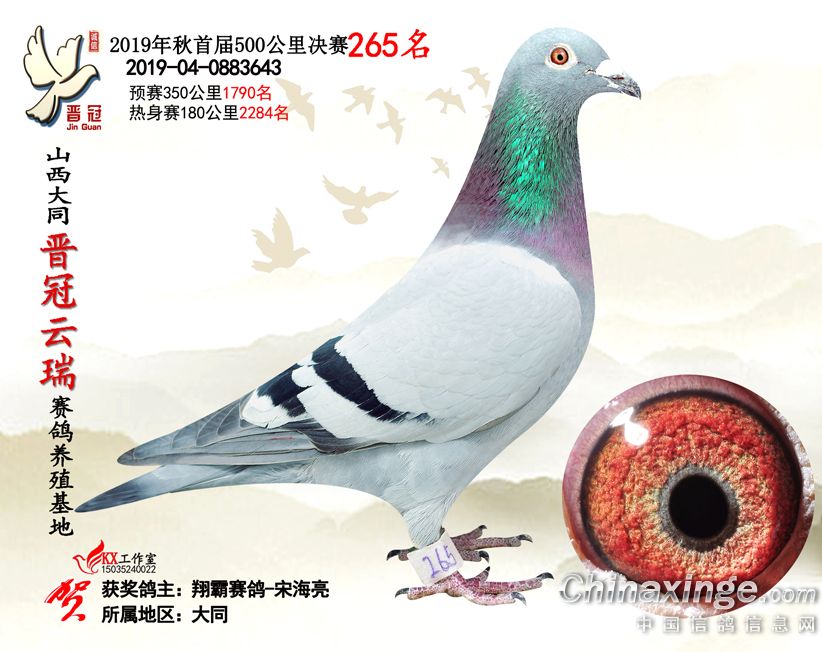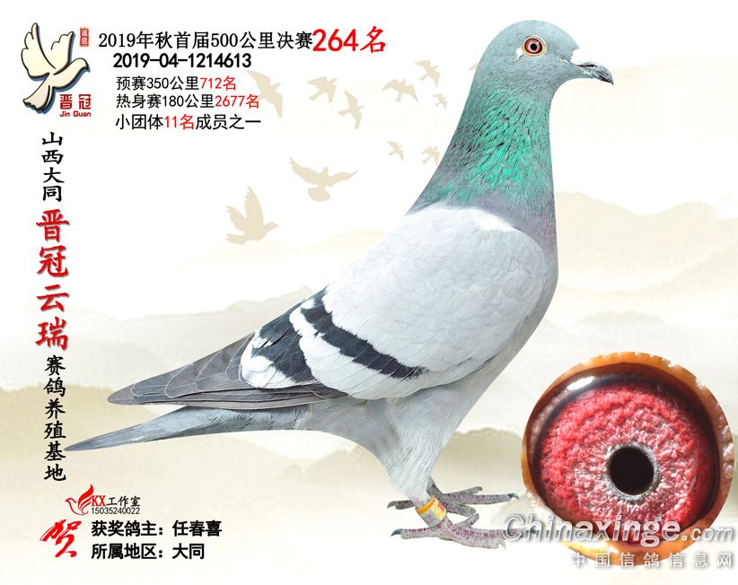 作品说明: 2019年晋冠云瑞赛鸽养殖基地决赛成绩鸽照片