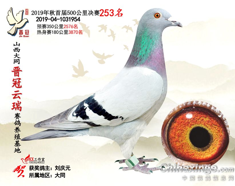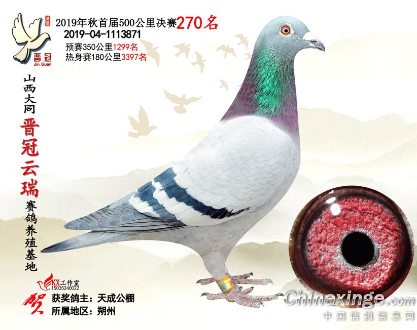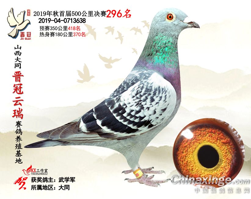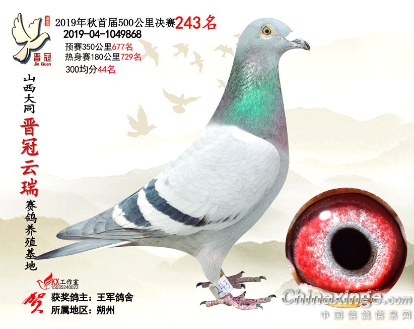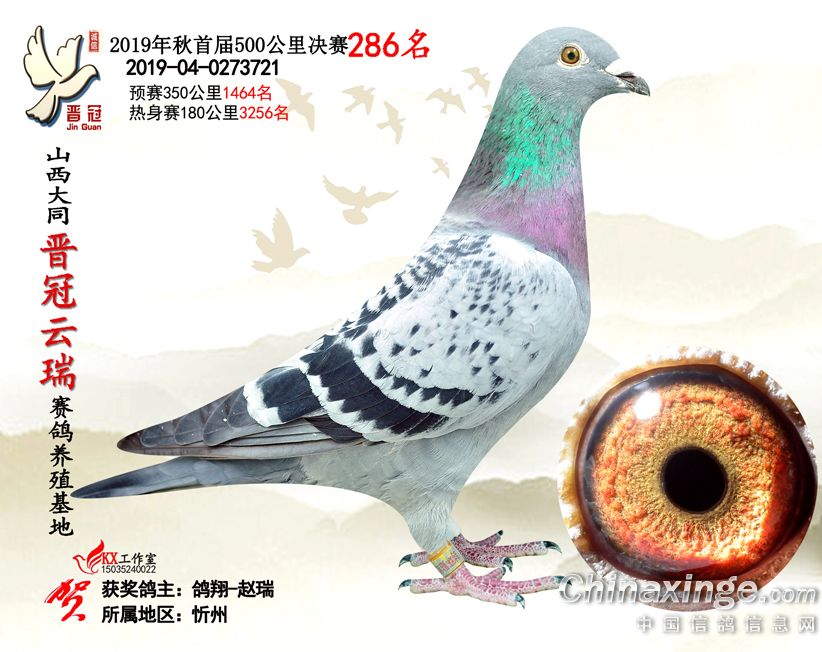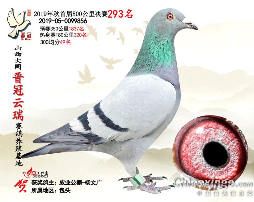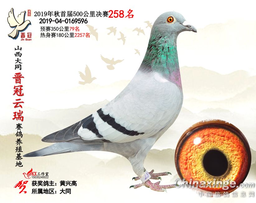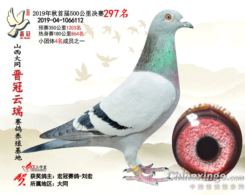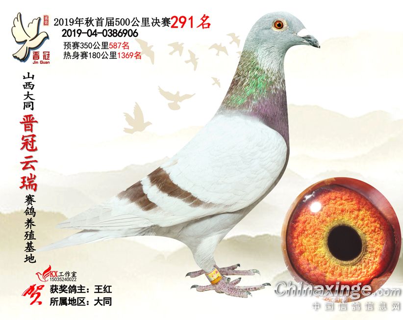 作品说明: 2019年晋冠云瑞赛鸽养殖基地决赛成绩鸽照片