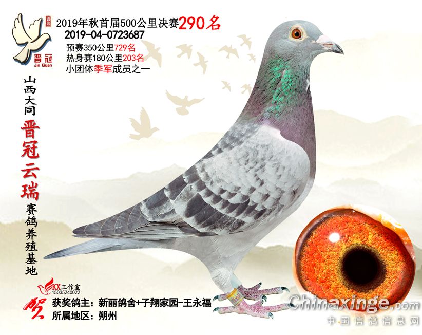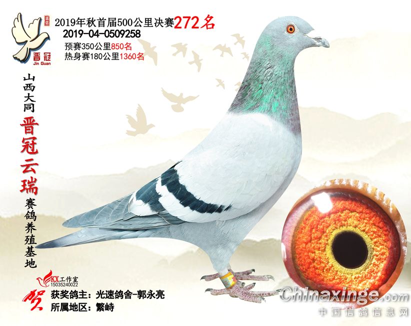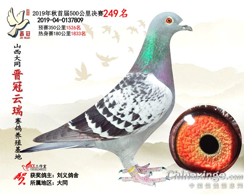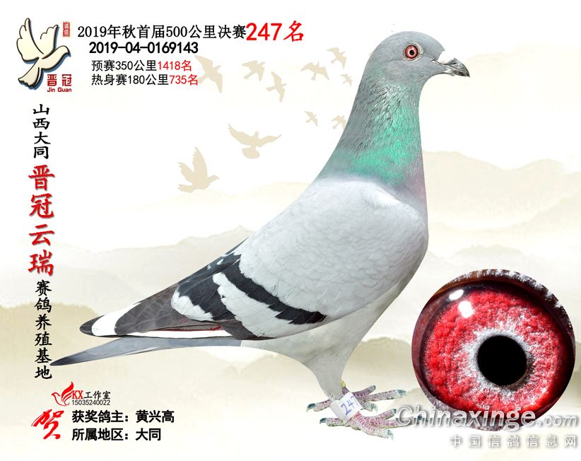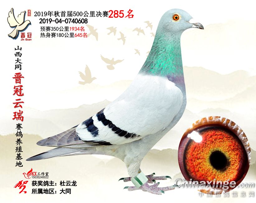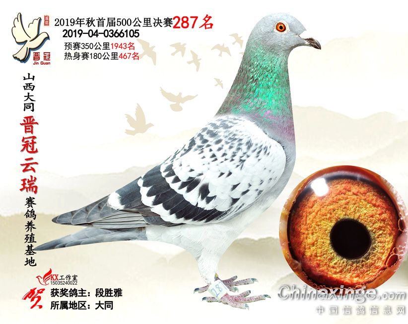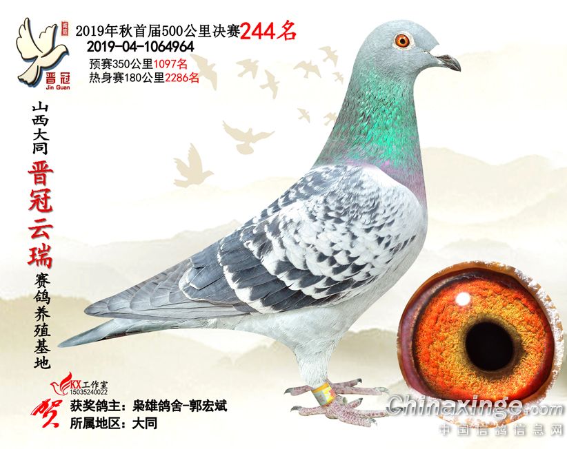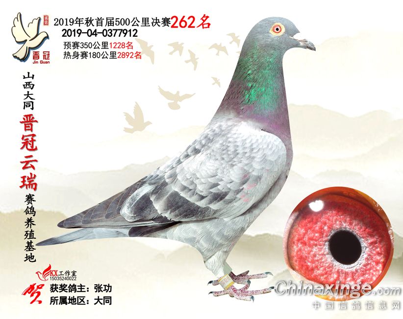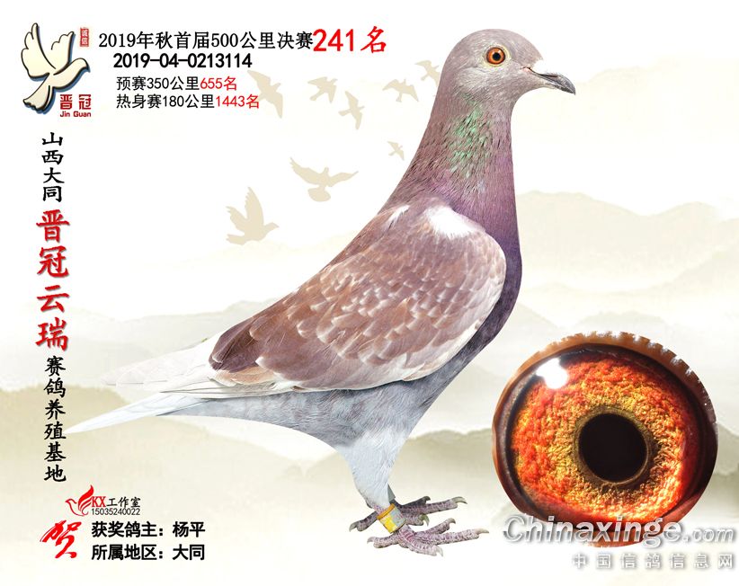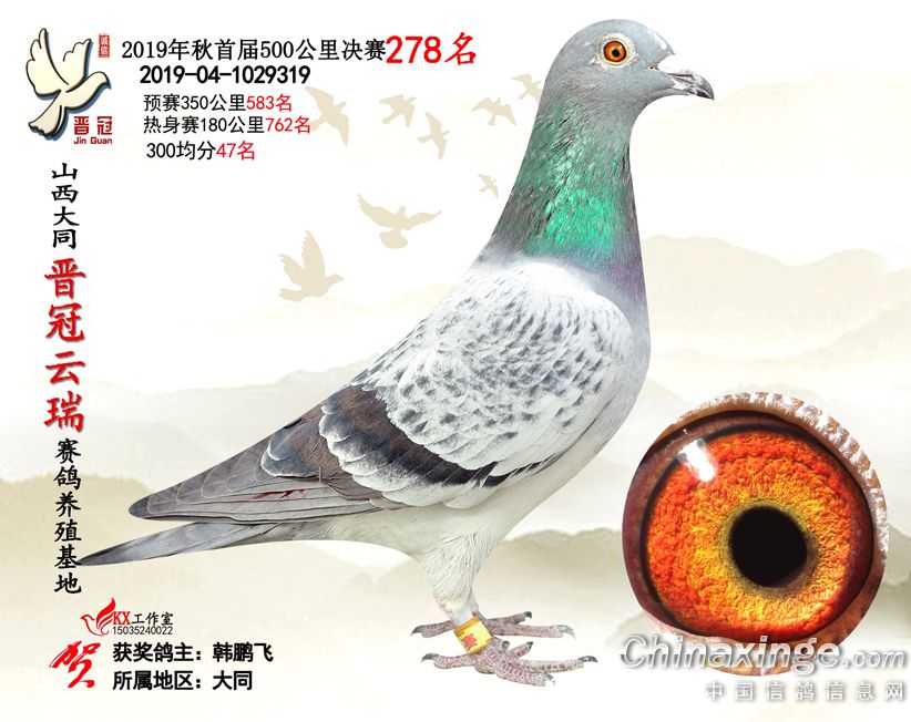 作品说明: 2019年晋冠云瑞赛鸽养殖基地决赛成绩鸽照片