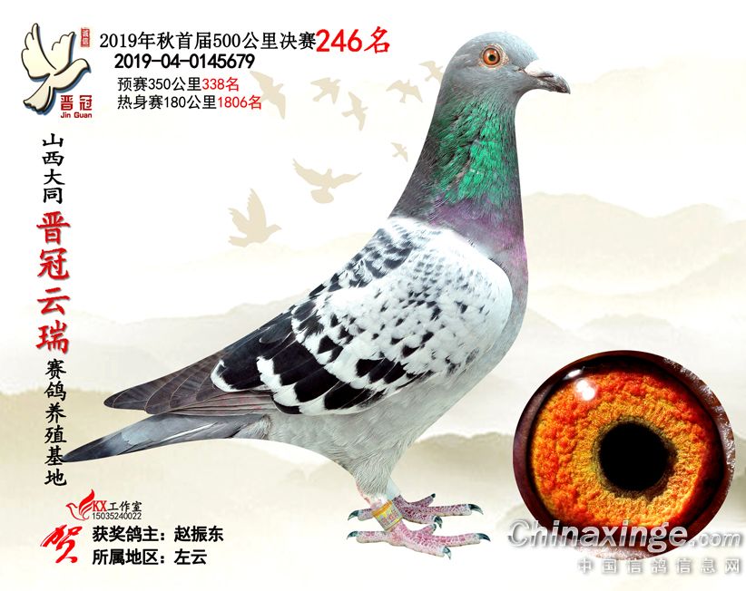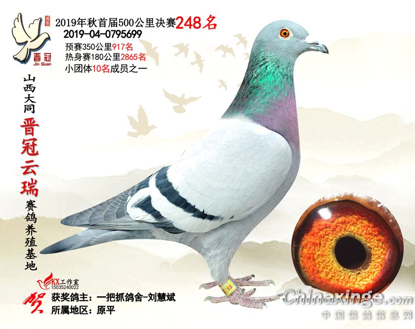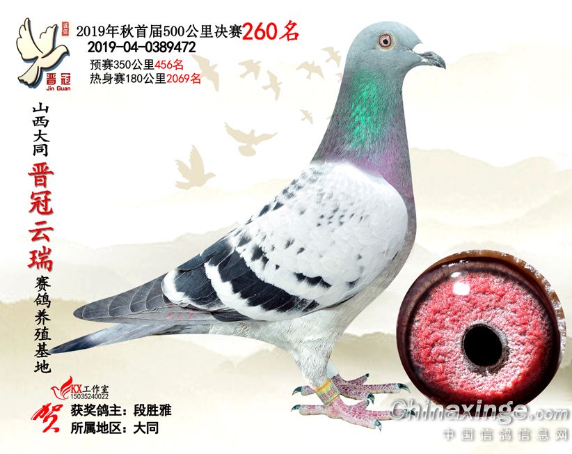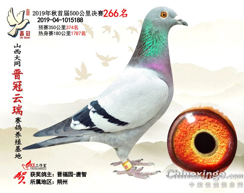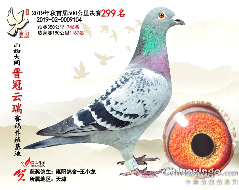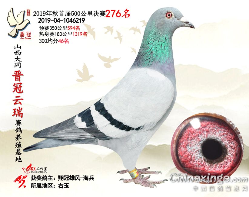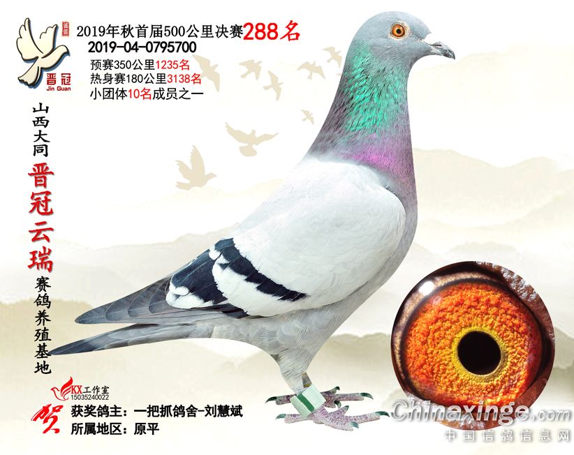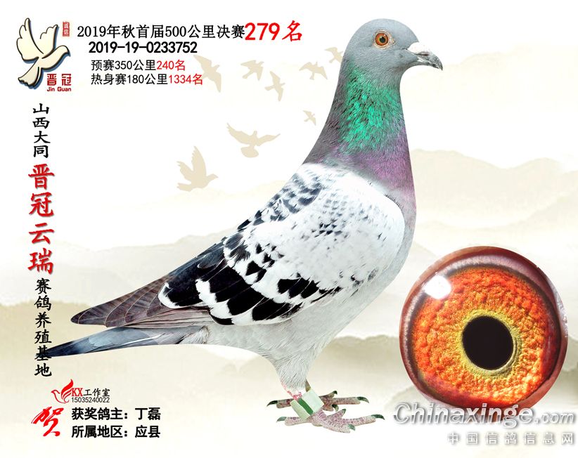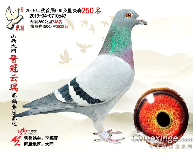 作品说明: 2019年晋冠云瑞赛鸽养殖基地决赛成绩鸽照片