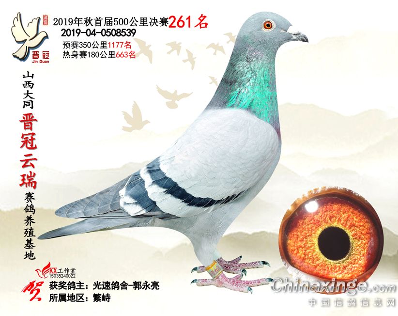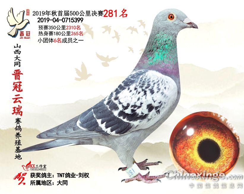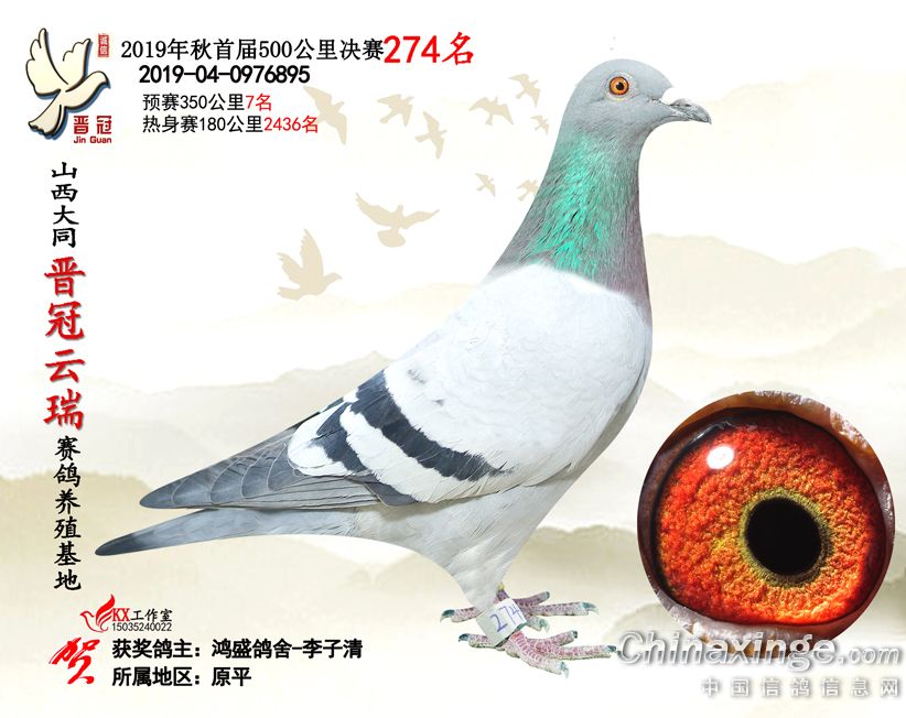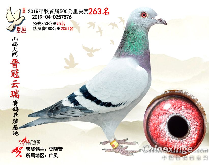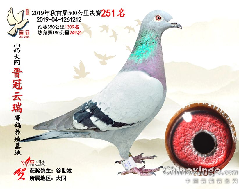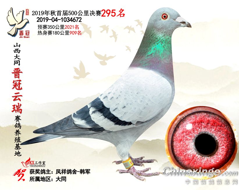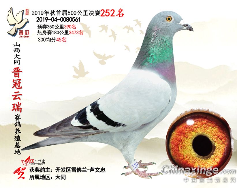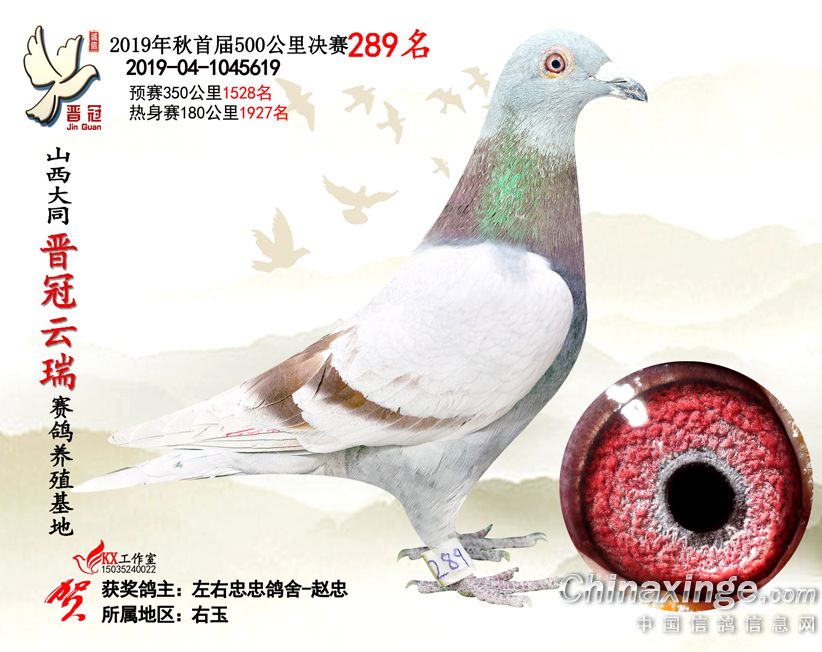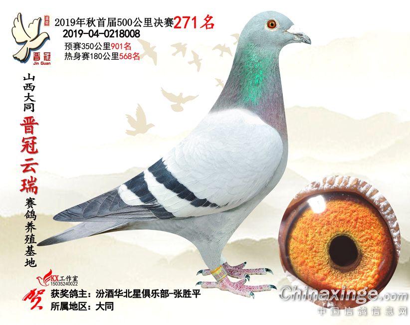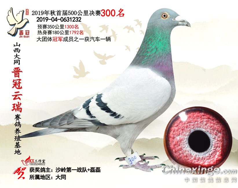 作品说明: 2019年晋冠云瑞赛鸽养殖基地决赛成绩鸽照片