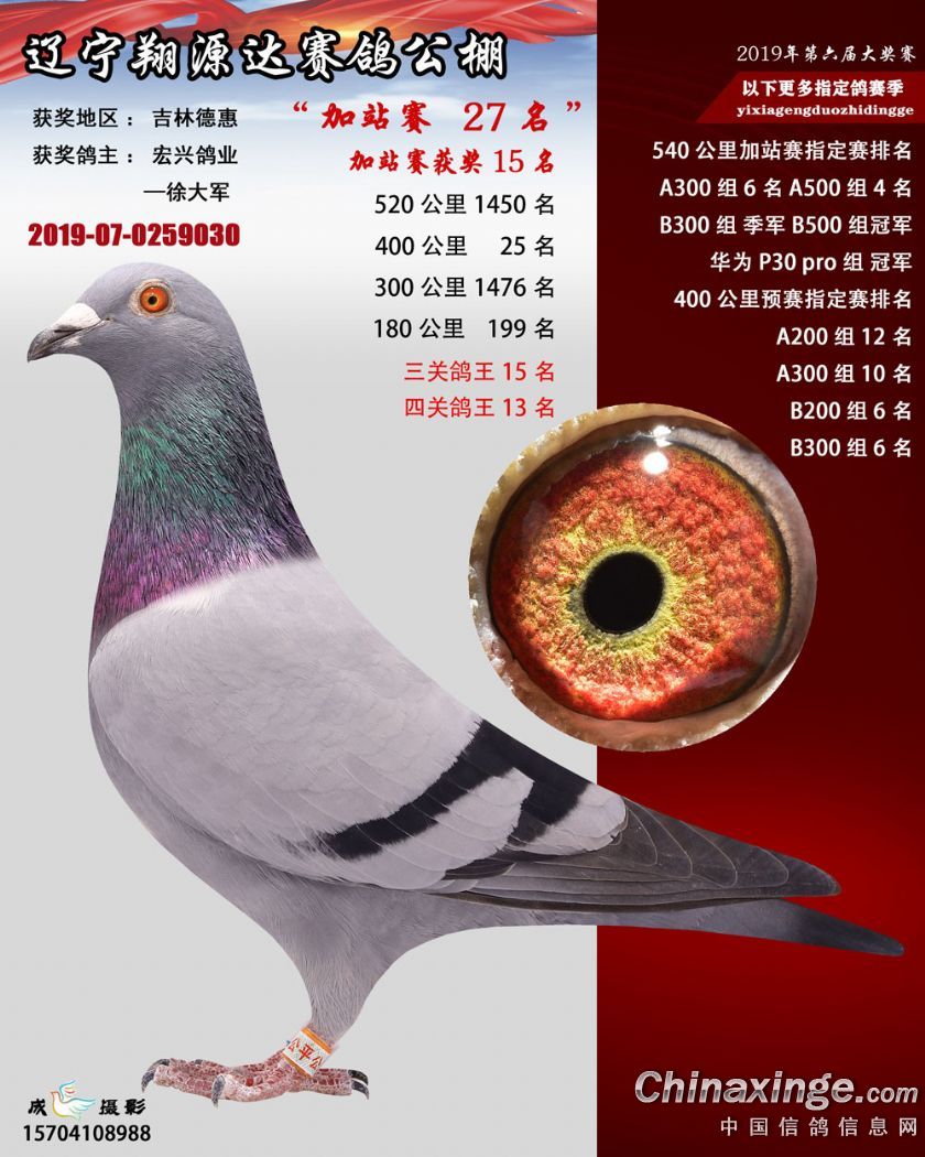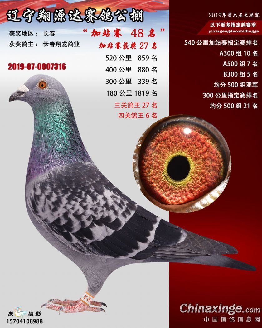 辽宁翔源达赛鸽公棚2019年加站赛获奖鸽图片(1-50)