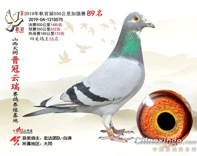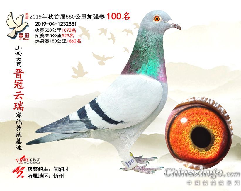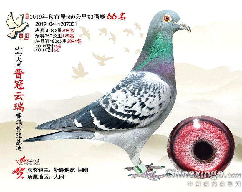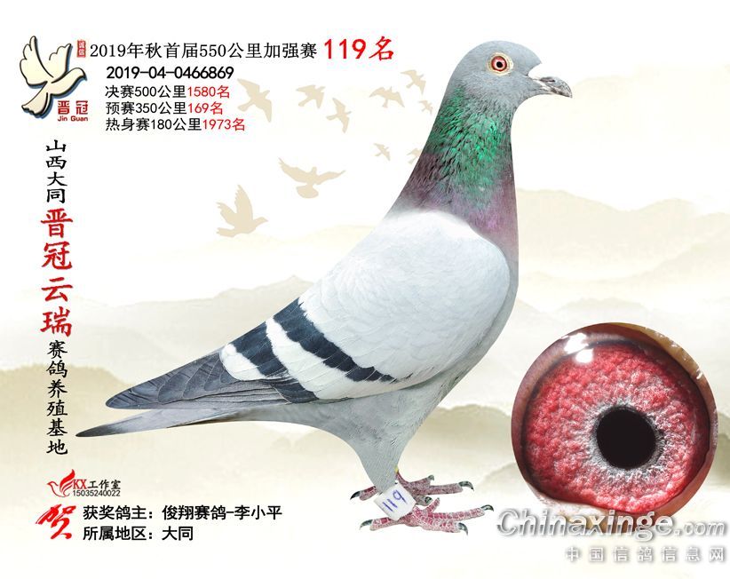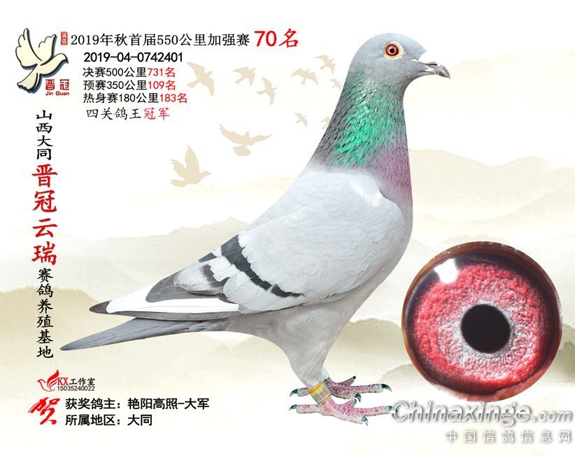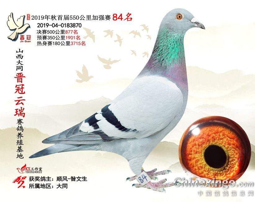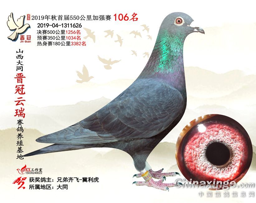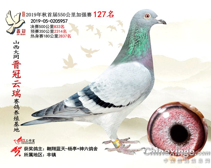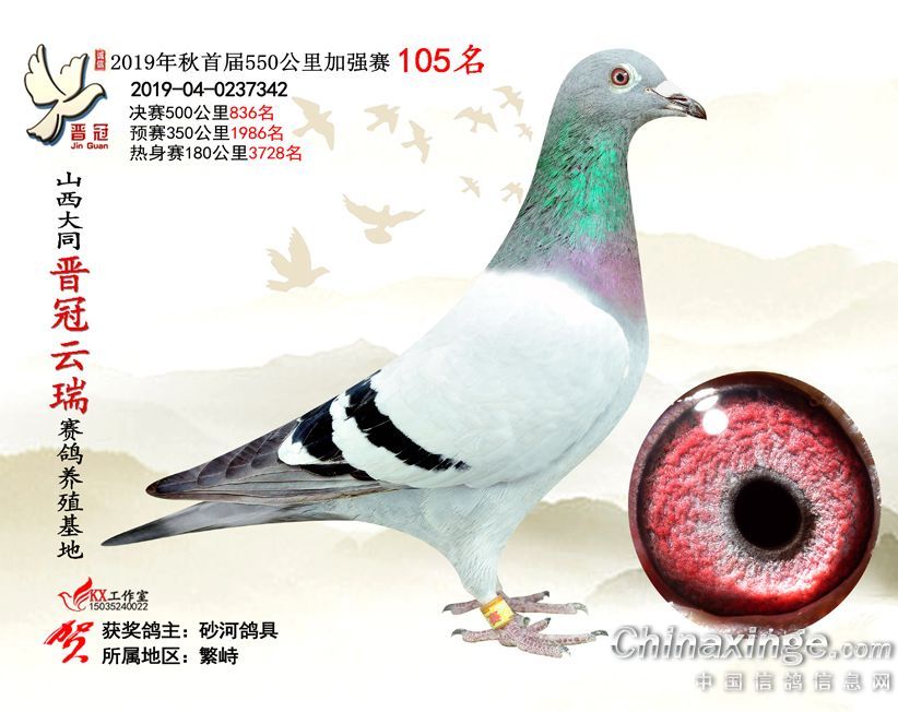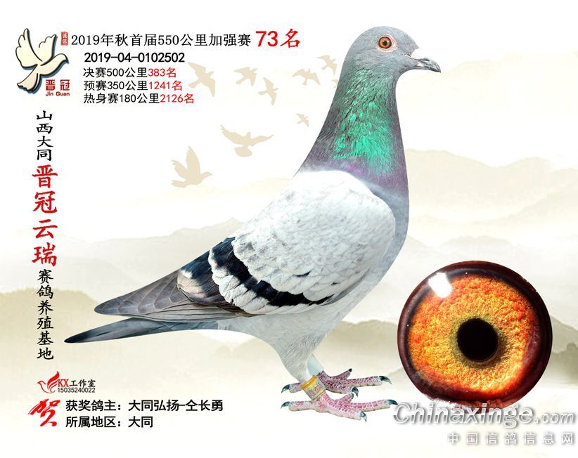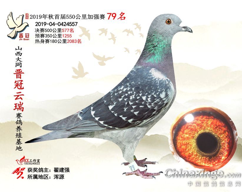 2019年晋冠云瑞公棚加站赛成绩鸽照片61名-127名