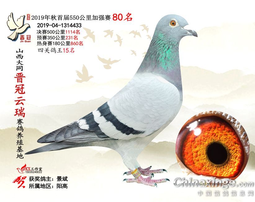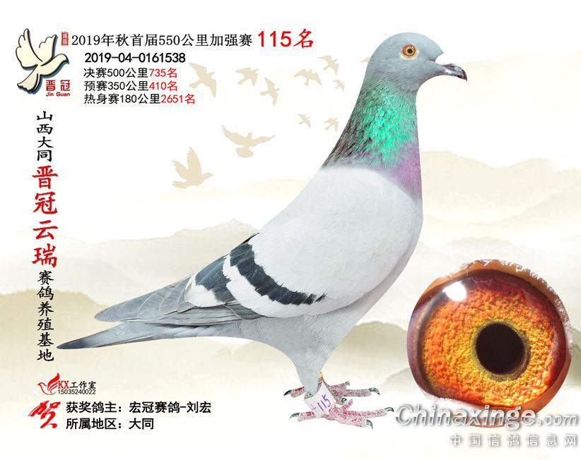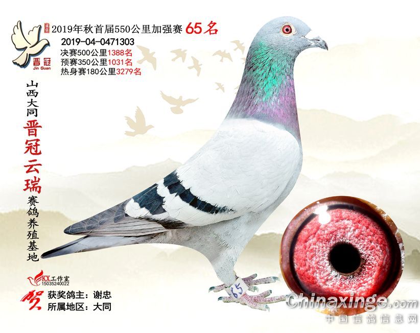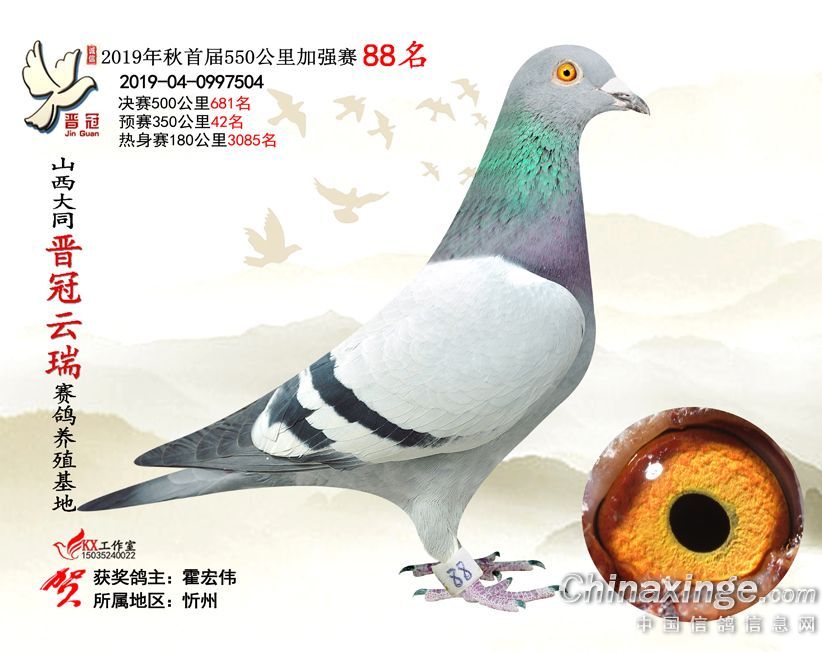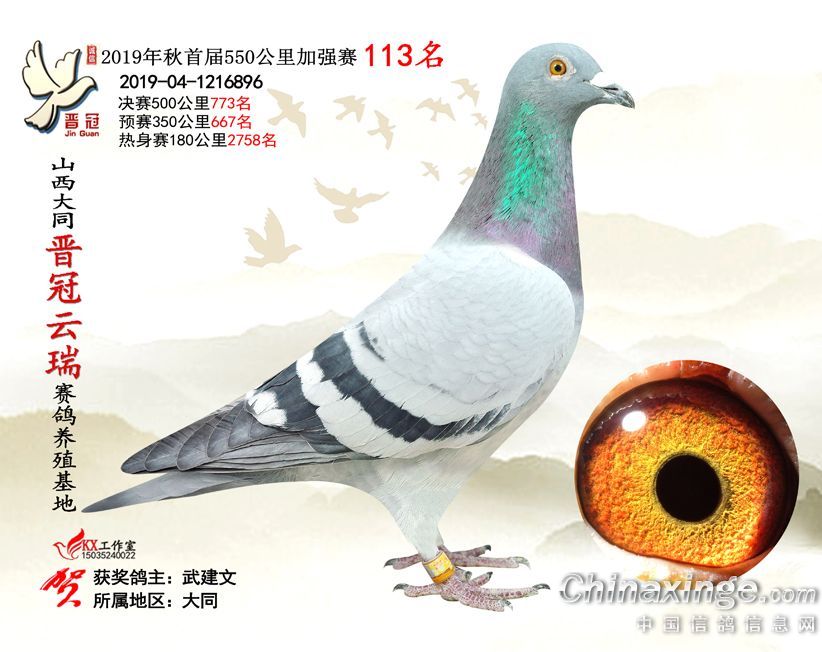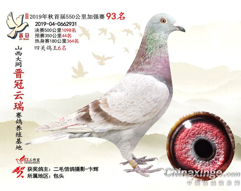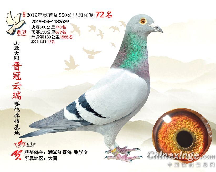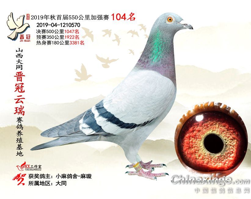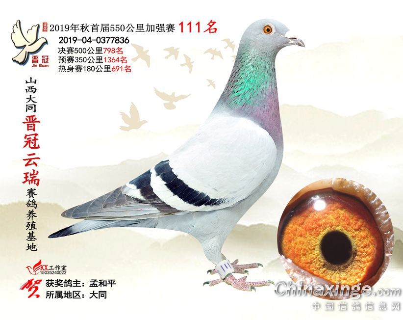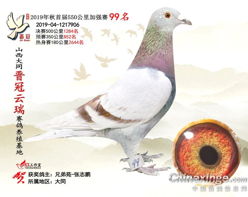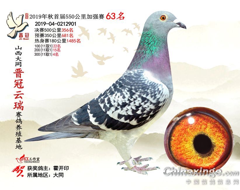 2019年晋冠云瑞公棚加站赛成绩鸽照片61名-127名