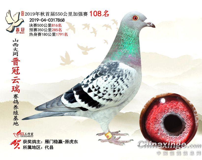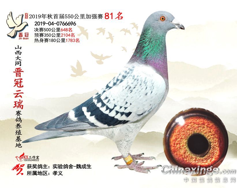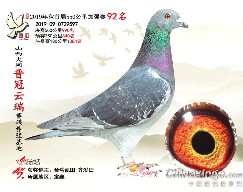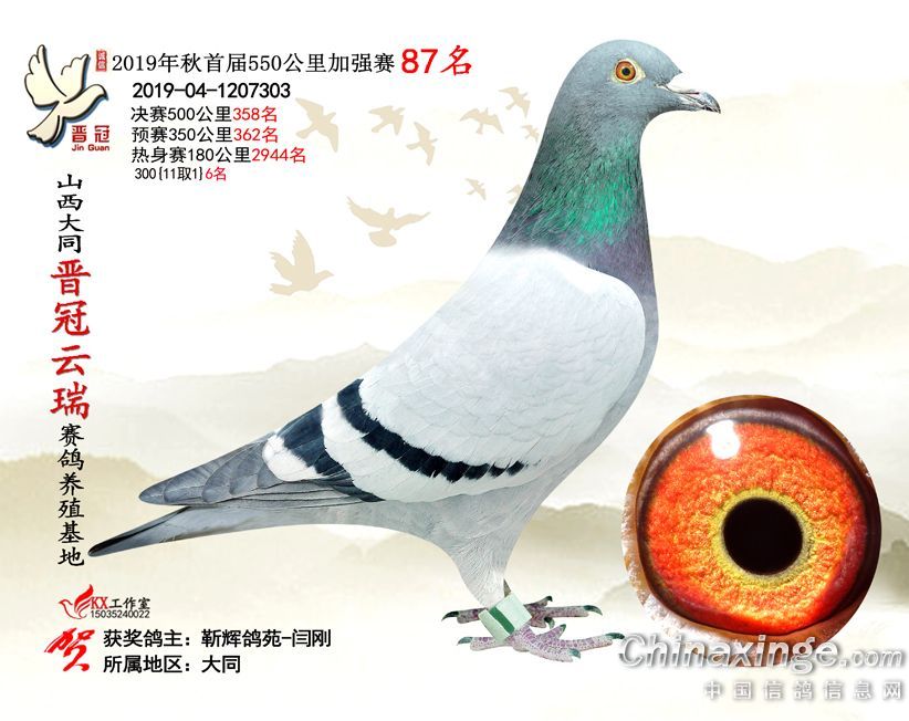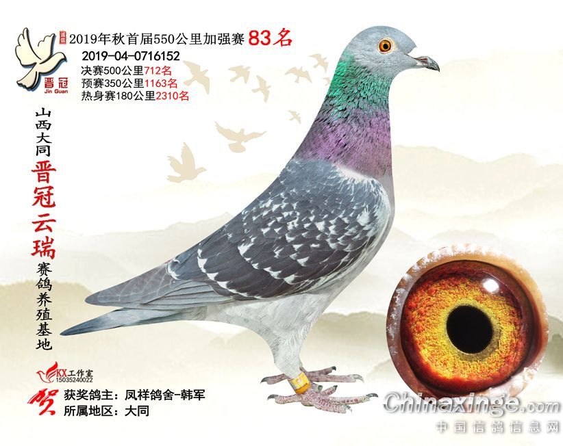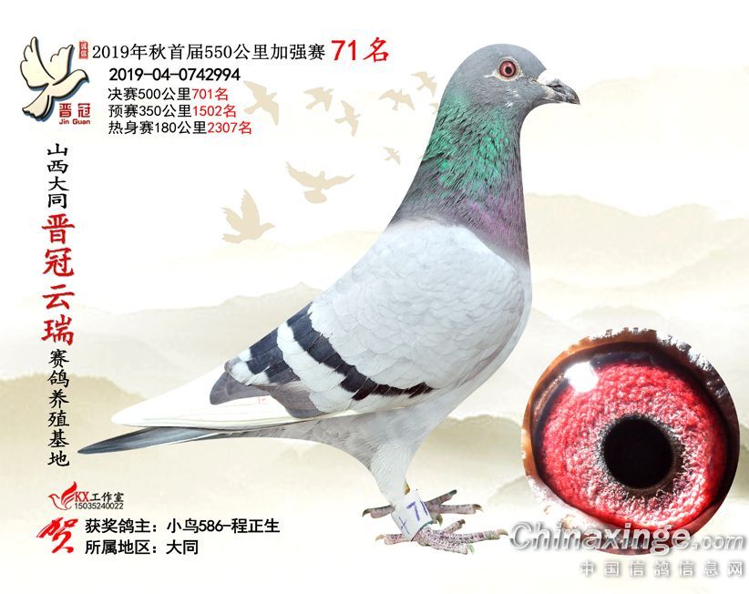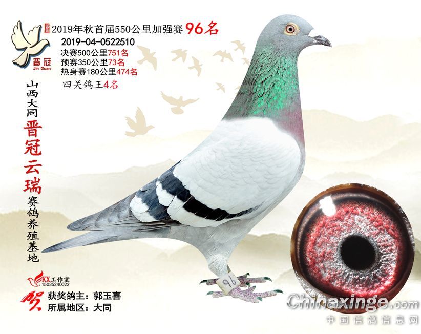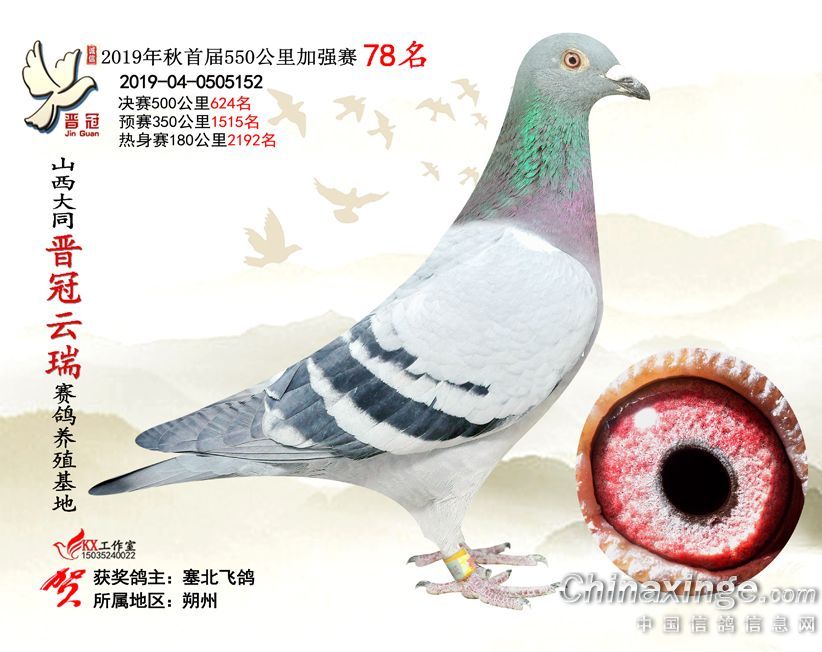 作品说明: 2019年晋冠云瑞赛鸽养殖基地加站赛成绩鸽照片