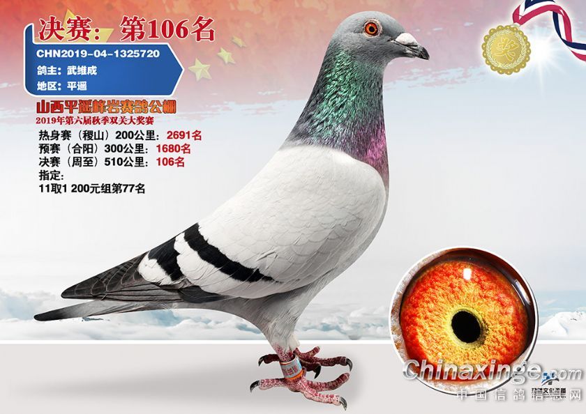 作品说明: 山西平遥峰岩赛鸽公棚2019年秋第六届秋季决赛奖鸽靓照101名-125名