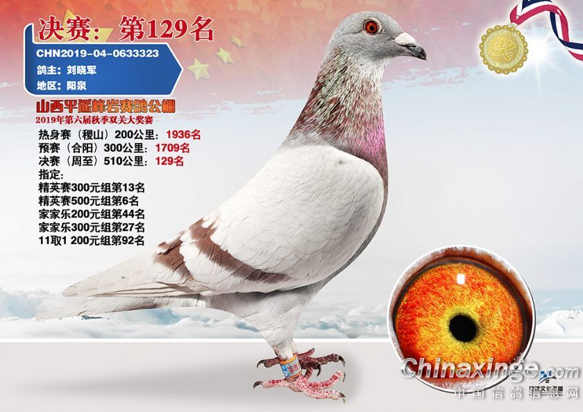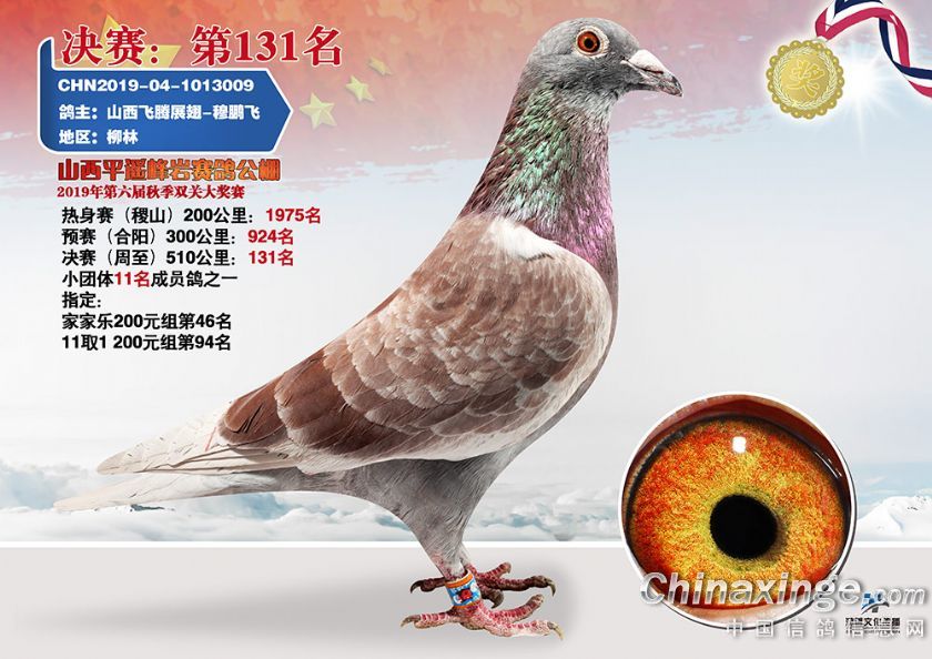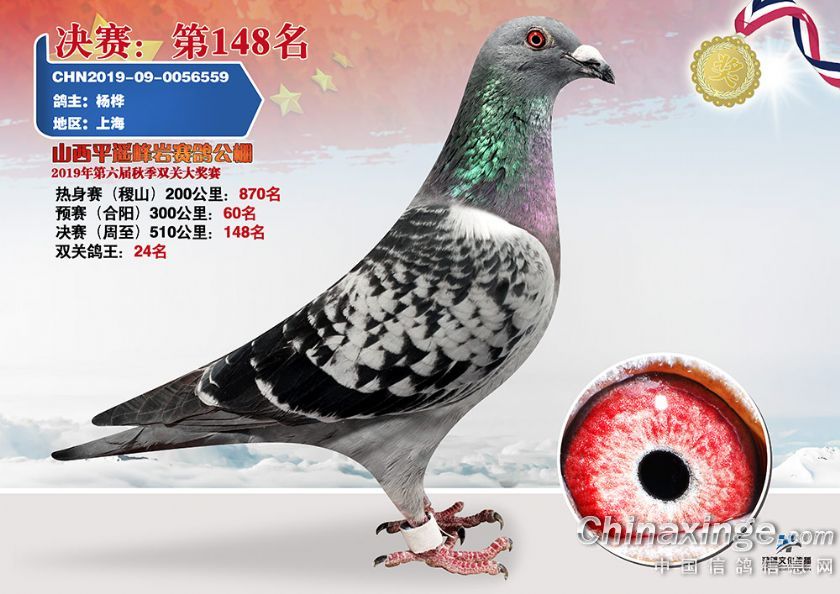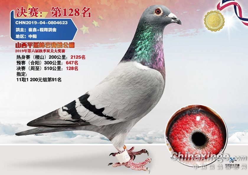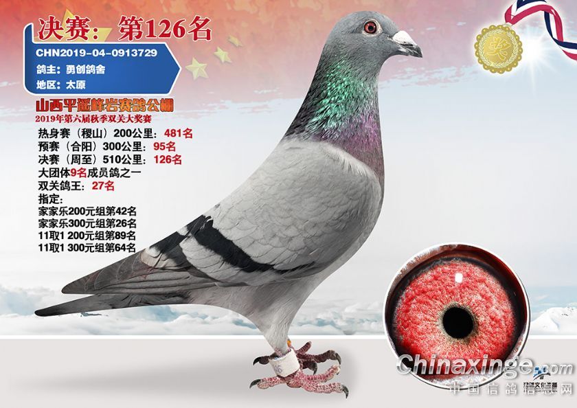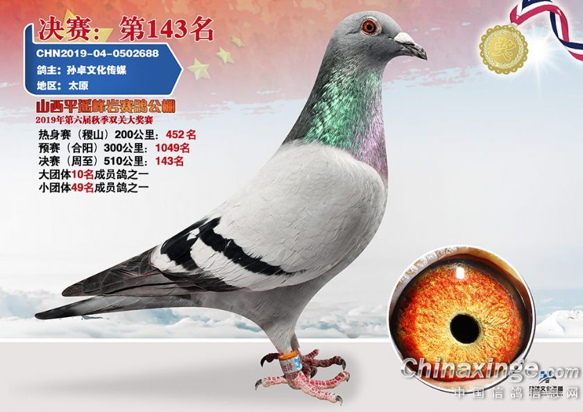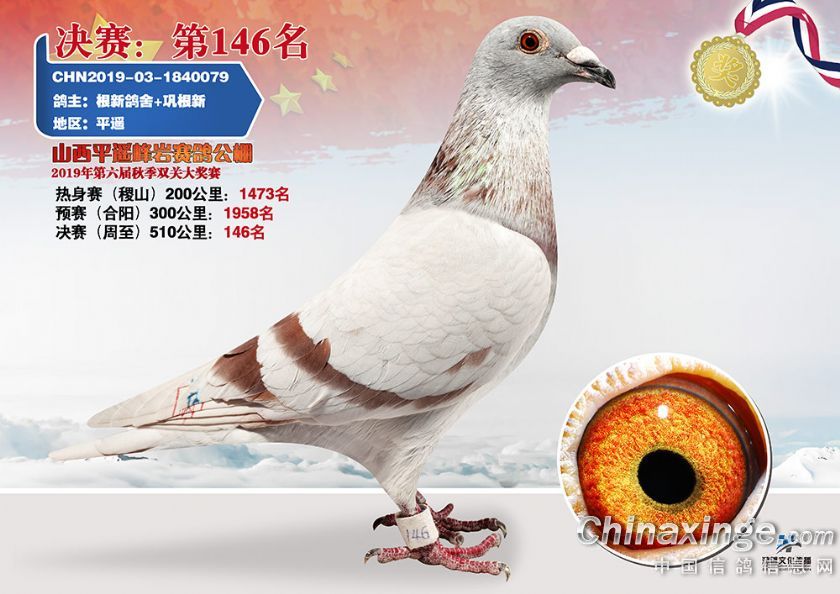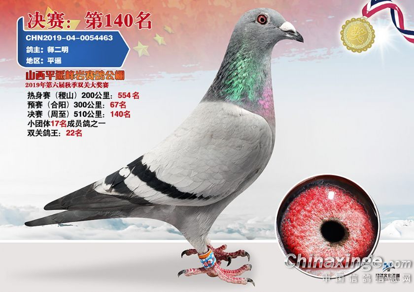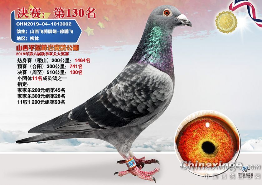 作品说明: 山西平遥峰岩赛鸽公棚2019年秋第六届秋季决赛奖鸽靓照126名-150名
