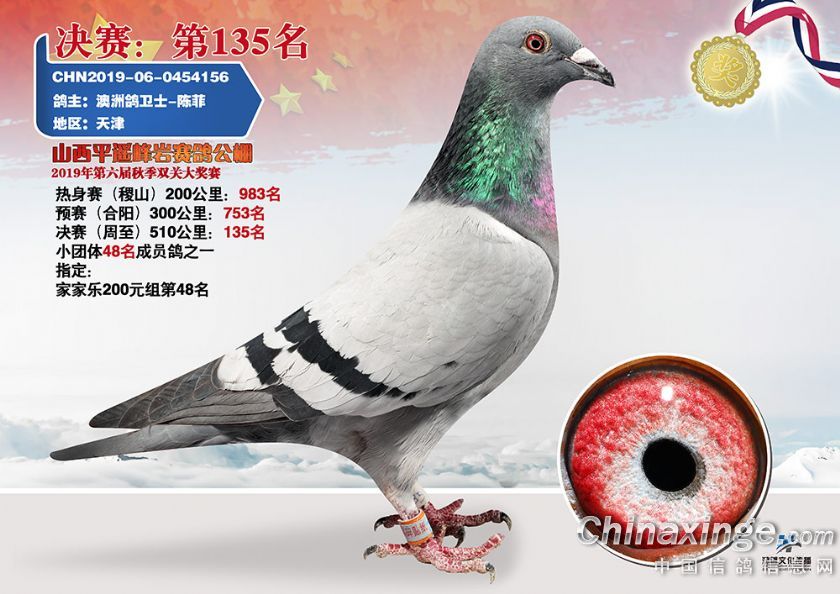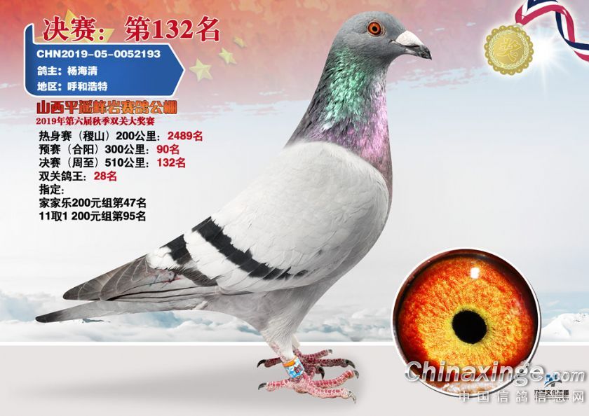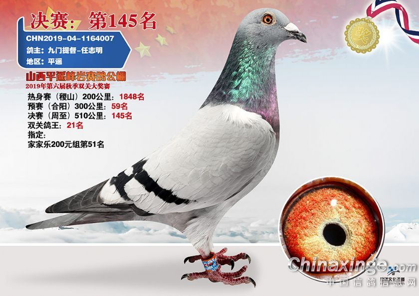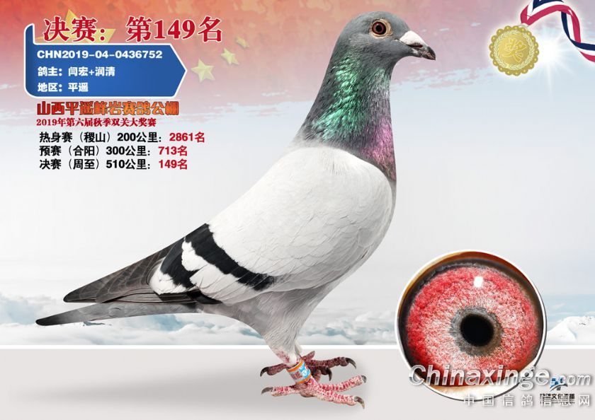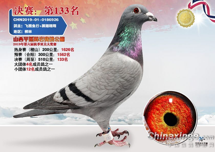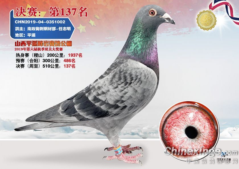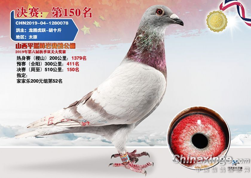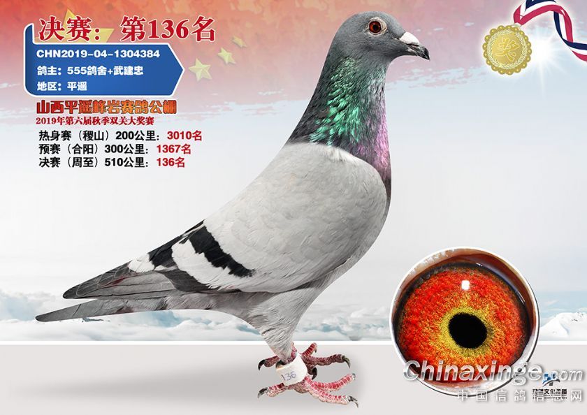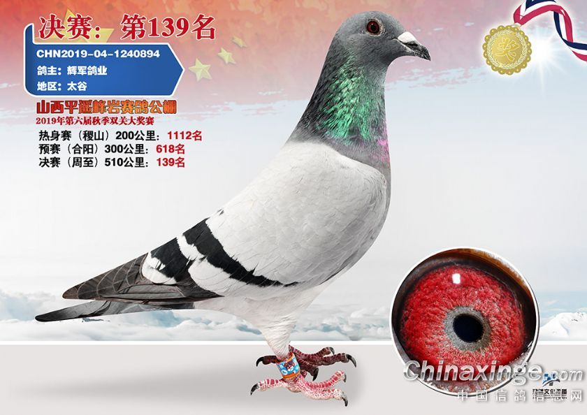 作品说明: 山西平遥峰岩赛鸽公棚2019年秋第六届秋季决赛奖鸽靓照126名-150名