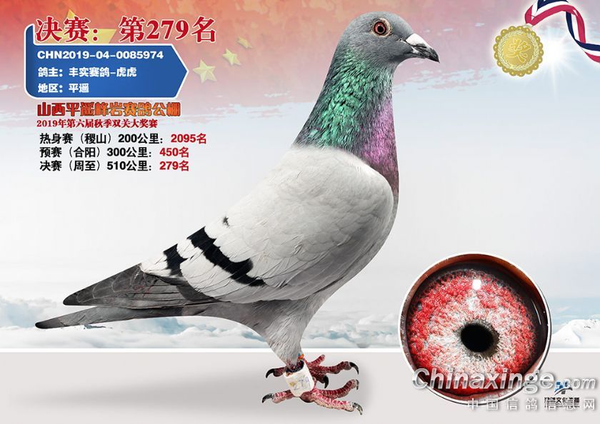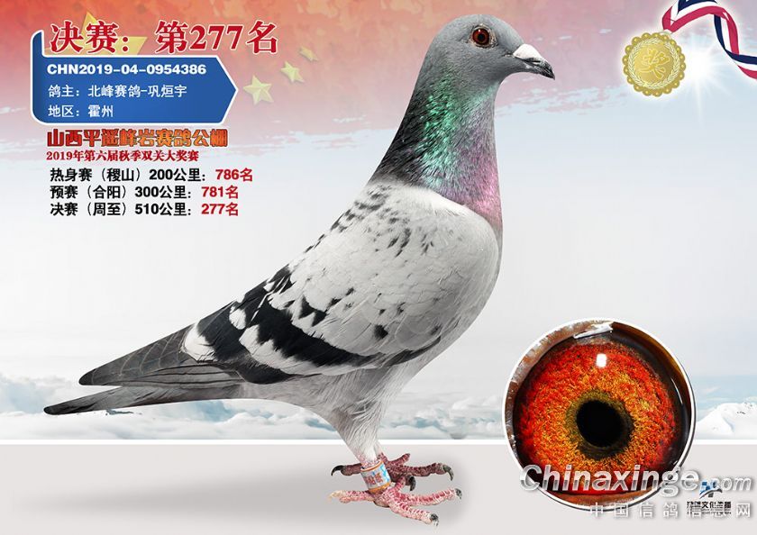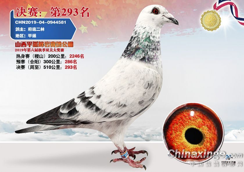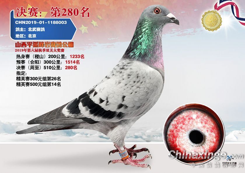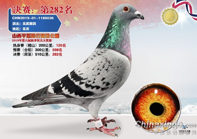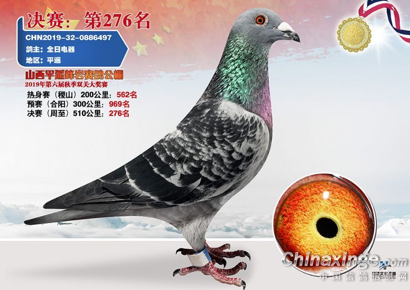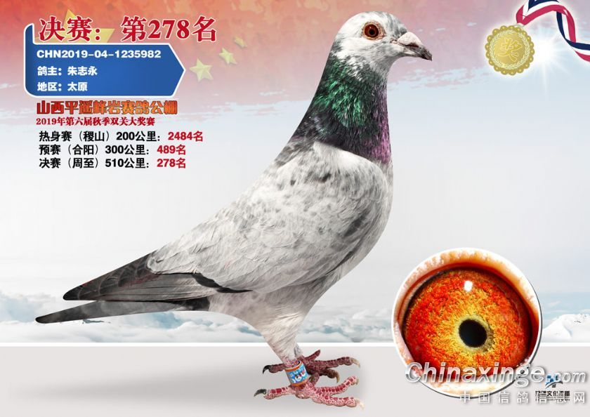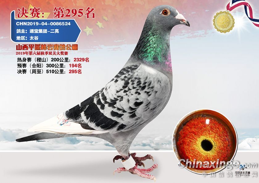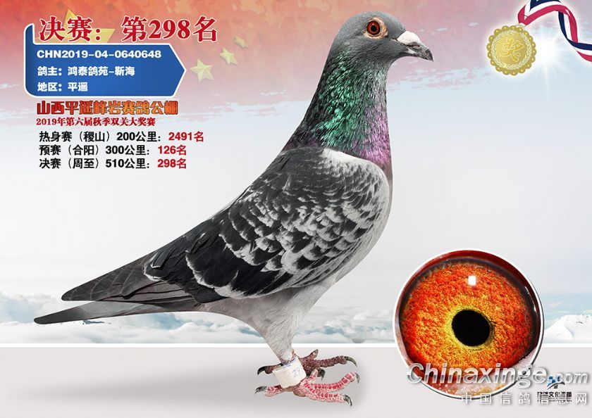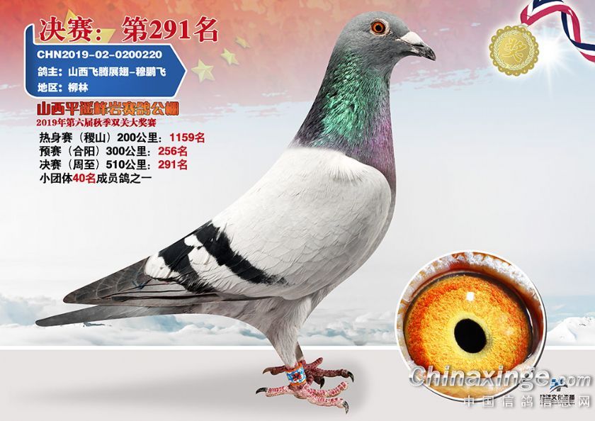 作品说明: 山西平遥峰岩赛鸽公棚2019年秋第六届秋季决赛奖鸽靓照276名-300名