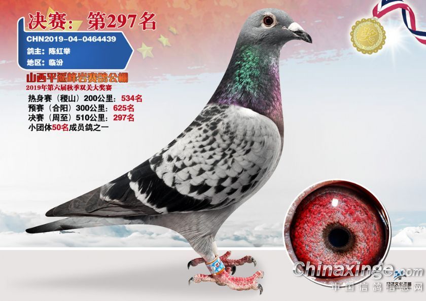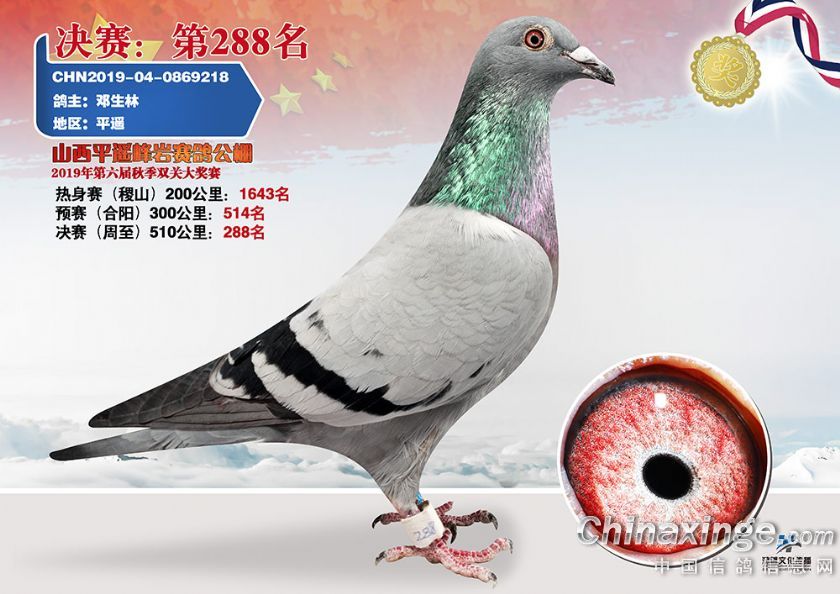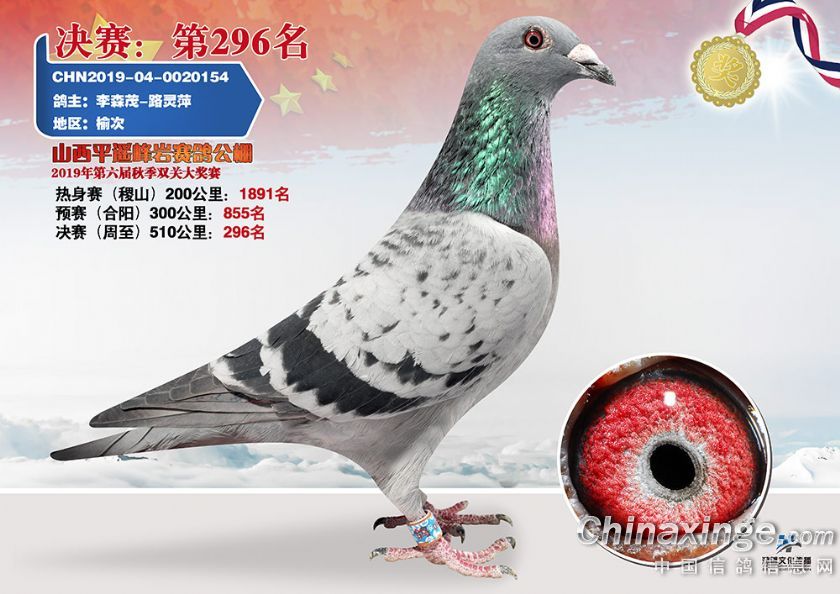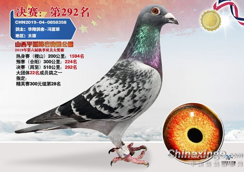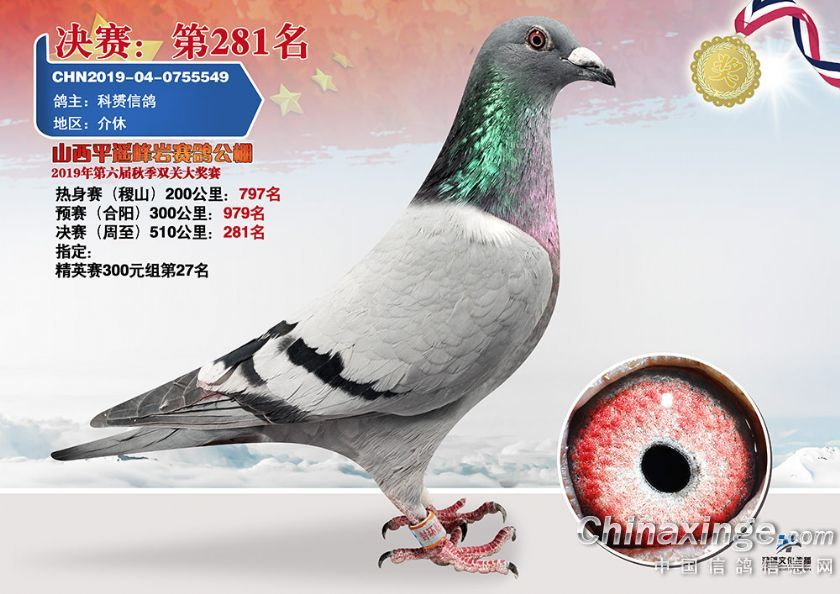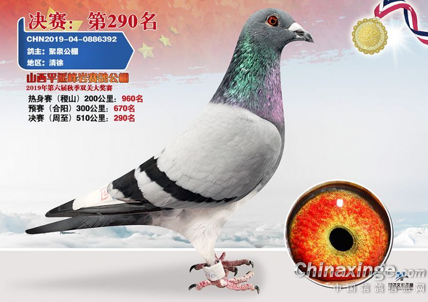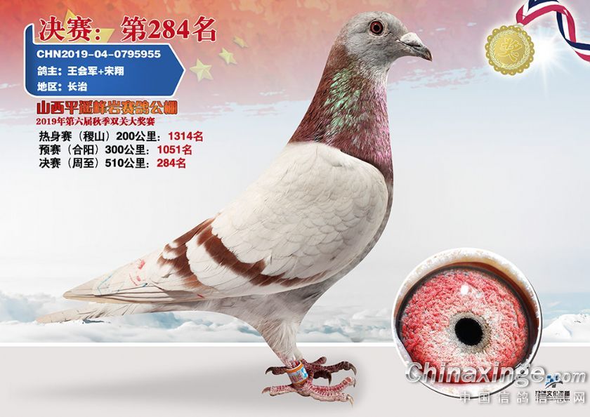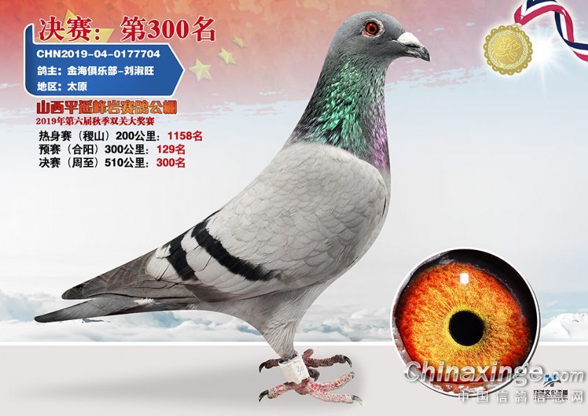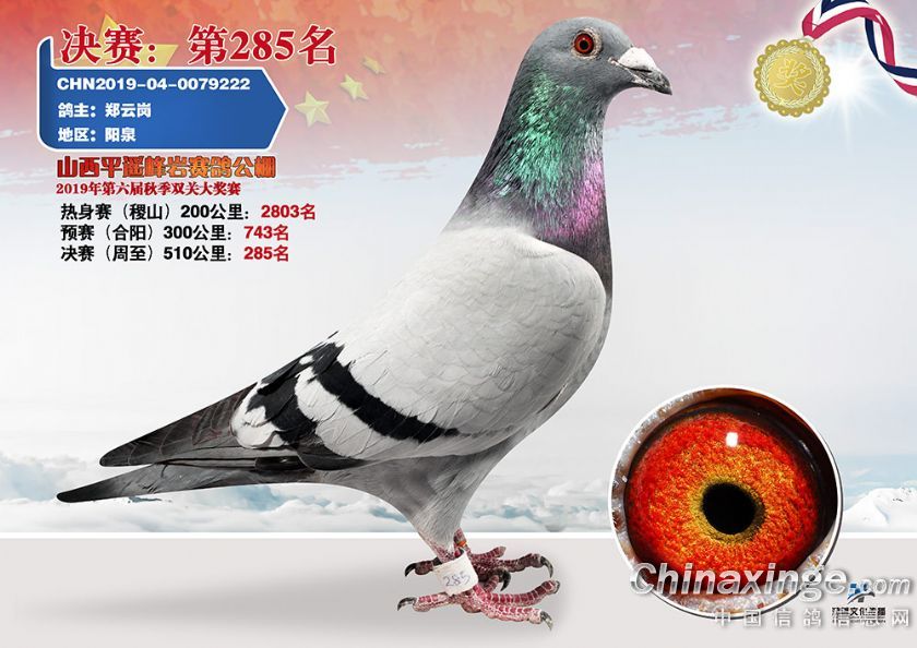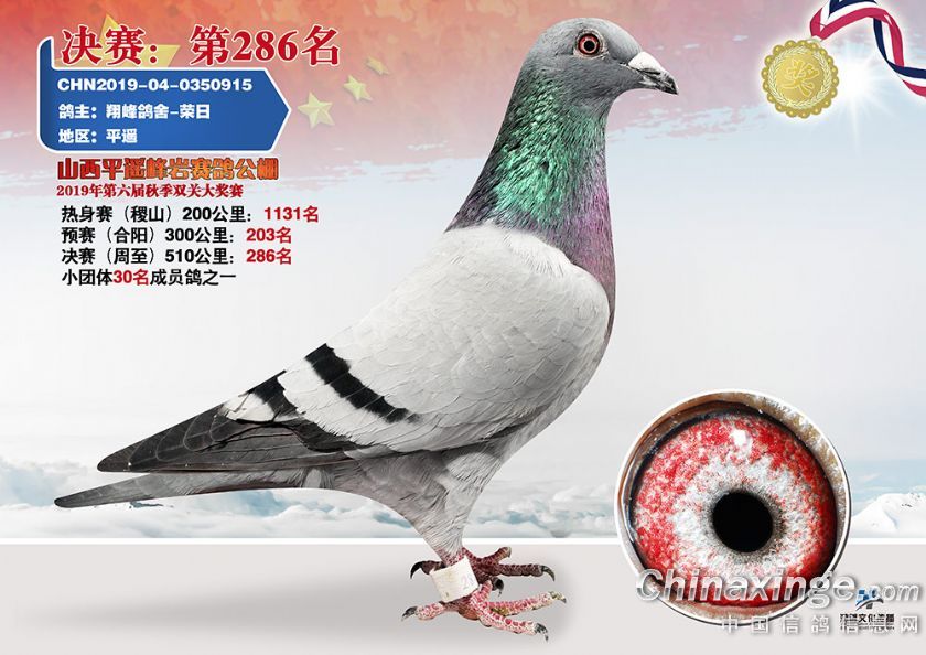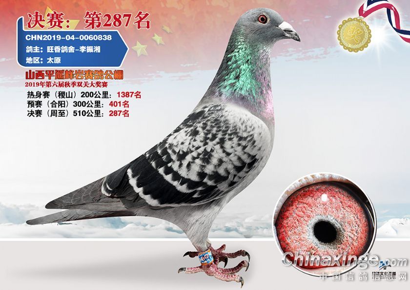 作品说明: 山西平遥峰岩赛鸽公棚2019年秋第六届秋季决赛奖鸽靓照276名-300名