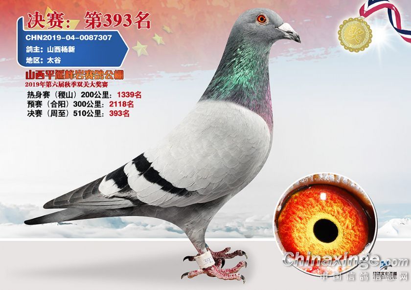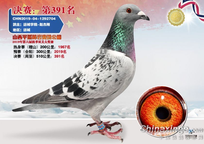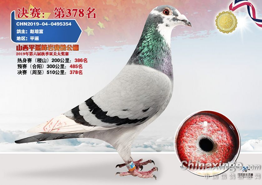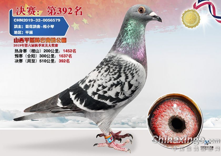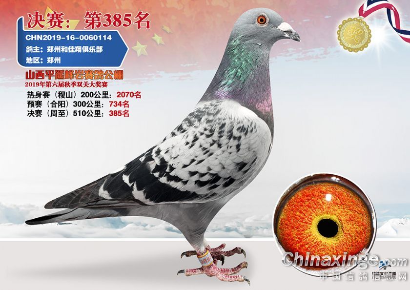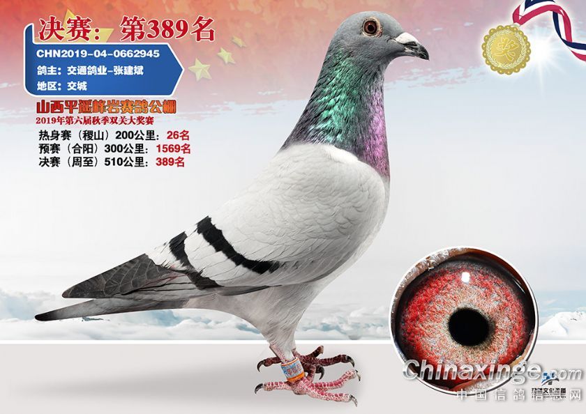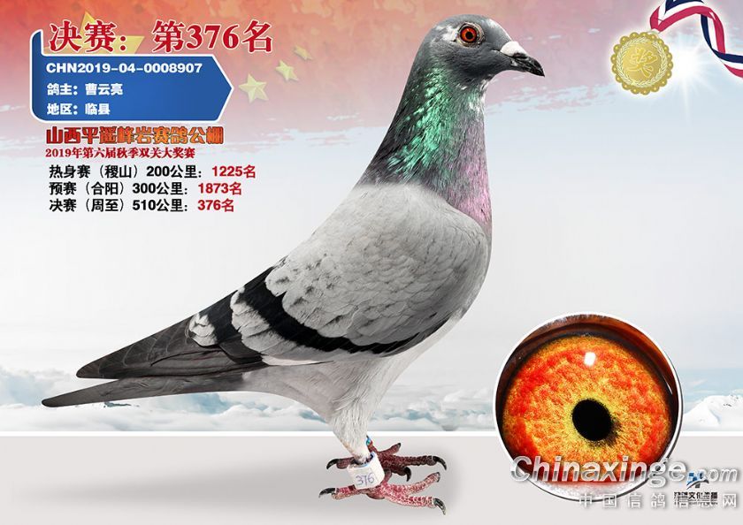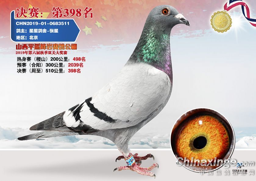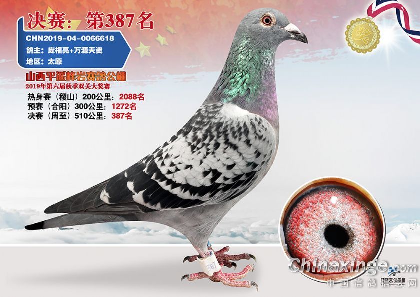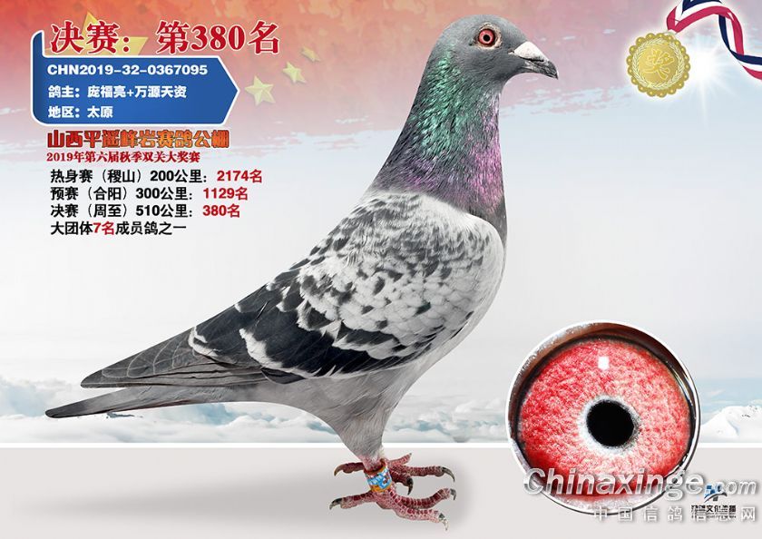 作品说明: 山西平遥峰岩赛鸽公棚2019年秋第六届秋季决赛奖鸽靓照376名-400名