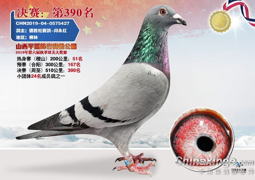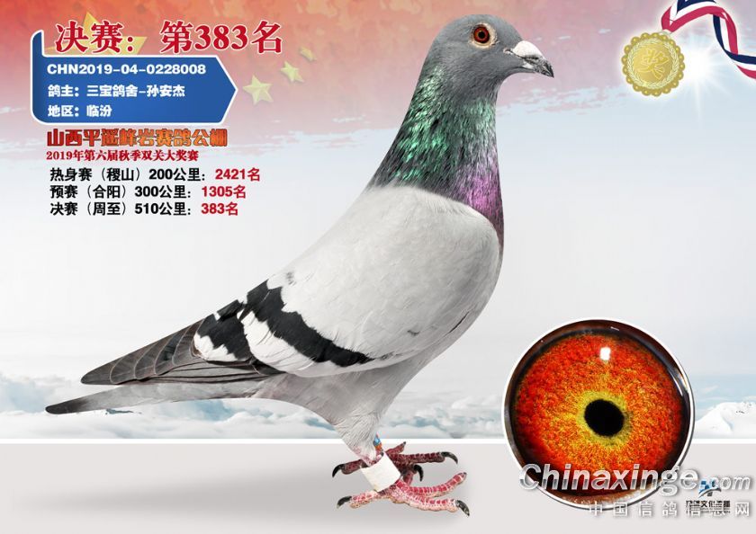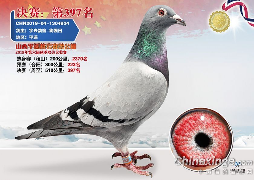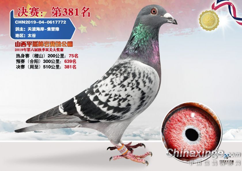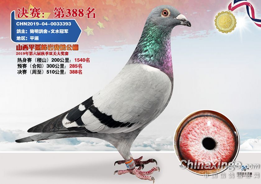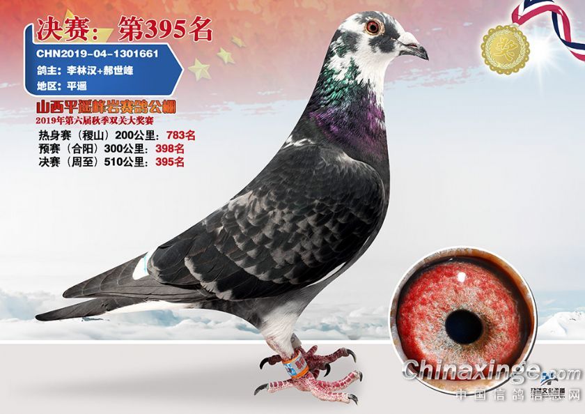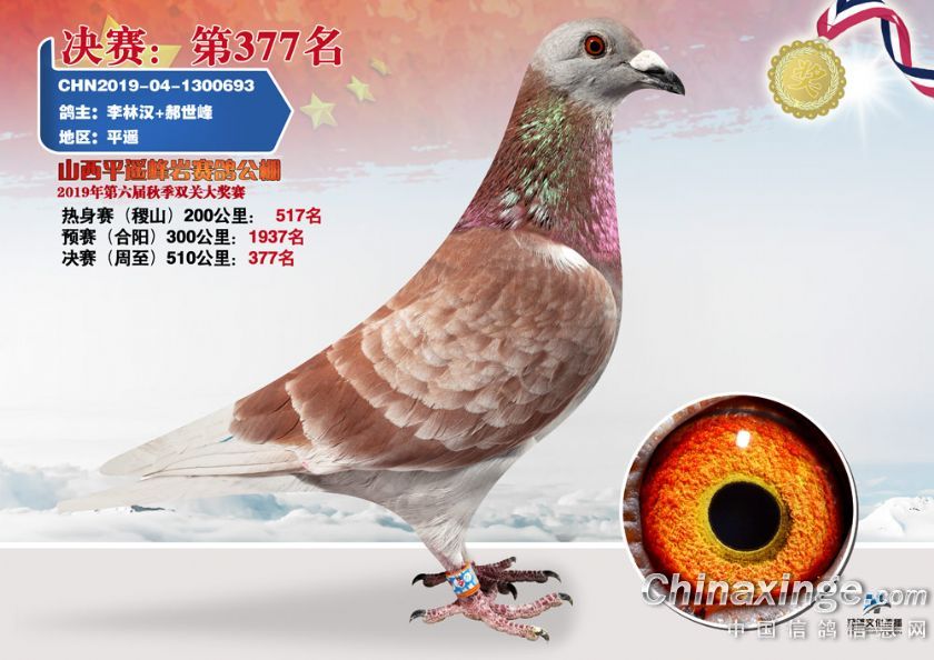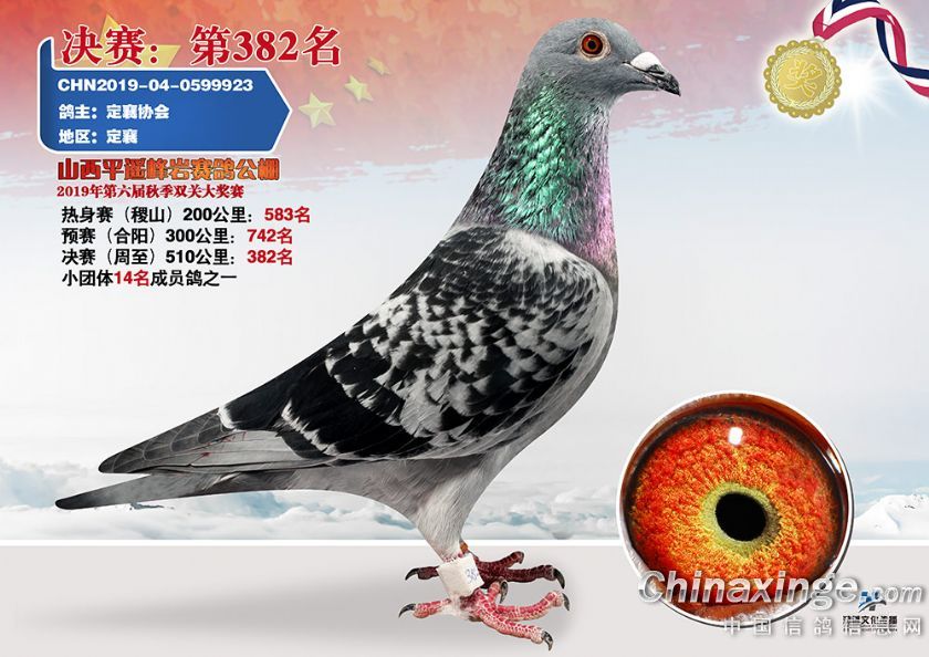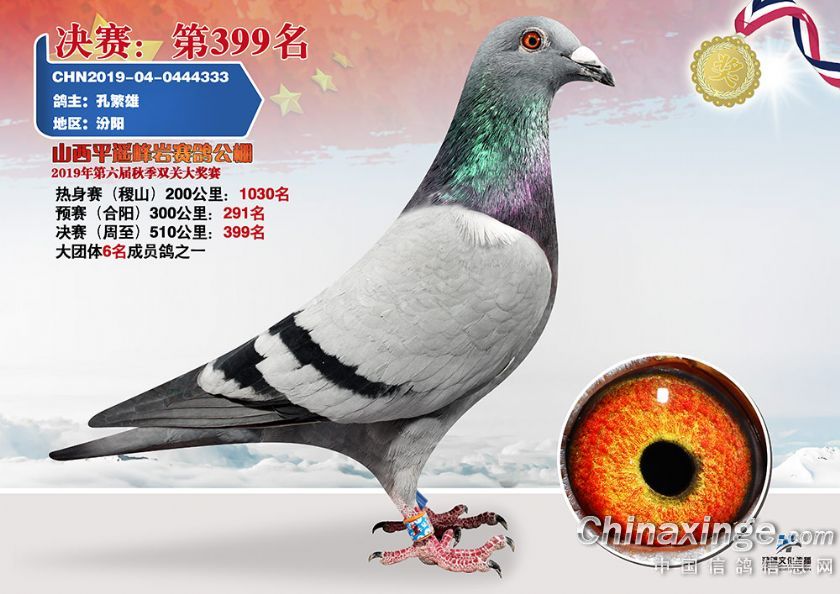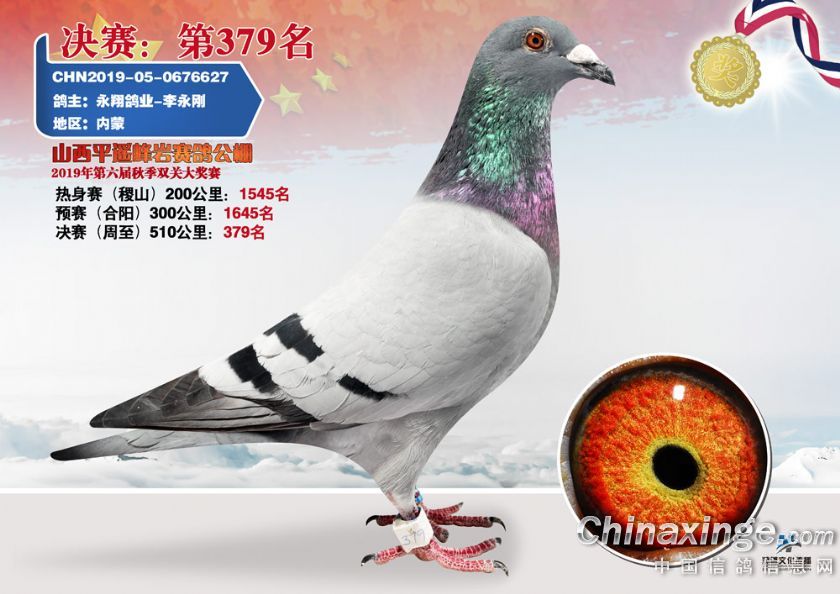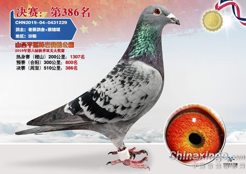 作品说明: 山西平遥峰岩赛鸽公棚2019年秋第六届秋季决赛奖鸽靓照376名-400名